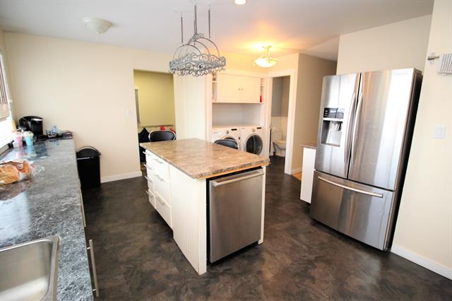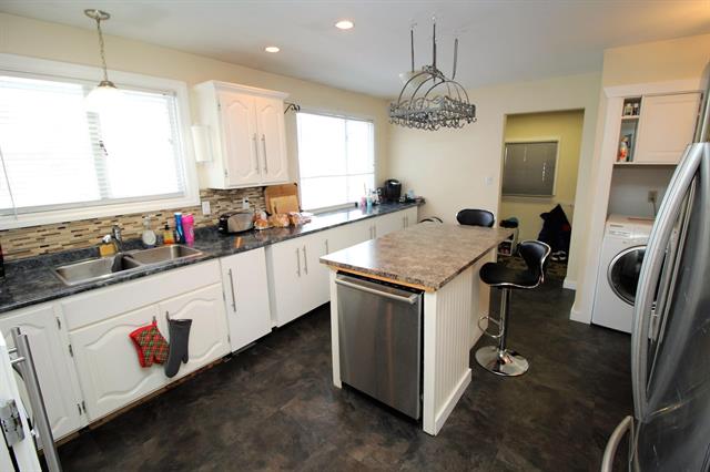 tons of cabinets. Finished bsmt features newer in-law suite w/ bdrm, 3 pc bath & laundry. Wood insert fireplace in bsmt living area. Sliding door to backyard, large convenient separate bsmt entrance. High-eff gas furnace. Appl incl.