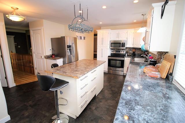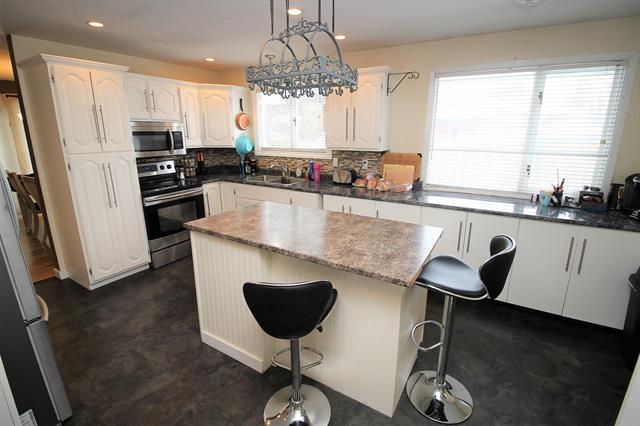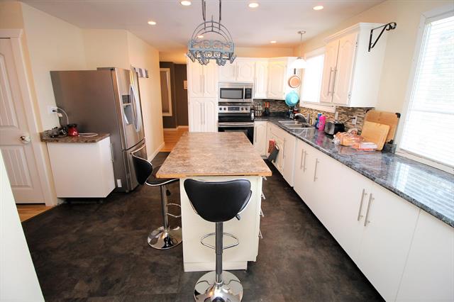 LOCATION, LOCATION! Updated spacious 4-bdrm rancher plus daylight bsmt on huge lot in quiet cul-de-sac! Updates incl: roof shingles in 2018, quality laminate floors on main, vinyl plank floors in kitchen, kitchen countertops/tile backsplash, refinished cabinets, SS appliances, in-law suite in bsmt, interior doors, fixtures, paint, trim & more! 3 bdrms, 3 baths & laundry on main. Large master has 3-pc ensuite. Bright living rm w/ pellet insert fireplace. Large sundeck w/ access from formal dining rm & master bdrm. Spacious kitchen w/ island, eating nook, &