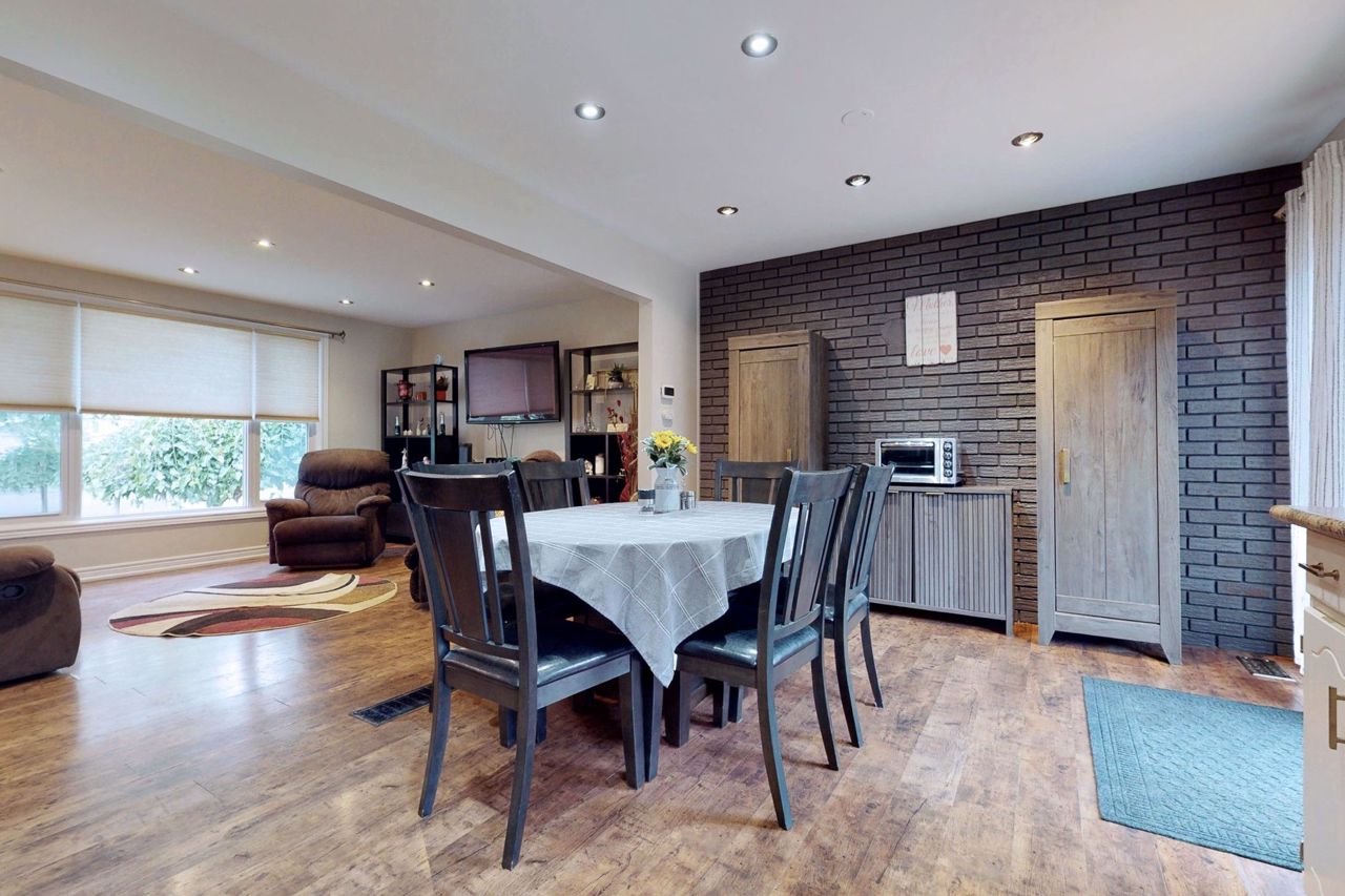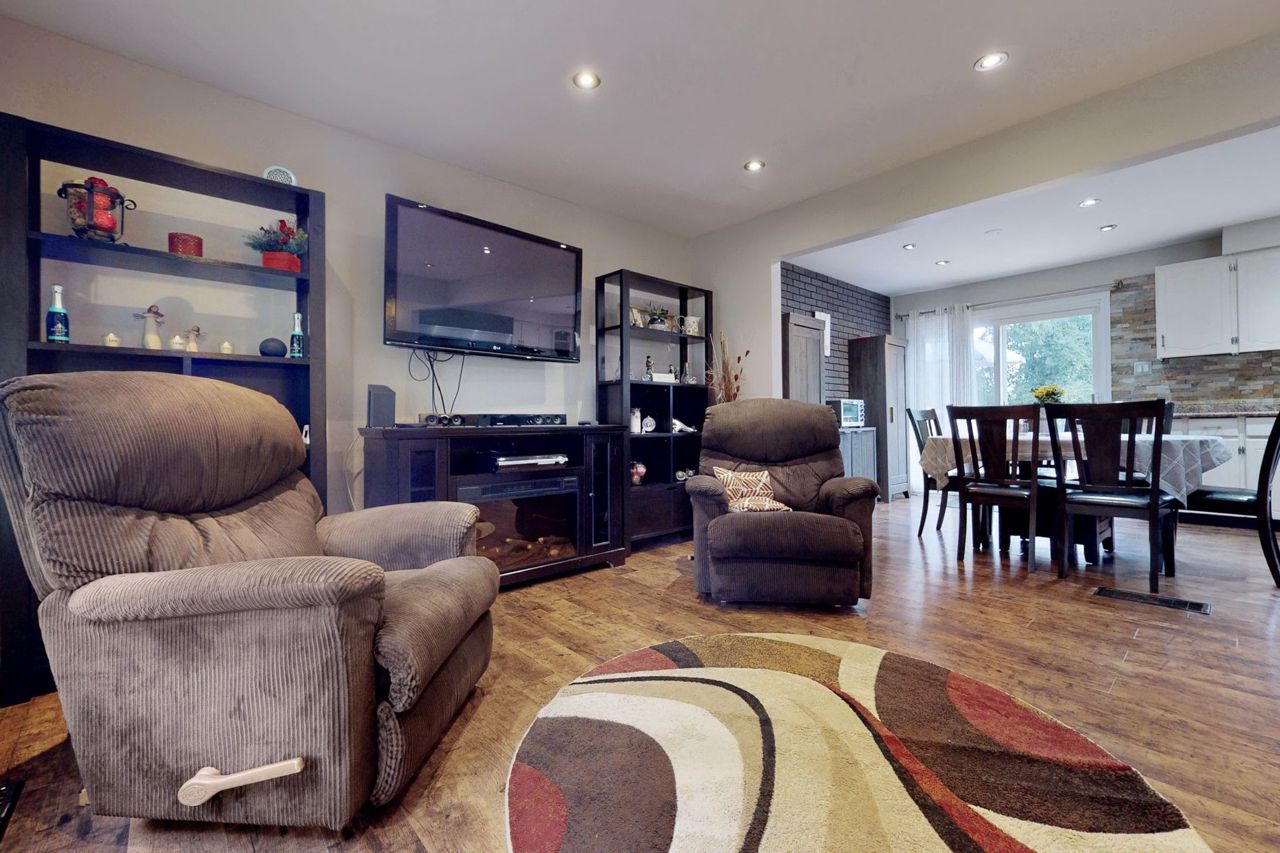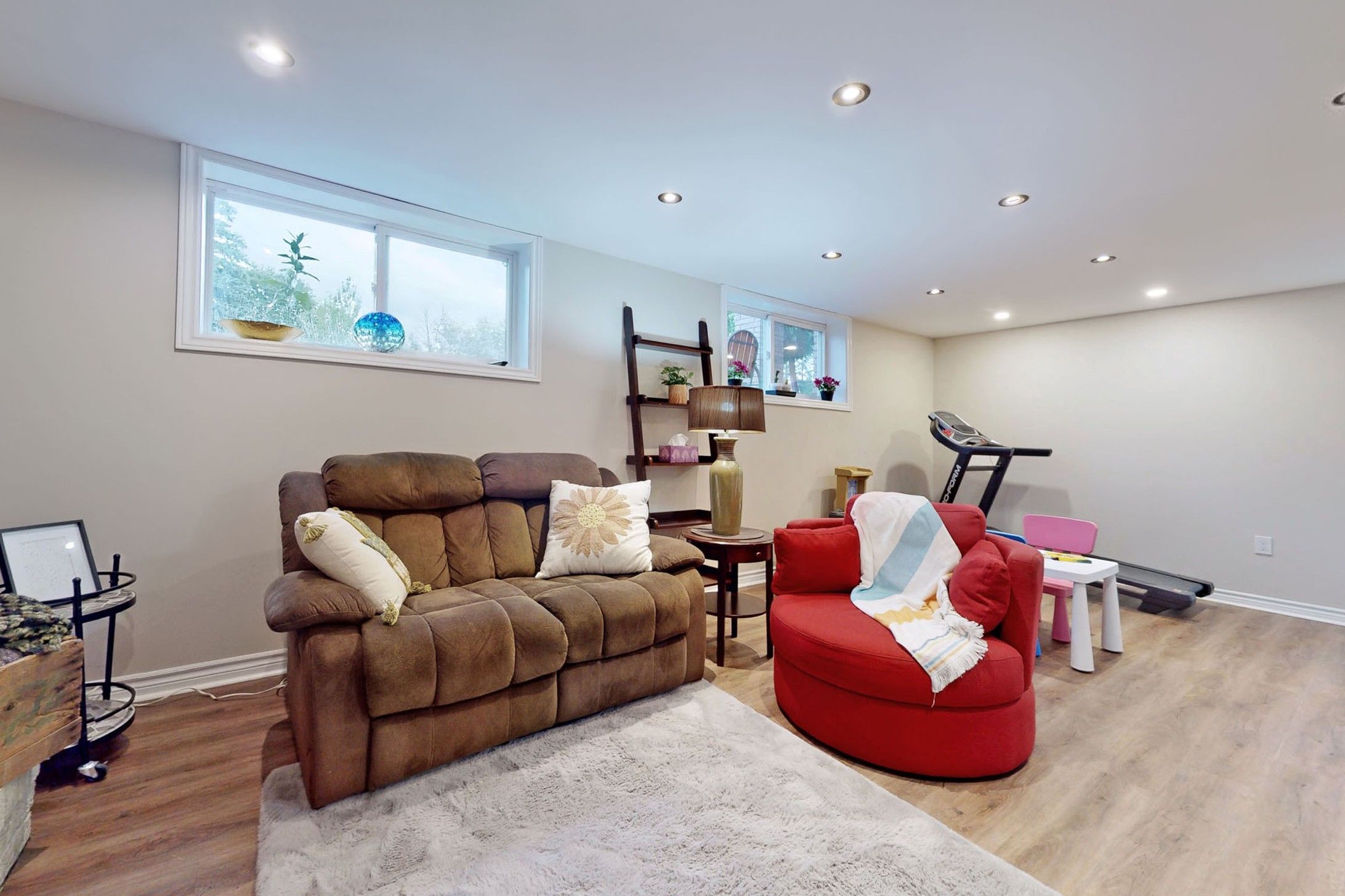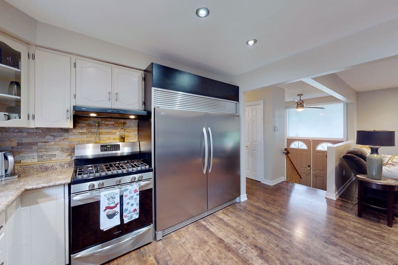 Step into this charming Bungalow Raised, a true gem nestled in the heart of a perfect family-friendly neighborhood. The main floor features 3 spacious BR's , providing ample space for a growing family or accommodating guests. Enjoy the modern touch of pot lights illuminating the space, enhancing the ambiance & style of the home. Freshly painted walls add a clean look, while the laminate flooring provides both durability and a touch of elegance. Step out from the kitchen onto a generously sized deck, perfect for hosting gatherings & enjoying quality time with family & friends. Beyond the deck lies a sprawling backyard that backs onto environmentally protected land, creating a sense of serenity & seclusion, making it an ideal spot for relaxation & privacy. Fully finished basement, with an additional 2 BR's, and boasts a large recreation room complete with a cozy fireplace. Come and experience the joy of living in this exceptional home that is sure to capture your heart.- 2 fridges, Stove, Dishwasher, washer & dryer, water softener, garage door opener, HWT (owned)