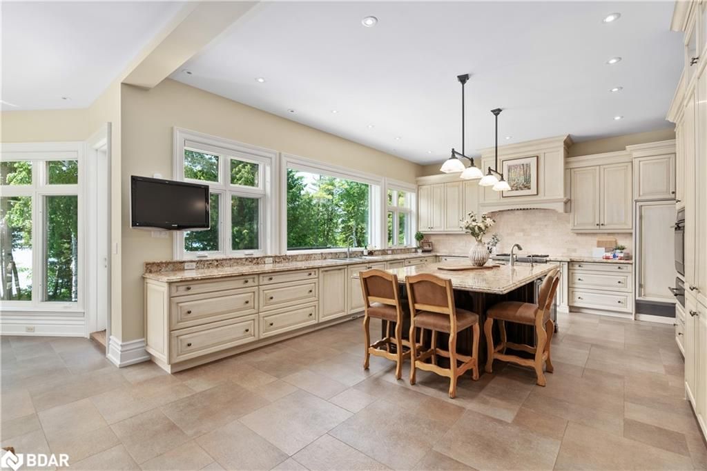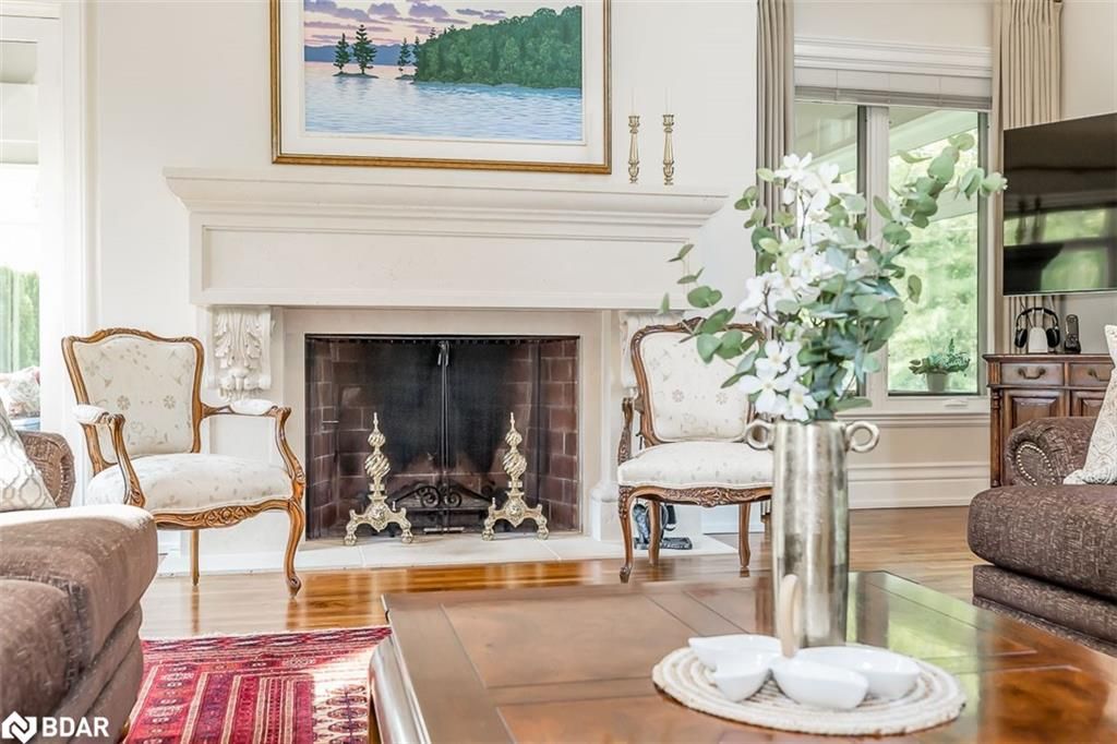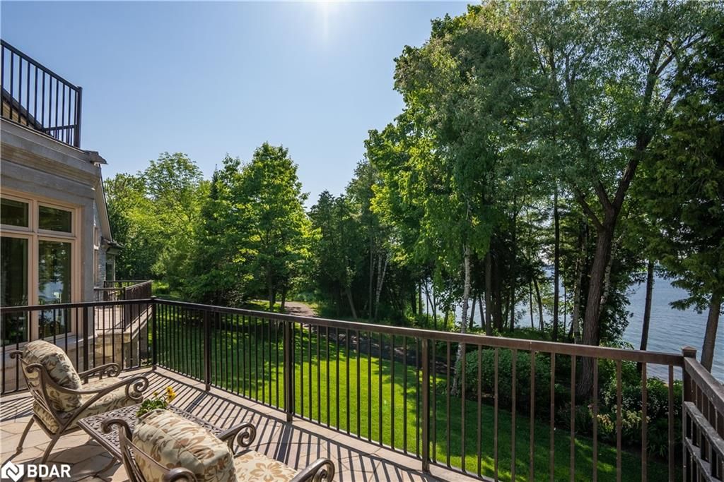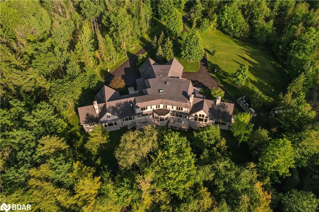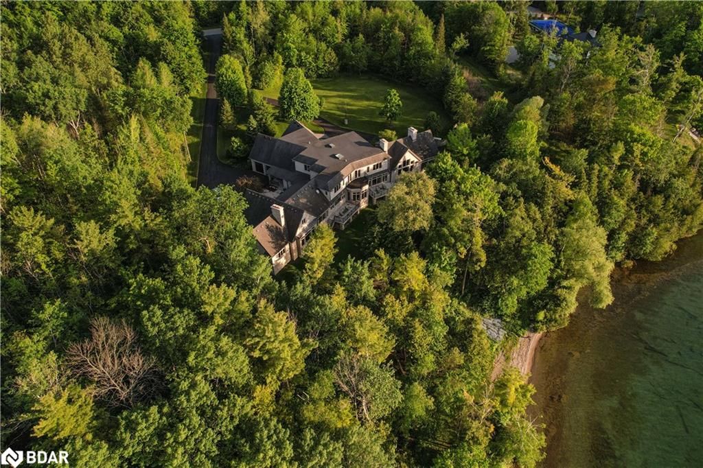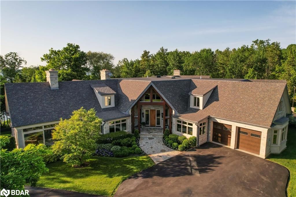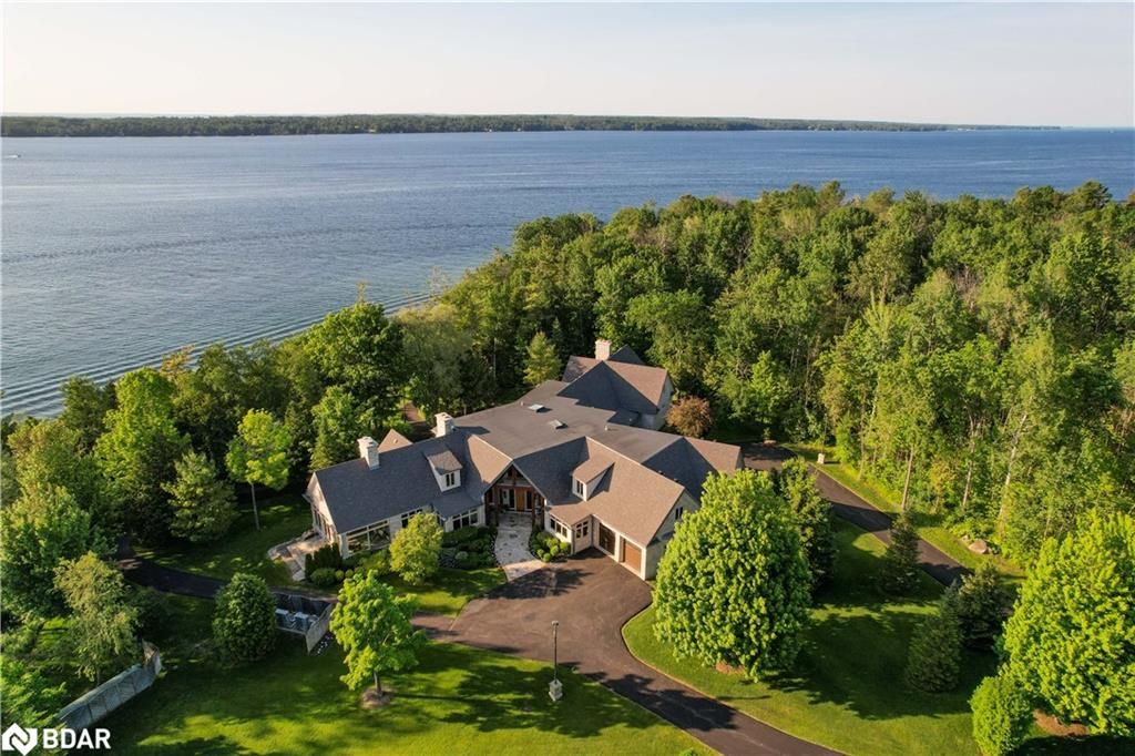 Nestled on an expansive 4.2-acres, 1130 Shoreview Drive boasts an impressive presence that harmonizes perfectly with its natural surrounding. The depth of the lot ensures privacy from the road, yet offers stunning lake views without compromising tranquility. This magnificent estate showcases 500 feet of rare shoreline with pebbles beaches and tranquil trails along the shore, offering breathtaking vistas of Kempenfelt Bay. With its modern open-concept design, the residence seamlessly blends contemporary aesthetics with classic features befitting a grand estate. Built in 2007 by Fifthshire Homes and designed by Architect William Hicks. Constructed using all steel framing combined with superior materials, this home exudes quality and craftsmanship. Approaching the estate, you are greeted by a long private paved road that splits into a Y shape, leading to both the front and service areas. Additionally, a winding paved path grants easy access to the shoreline. The residence itself spans an impressive 8,824 sqft above grade, complemented by a partially finished lower level spanning 6,266 sqft. The scale of each room is awe-inspiring, soaring ceilings, expansive doorways, and spacious hallways. The abundance of massive windows bathes the interior in natural light. Notable features include three generous bedrooms, four baths, four fireplaces, an elevator, exercise room, a sizable office and study, a well-appointed kitchen with luxury appliances and a breakfast area, a server area, and a pantry room. The formal dining room and grand living room exude elegance, The primary suite, in its dedicated wing, is truly lavish. Entertainment awaits in the billiards room and family room, while the three-season sunroom is drenched in sunlight. A heated four-bay garage. Numerous covered porches, terraces, and patios invite outdoor living and relaxation.Only 80Km to Toronto & Near to all amenities including ski resorts, golf courses, and the regional hospital.