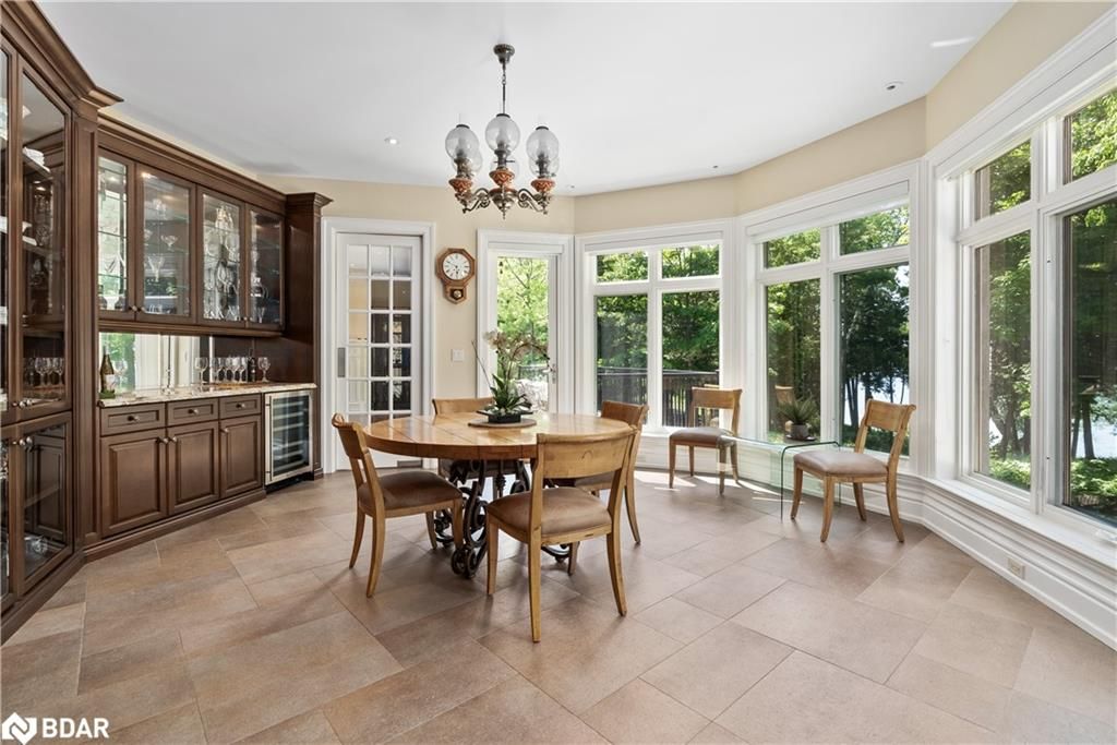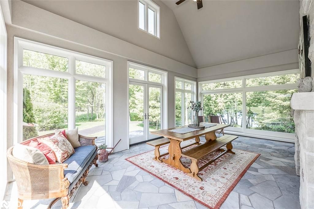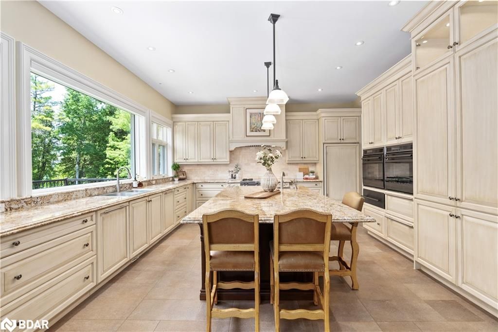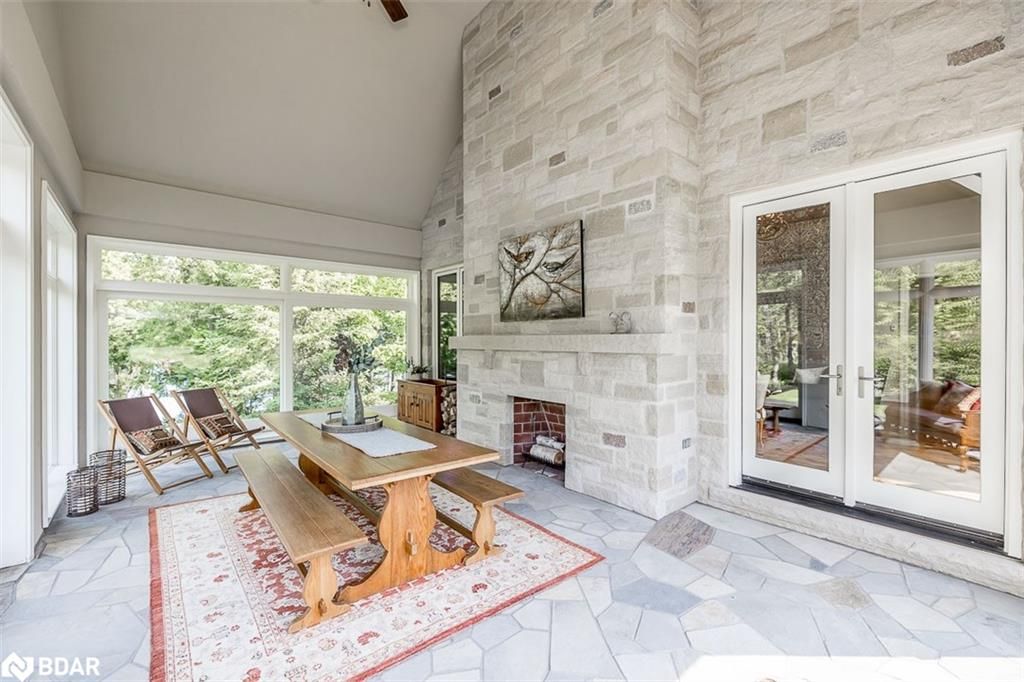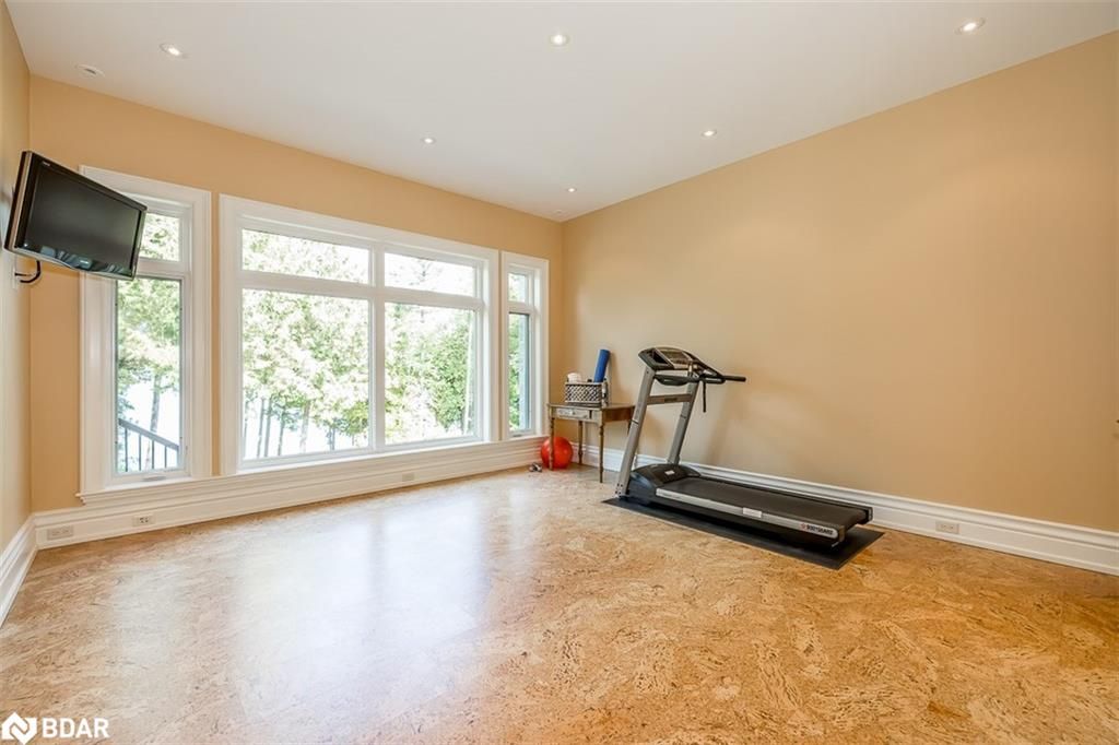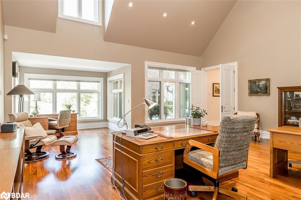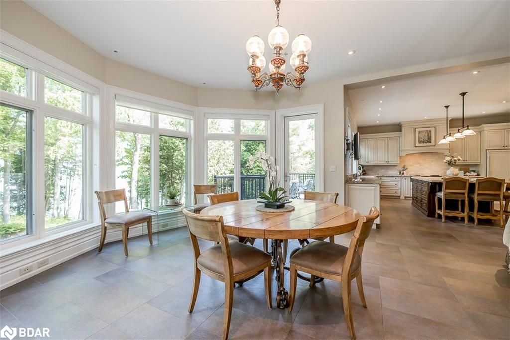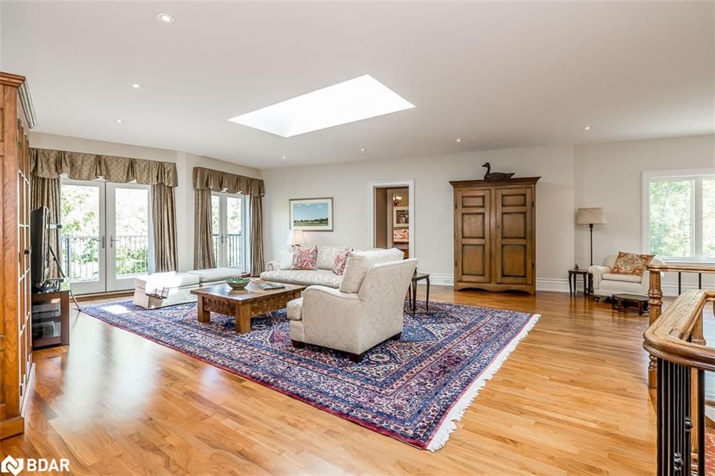 Nestled on an expansive 4.2-acres, 1130 Shoreview Drive boasts an impressive presence that harmonizes perfectly with its natural surrounding. The depth of the lot ensures privacy from the road, yet offers stunning lake views without compromising tranquility. This magnificent estate showcases 500 feet of rare shoreline with pebbles beaches and tranquil trails along the shore, offering breathtaking vistas of Kempenfelt Bay. With its modern open-concept design, the residence seamlessly blends contemporary aesthetics with classic features befitting a grand estate. Built in 2007 by Fifthshire Homes and designed by Architect William Hicks. Constructed using all steel framing combined with superior materials, this home exudes quality and craftsmanship. Approaching the estate, you are greeted by a long private paved road that splits into a Y shape, leading to both the front and service areas. Additionally, a winding paved path grants easy access to the shoreline. The residence itself spans an impressive 8,824 sqft above grade, complemented by a partially finished lower level spanning 6,266 sqft. The scale of each room is awe-inspiring, soaring ceilings, expansive doorways, and spacious hallways. The abundance of massive windows bathes the interior in natural light. Notable features include three generous bedrooms, four baths, four fireplaces, an elevator, exercise room, a sizable office and study, a well-appointed kitchen with luxury appliances and a breakfast area, a server area, and a pantry room. The formal dining room and grand living room exude elegance, The primary suite, in its dedicated wing, is truly lavish. Entertainment awaits in the billiards room and family room, while the three-season sunroom is drenched in sunlight. A heated four-bay garage. Numerous covered porches, terraces, and patios invite outdoor living and relaxation.Only 80Km to Toronto & Near to all amenities including ski resorts, golf courses, and the regional hospital.