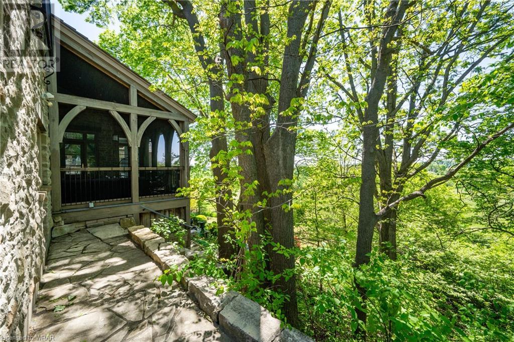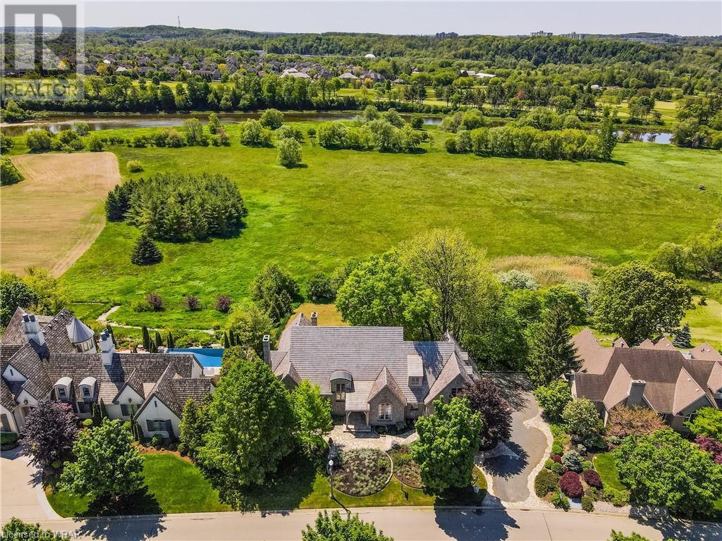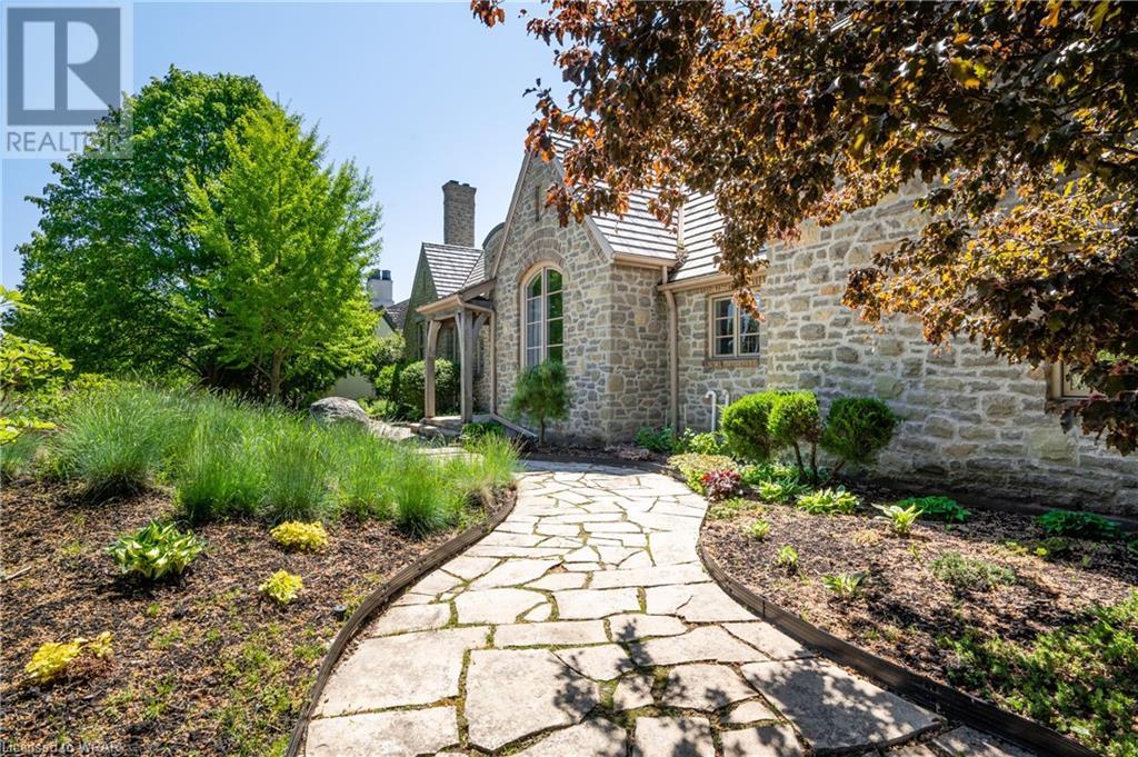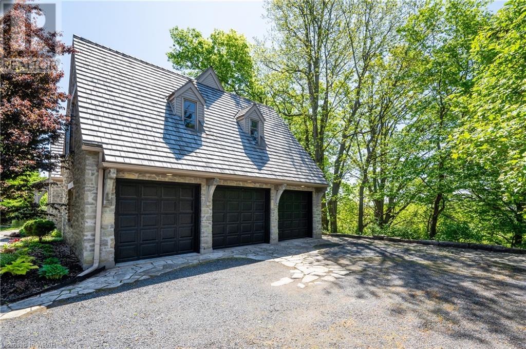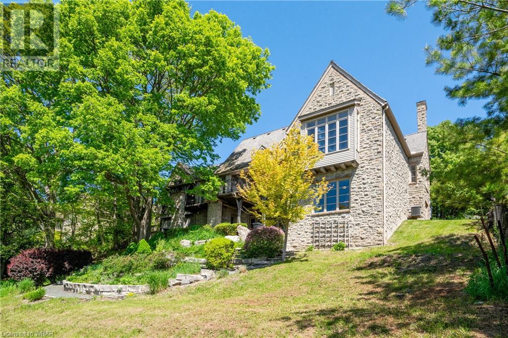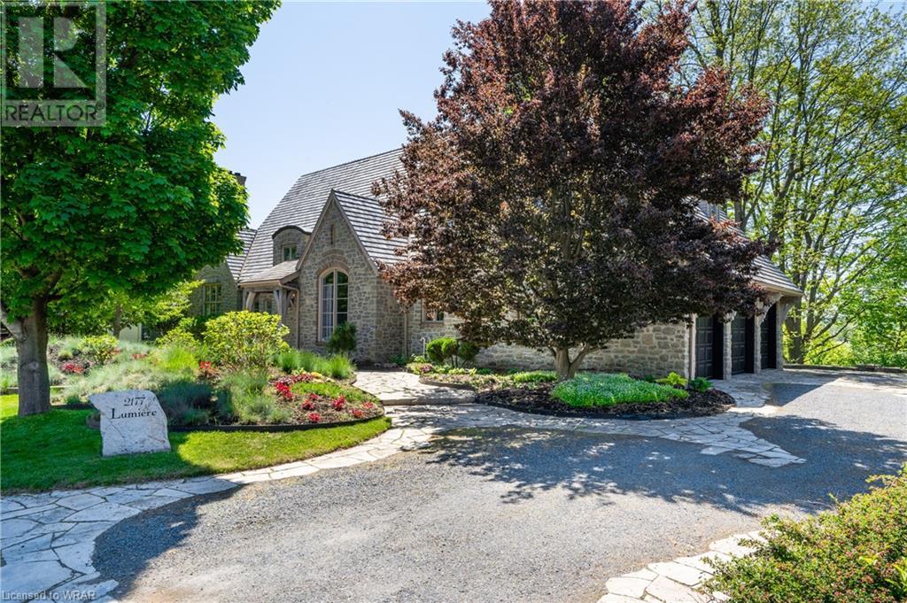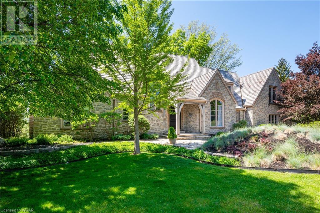 Timeless elegance with a view in Kitchener’s highly coveted Hidden Valley neighbourhood! Welcome to Lumiere, an architectural, award-winning masterpiece that is truly one of a kind. Experience carefully curated scale and materiality with over 6,800 square feet of French country inspired design - made possible through the creative collaboration of Roth-Knibb Architects and builder Christiaan Wingelaar. From the exterior composition of fieldstone, brick arches, cedar shakes and exposed timber beams to the interior custom millwork, subdued coffered ceiling and intricate trusses, it is evident that this house is highly deserving of its “Best of Houzz” award designated in 2013. Upon entry, you are met with an open style foyer with custom stone walkway that connects the dining, great and family rooms. The breathtaking great room blurs the line between strength and beauty and is proportioned for both fireplace intimacy and mighty scale with its double high vaulted ceilings and functional curved trusses centred around the narrowing mantle. The series of French doors and high south facing windows overlooking the Grand River and wrought iron terrace, flood in natural lighting and give the space a genuine warmth. Through the rectangular archway, you find an open concept kitchen with walk-in pantry, large island with seating and dinette surrounded by oversized casement windows. Off of the kitchen, there is access to the laundry room, butler’s pantry and screened in porch for your outdoor enjoyment. Conveniently located on the main floor is the primary suite equipped with terrace walk-out and 5-piece ensuite with soaker tub and glass shower. The second level hosts 2 bedrooms, 4-piece bath and spacious den, while the lower-level with walkout grants additional entertainment space in the rec-room and games area. Backing onto picturesque views of the Grand River and Deer Ridge golf course, this home emanates exclusivity, sophistication and is awaiting you to call it your dream home! (id:22211)
