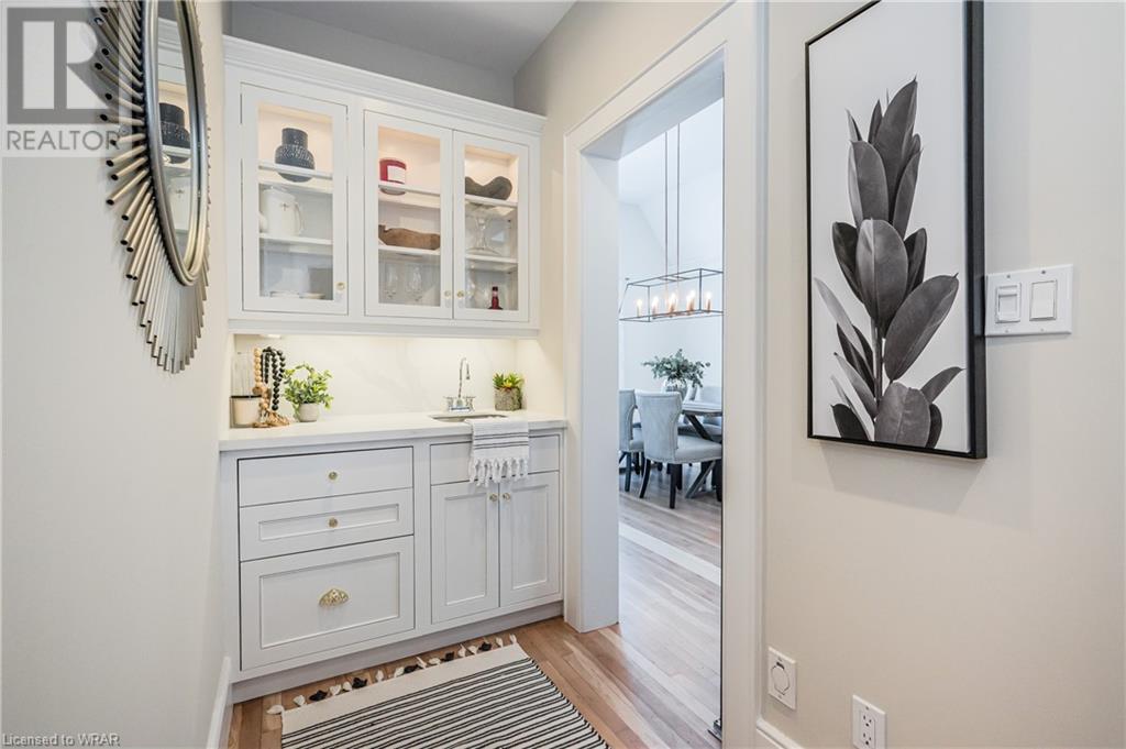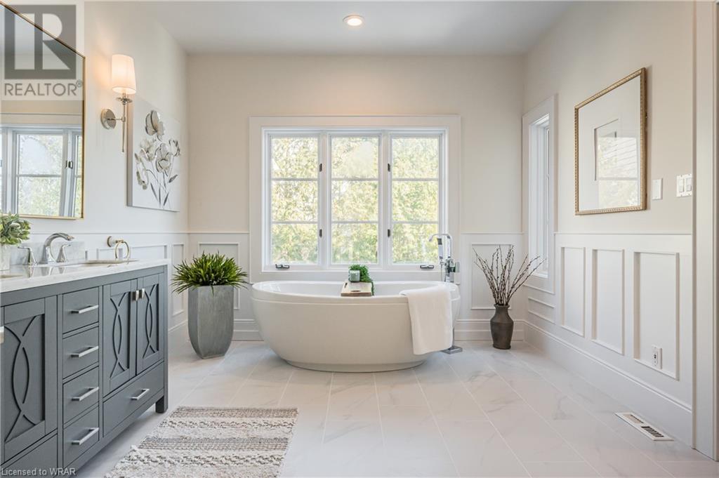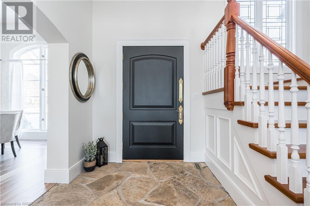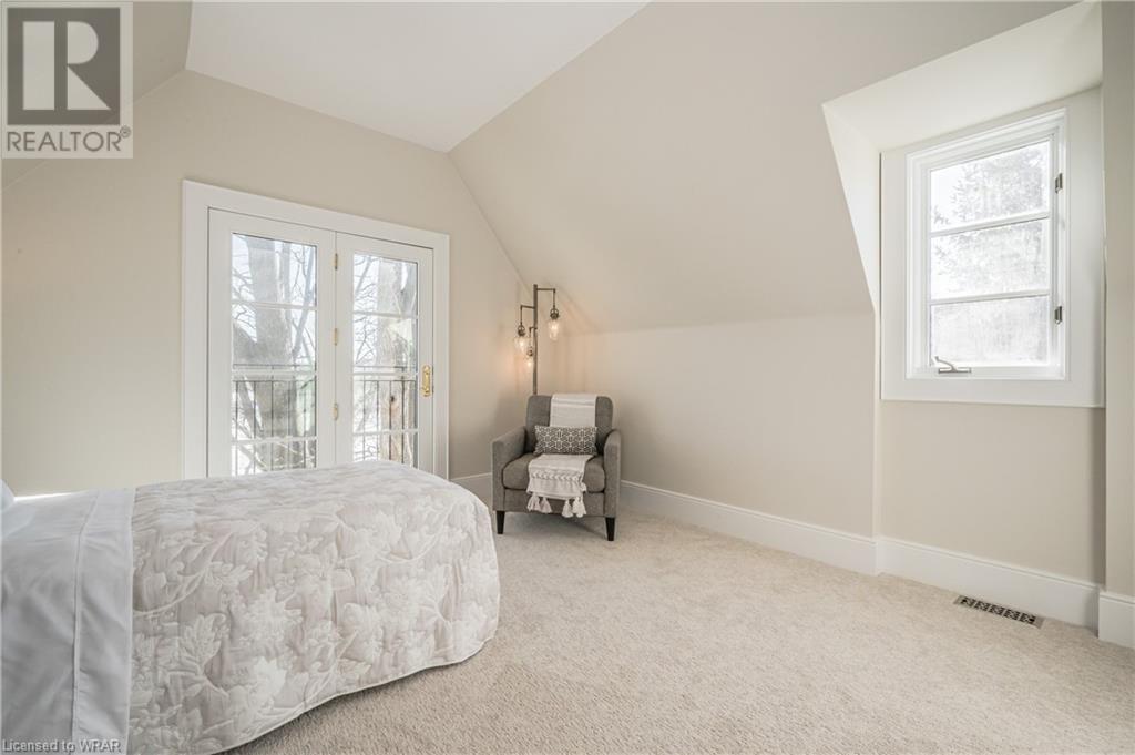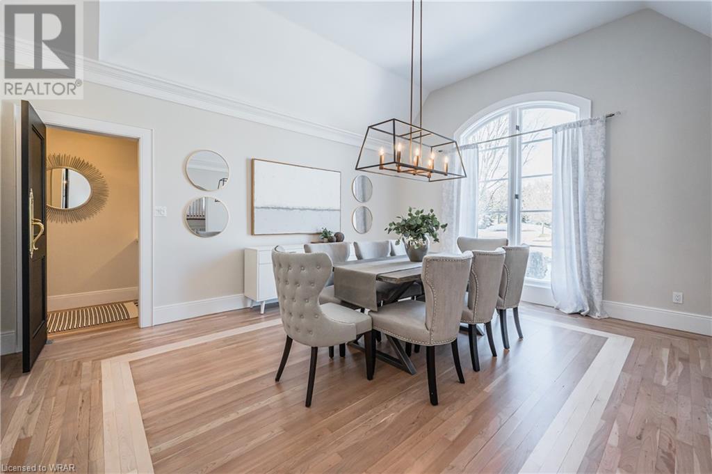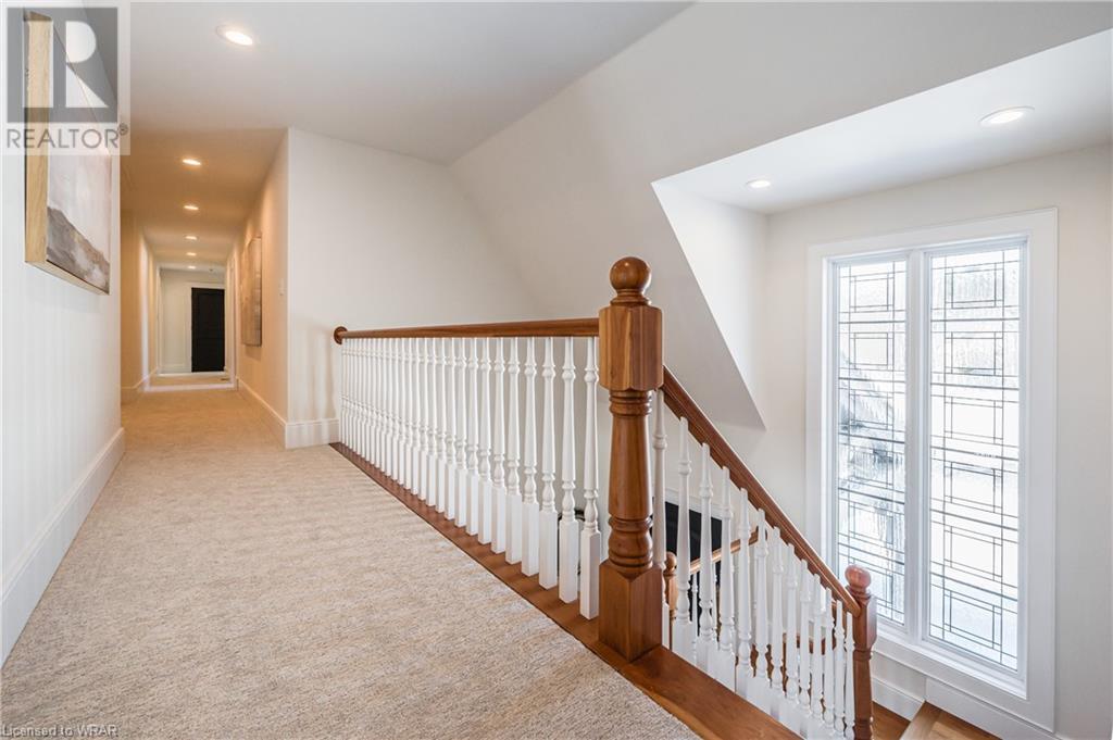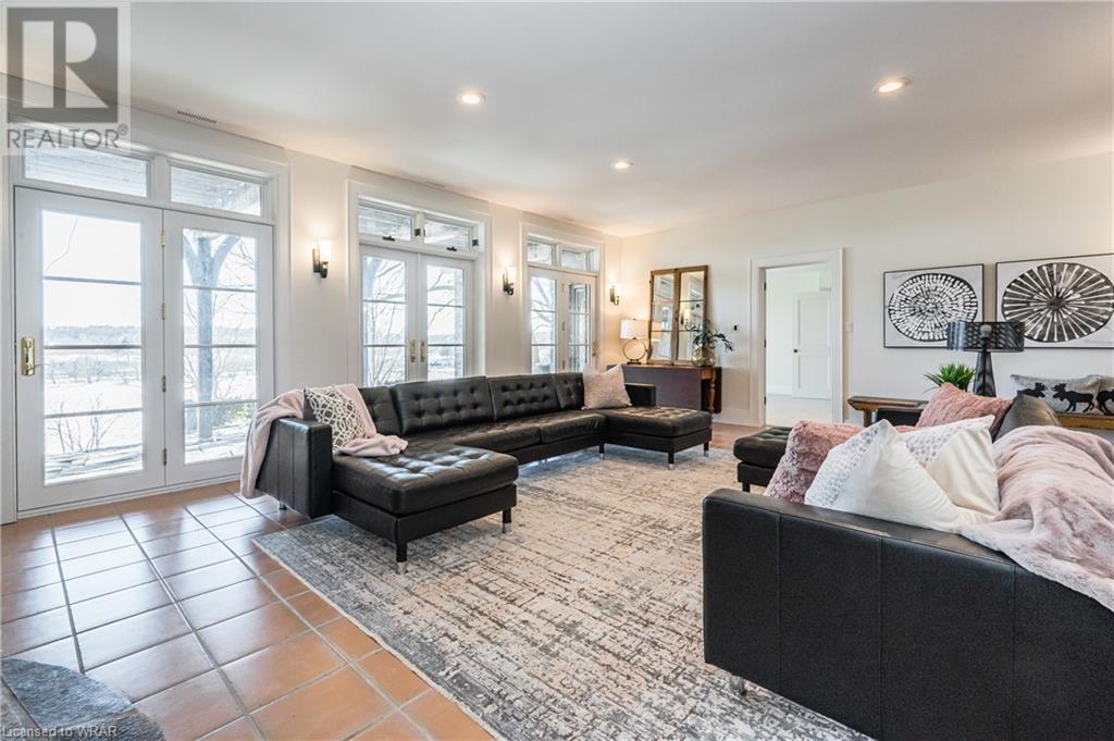 Timeless elegance with a view in Kitchener’s highly coveted Hidden Valley neighbourhood! Welcome to Lumiere, an architectural, award-winning masterpiece that is truly one of a kind. Experience carefully curated scale and materiality with over 6,800 square feet of French country inspired design - made possible through the creative collaboration of Roth-Knibb Architects and builder Christiaan Wingelaar. From the exterior composition of fieldstone, brick arches, cedar shakes and exposed timber beams to the interior custom millwork, subdued coffered ceiling and intricate trusses, it is evident that this house is highly deserving of its “Best of Houzz” award designated in 2013. Upon entry, you are met with an open style foyer with custom stone walkway that connects the dining, great and family rooms. The breathtaking great room blurs the line between strength and beauty and is proportioned for both fireplace intimacy and mighty scale with its double high vaulted ceilings and functional curved trusses centred around the narrowing mantle. The series of French doors and high south facing windows overlooking the Grand River and wrought iron terrace, flood in natural lighting and give the space a genuine warmth. Through the rectangular archway, you find an open concept kitchen with walk-in pantry, large island with seating and dinette surrounded by oversized casement windows. Off of the kitchen, there is access to the laundry room, butler’s pantry and screened in porch for your outdoor enjoyment. Conveniently located on the main floor is the primary suite equipped with terrace walk-out and 5-piece ensuite with soaker tub and glass shower. The second level hosts 2 bedrooms, 4-piece bath and spacious den, while the lower-level with walkout grants additional entertainment space in the rec-room and games area. Backing onto picturesque views of the Grand River and Deer Ridge golf course, this home emanates exclusivity, sophistication and is awaiting you to call it your dream home! (id:22211)