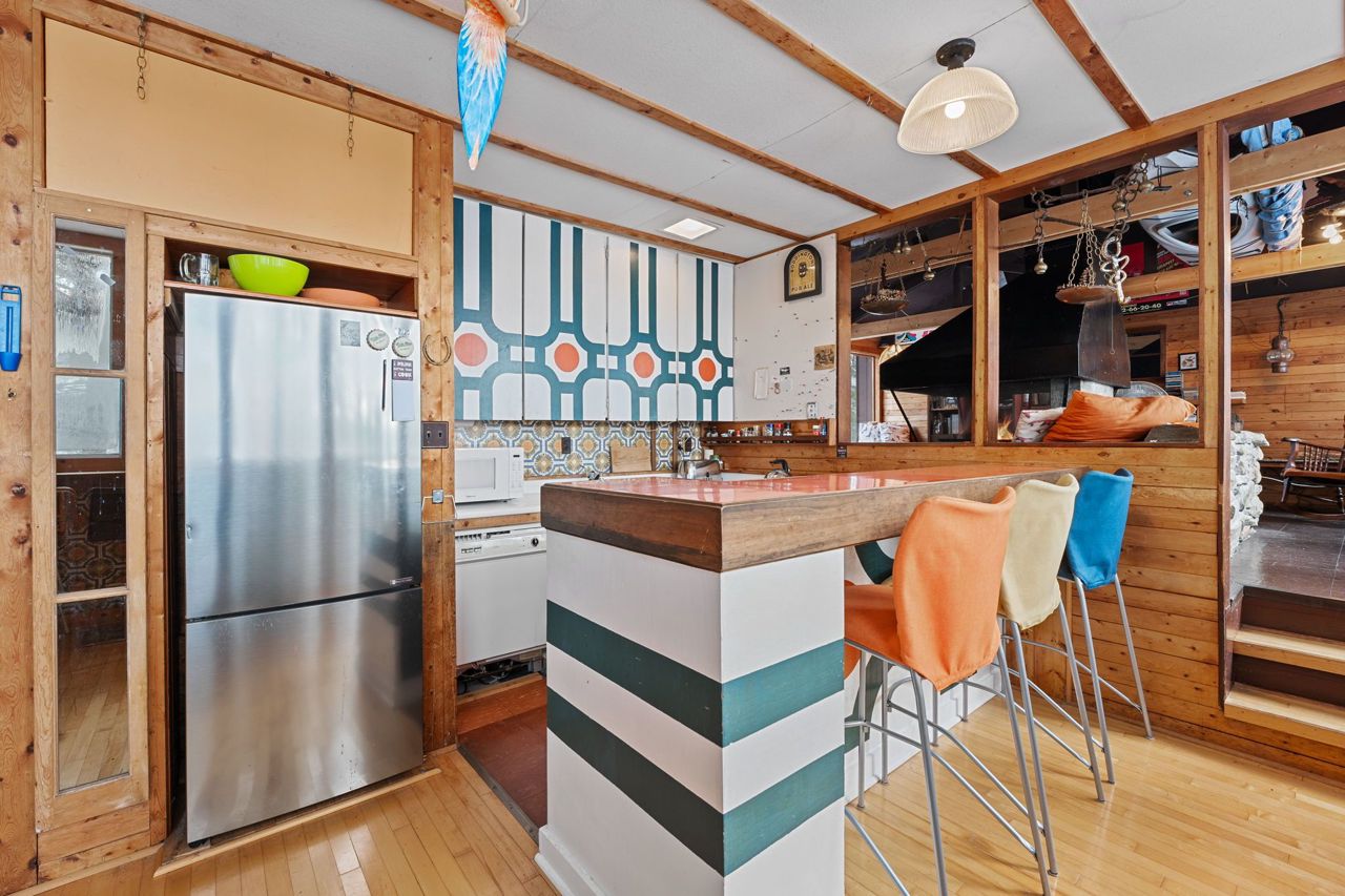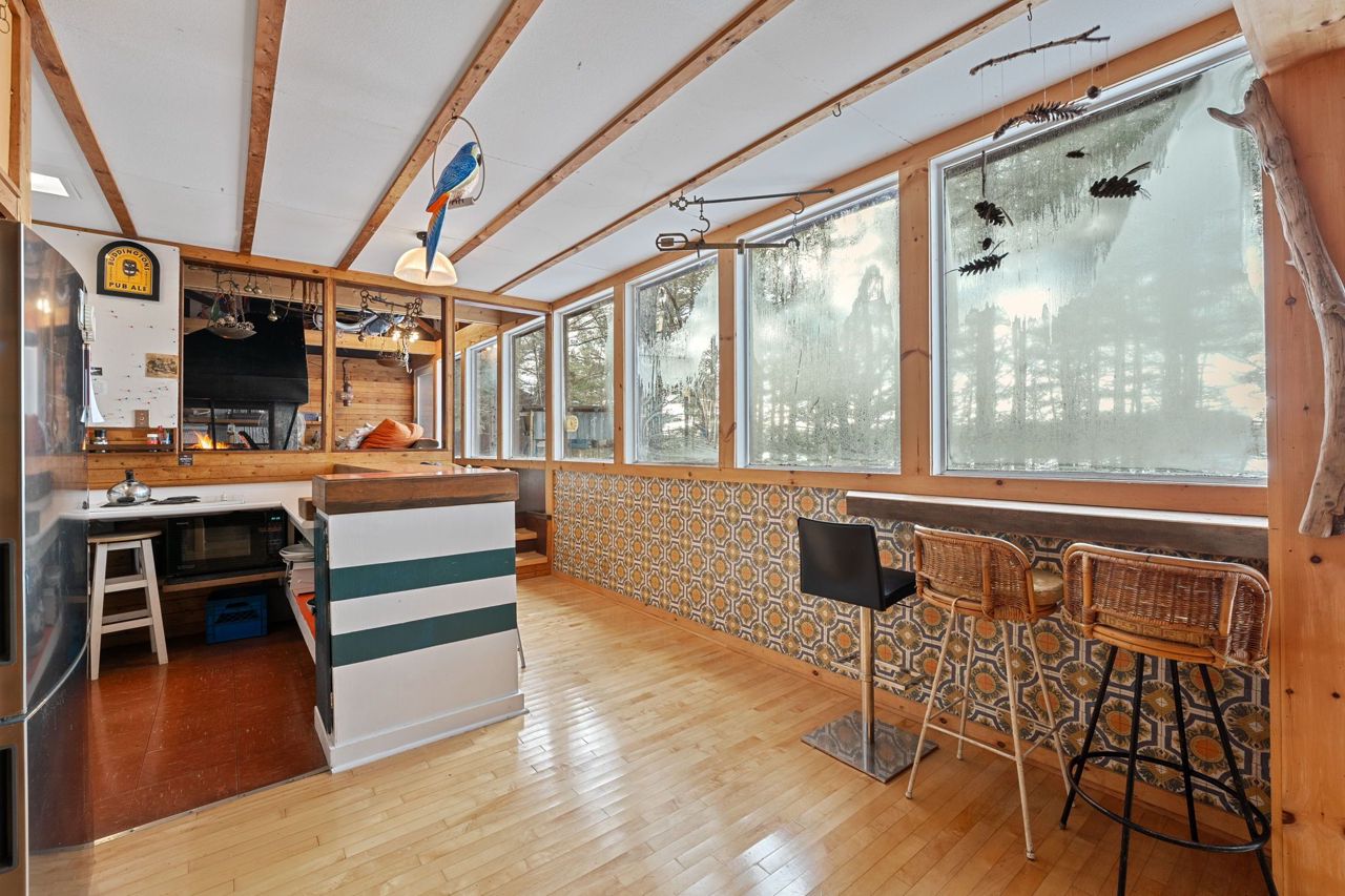 歡迎來到您在寧靜的沃克湖畔的完美度假勝地。這座建築風格獨特的、適合三季使用的度假小屋擁有123英尺的原始湖岸線和西向景觀,每天都能提供無與倫比的午後陽光和令人歎為觀止的日落。該房產占地略高於半英畝,擁有獨特的世紀中葉設計,將質樸的魅力與與自然的深刻聯係融為一體。寬大的窗戶讓室內充滿自然光線,讓室外的美景仿佛成為您生活空間的一部分。主生活區以巨大的石砌壁爐為中心,配有內置的環繞式座位,是家人和朋友在水上活動後聚會的熱情場所。周到的設計創造了各種公共空間供您享受:在俯瞰湖面的露台上啜飲您的早晨咖啡,在日落時在碼頭上放鬆身心,或在晚上依偎在壁爐旁。主臥室享有迷人的湖景,為您提供了一個寧靜的每日清晨醒來之所。此外,一條馬路對面的一塊地,面積為0.6英畝,擁有未受破壞的森林,也包含在房產內,提供擴建、額外隱私或未來發展的潛力。沃克湖以其平靜的水域而聞名,這要歸功於12公裏/小時的船隻速度限製,使其非常適合劃獨木舟、皮劃艇和槳板。該房產距離漢斯維爾市中心僅10分鍾路程,距離隱藏山穀滑雪區7分鍾路程,提供全年的娛樂活動。冬季,OFSC雪地摩托車道距離僅1分鍾路程。無論您是尋求一個輕鬆的夏季度假勝地,還是設想將度假小屋改造成一個全年度假勝地,這顆Muskoka珍寶都為那些渴望獨特的湖畔體驗的人提供了無限的潛力。您的季節性聖所等著您,不要錯過這個難得的機會!