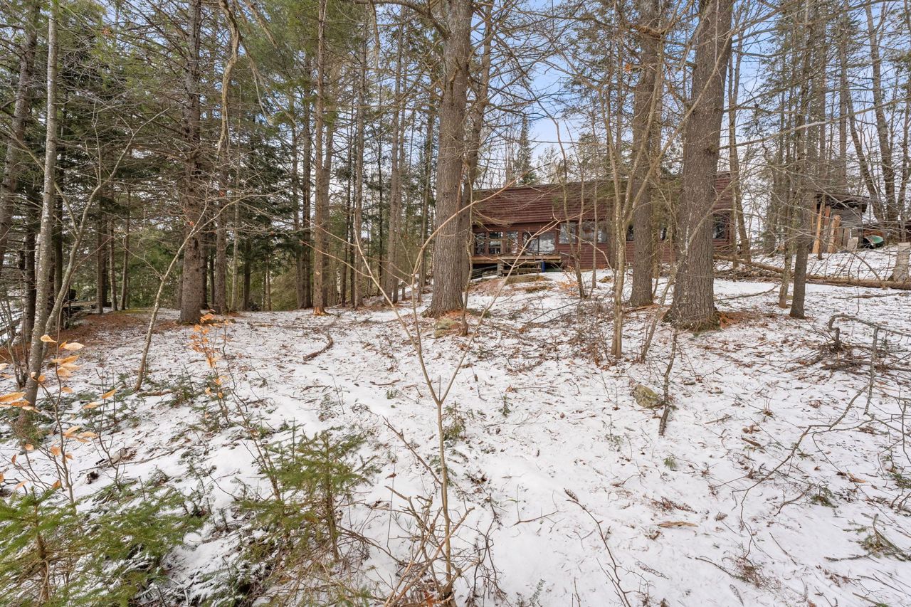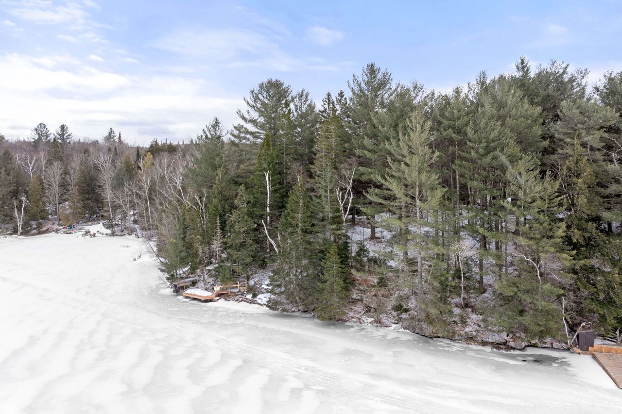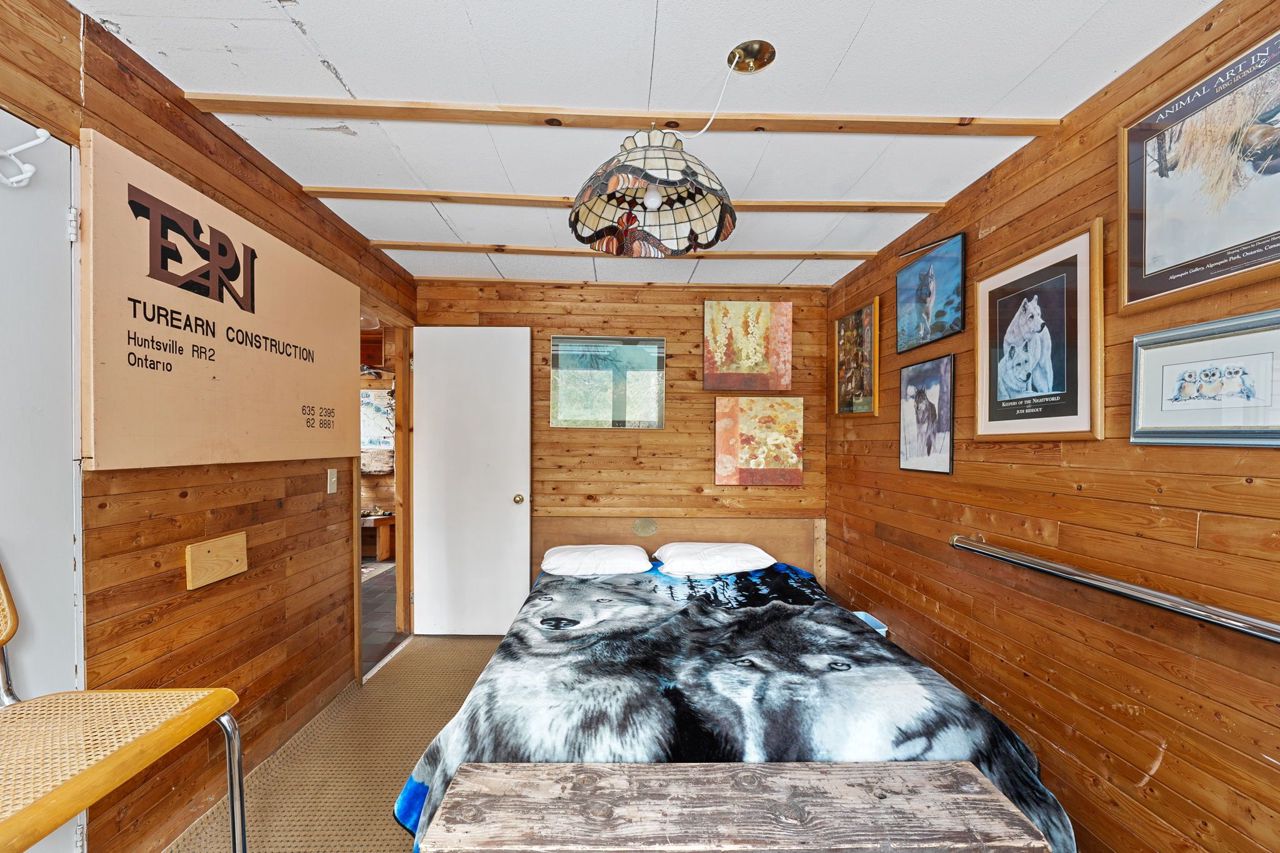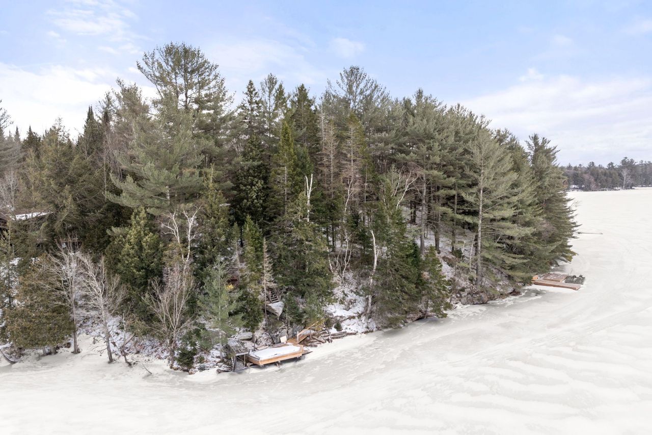 Welcome to your perfect Muskoka escape on the serene shores of Walker Lake.** This architecturally unique, 3-season cottage offers 123 feet of pristine waterfront and west-facing views, providing unbeatable afternoon sun and breathtaking sunsets every evening. Set on just over half an acre, the property features a distinctive mid-century design that blends rustic charm with a deep connection to nature. Expansive windows flood the interior with natural light, allowing the beauty of the outdoors to feel like part of your living space. The main living area is centered around a massive stone fireplace with built-in wrap-around seating a warm and inviting spot to gather with family and friends after a day on the water. The thoughtful design creates a variety of communal spaces to enjoy: sip your morning coffee on the deck overlooking the lake, unwind on the dock as the sun sets, or cozy up by the fire in the evening. The primary bedroom captures stunning lake views, offering a peaceful retreat to wake up to each day. Additionally, a second lot across the road, spanning 0.6 acres of untouched forest, is included with the property offering potential for expansion, additional privacy, or future development. Walker Lake is known for its calm waters, thanks to a 12 km/h boating speed limit, making it ideal for canoeing, kayaking, and paddle boarding. Located just 10 minutes from downtown Huntsville and 7 minutes from Hidden Valley Ski Area, this property offers year-round recreation. In the winter, OFSC snowmobile trails are only a 1-minute ride away. Whether you're seeking a relaxing summer getaway or envisioning converting the cottage to a year-round retreat, this Muskoka gem offers endless potential for those craving a one-of-a-kind lakeside experience. Your seasonal sanctuary awaits don't miss this rare opportunity!