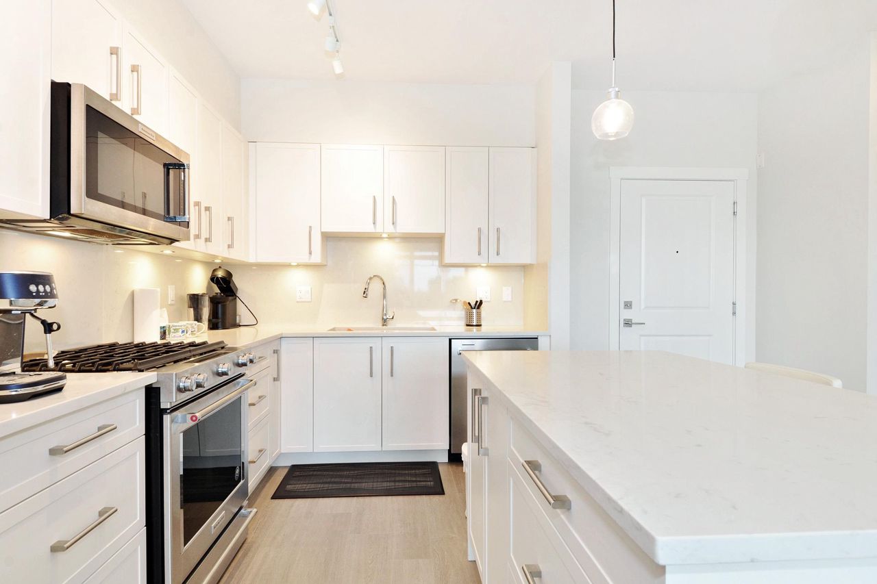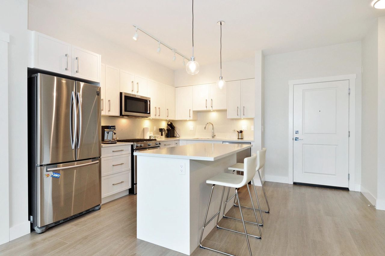 Desirable Murrayville Neighborhood!! This PENTHOUSE, 2 bdrm, 2 bthrm unit offers 950 sq ft of living space. Situated on the upper floor, this bright & spacious inside unit features a kitchen finished w/quartz countertops & center island, stainless steel Kitchen Aid appliances, in-suite Samsung Washer & Dryer, A/C heat pump, 2 parking spots & 1 storage locker (pets allowed w/restrictions). Unit also has 2 balconies w/beautiful views of Golden Ears Mountain; the perfect place to enjoy your morning coffee. All conveniently located within walking distance to schools, transit, restaurants, supermarket, recreation center and parks. A MUST SEE!!!!