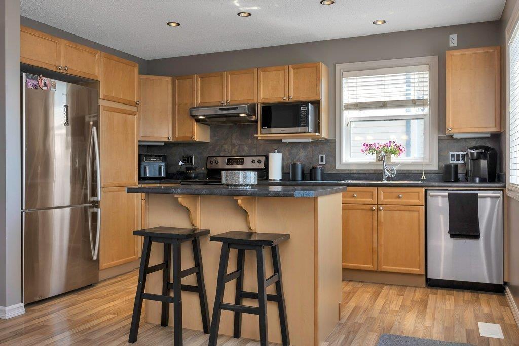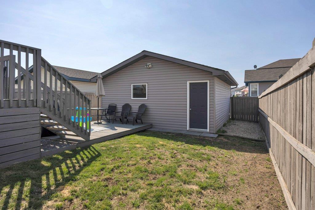 This beautiful nearly 1400 sqft home in Suntree has been well cared for and maintained. Close proximity to walking trails, community pond, West Haven public school and a new High School being built. Entering the main floor with an appealing living room that has Laminate flooring leading to a spacious kitchen with island and pantry. Upstairs features include recent floor upgrades with 3 bedrooms and a 4 piece ensuite that includes floor heating. Outside a two tiered deck and 20X22 Double detached garage. Included in the home is a Central vacuum system, AC, main floor laundry with recent washer and dryer upgrades. The basement unfinished has 9 foot ceilings with a new hot water tank installed. Quick possession available. (id:22211)