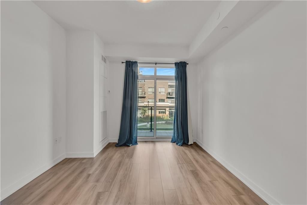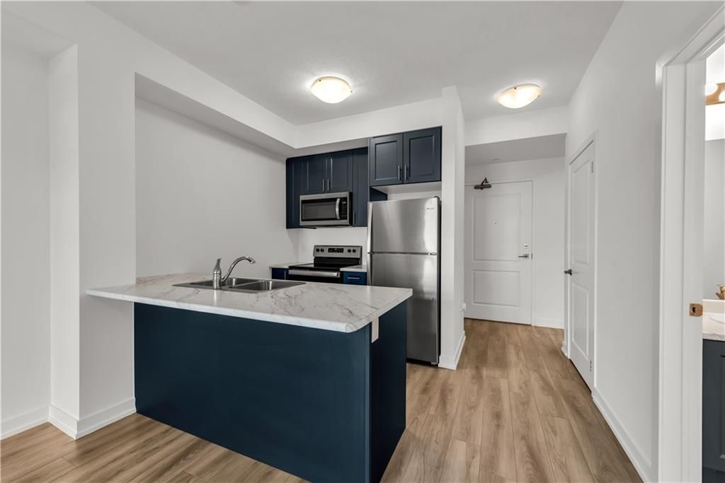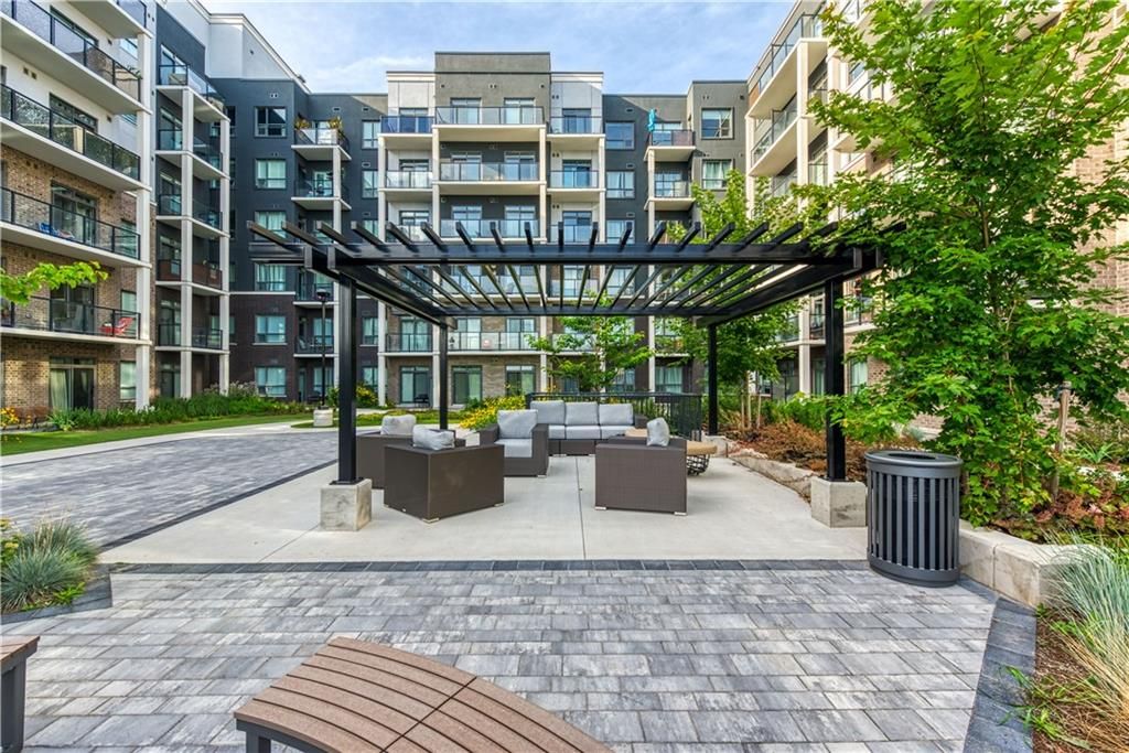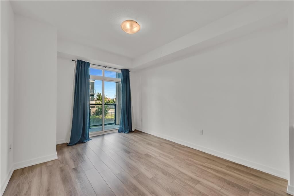 Welcome to the charming town of Beamsville, nestled in the heart of wine country. Presenting this exquisite 1+1 unit with a private balcony and desirable courtyard view. Step into a spacious open-concept kitchen/living room combination with 9 ft ceilings, complemented by a generously sized bedroom, a delightful 4 pc bath, a bonus den, an in-suite washer/dryer, and a private balcony. Upon entering, you'll find a convenient den office space to your immediate left, while straight ahead awaits a well-appointed open-concept kitchen equipped with new stainless steel appliances, including a fridge, stove, dishwasher, and OTR microwave. The kitchen flows into the spacious living room leading to your very own private balcony, perfect for enjoying the fresh Beamsville air. An impressive bedroom provides ample space for relaxation and personalization. A tastefully designed 4 pc bath, and stackable washer and dryer round out the unit.This unit includes 1 owned underground parking space and an owned locker. The building itself offers geothermal heating and cooling, contributing to long-term cost savings and is included in the low condo fee.