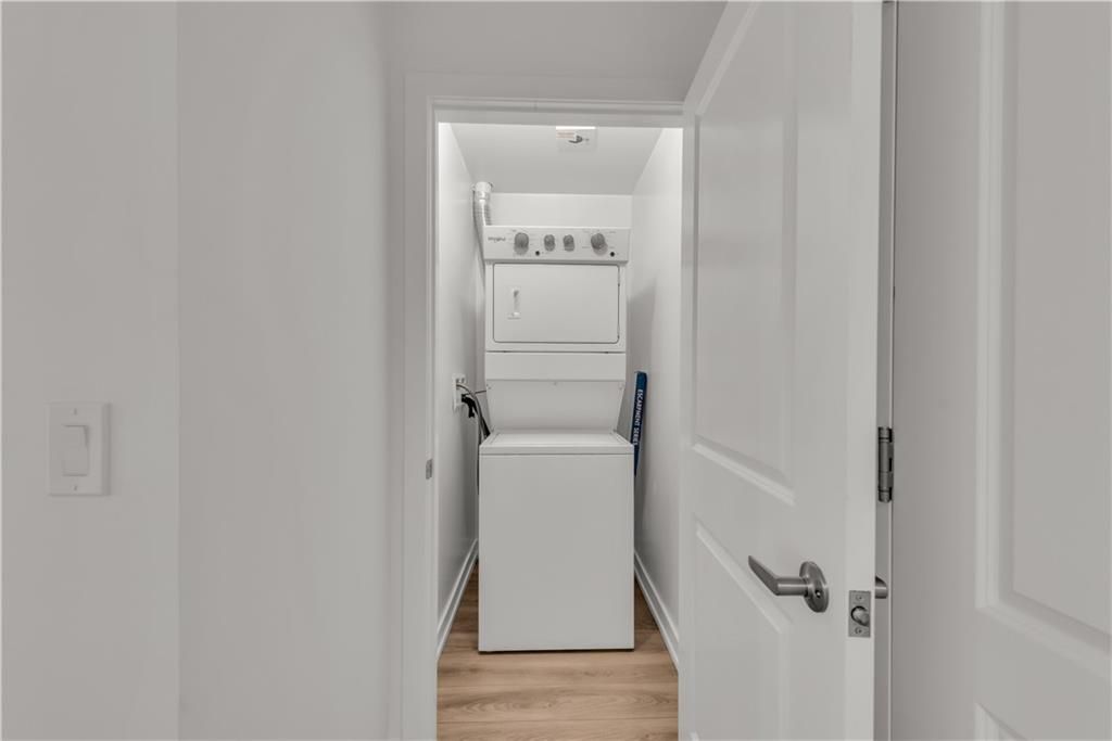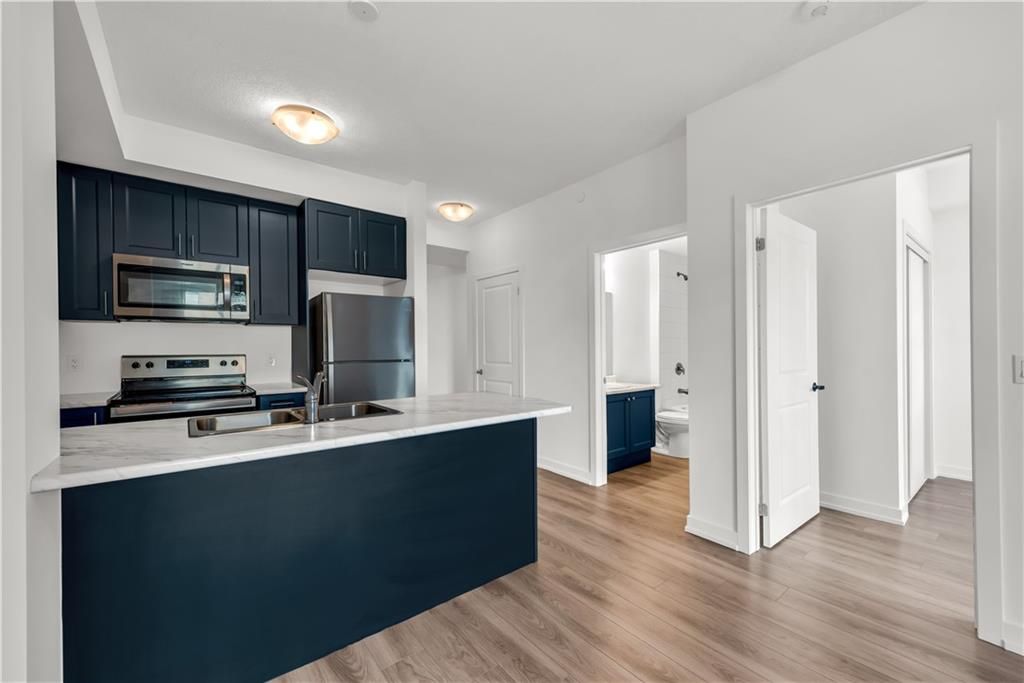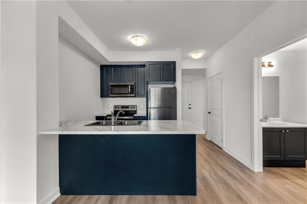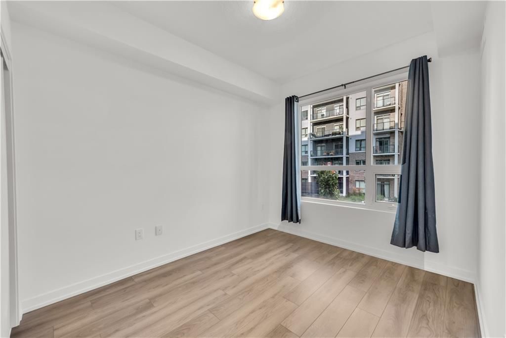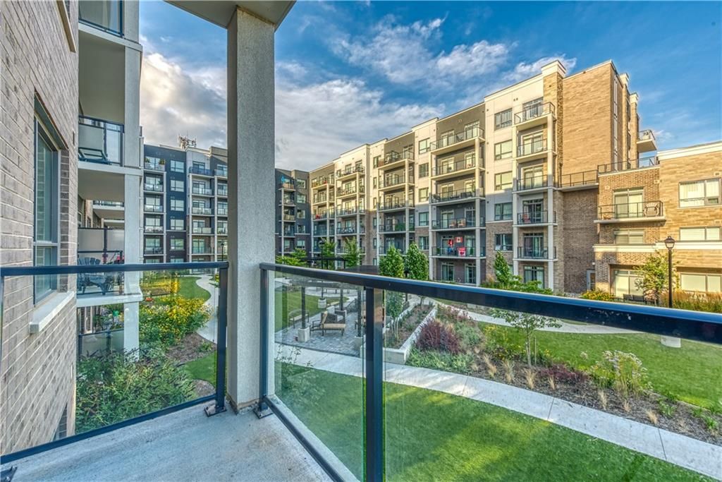 Welcome to the charming town of Beamsville, nestled in the heart of wine country. Presenting this exquisite 1+1 unit with a private balcony and desirable courtyard view. Step into a spacious open-concept kitchen/living room combination with 9 ft ceilings, complemented by a generously sized bedroom, a delightful 4 pc bath, a bonus den, an in-suite washer/dryer, and a private balcony. Upon entering, you'll find a convenient den office space to your immediate left, while straight ahead awaits a well-appointed open-concept kitchen equipped with new stainless steel appliances, including a fridge, stove, dishwasher, and OTR microwave. The kitchen flows into the spacious living room leading to your very own private balcony, perfect for enjoying the fresh Beamsville air. An impressive bedroom provides ample space for relaxation and personalization. A tastefully designed 4 pc bath, and stackable washer and dryer round out the unit.This unit includes 1 owned underground parking space and an owned locker. The building itself offers geothermal heating and cooling, contributing to long-term cost savings and is included in the low condo fee.