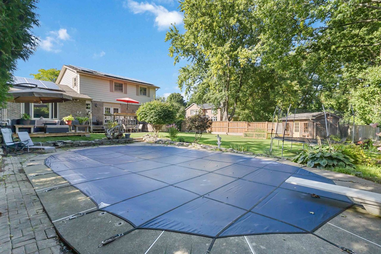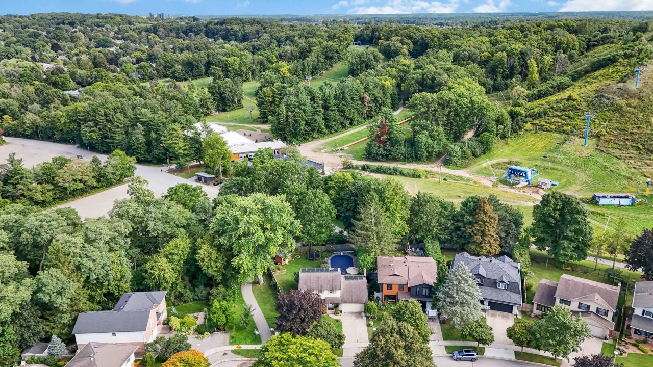 Welcome to this exceptional two-storey home in the heart of Byron, backing directly onto the Boler Ski Hill, one of London's most coveted locations. There isn't a home in Byron that is closer to the chalet at Boler Mountain! Offering four spacious bedrooms, two full bathrooms, and two half bathrooms, this property combines comfort, style, and functionality in a truly unbeatable setting. The stunning custom kitchen is a showpiece, featuring rich maple cabinetry, granite countertops, a large central island, and built-in stainless steel appliances. Natural light flows throughout the home, enhanced by California shutters on nearly every window. Step outside to a private backyard oasis, complete with a new privacy fence, rear patio, a storage shed, and a fully fenced in-ground pool, perfect for both relaxation and entertaining. In the winter, enjoy ski lift access right from your backyard, and in the summer, explore scenic walking trails just steps from your door. The fully finished basement offers additional living space with a built-in wet bar and generous storage. Notable updates include a 200-amp electrical panel, EV charger and 220V plug in the garage, spray foam attic insulation (2021), tankless water heater (owned), energy audit (2021), and a natural gas line for BBQ. Located just minutes from top-rated schools, parks, shopping, and major highways, this home delivers a rare blend of lifestyle, convenience, and location.