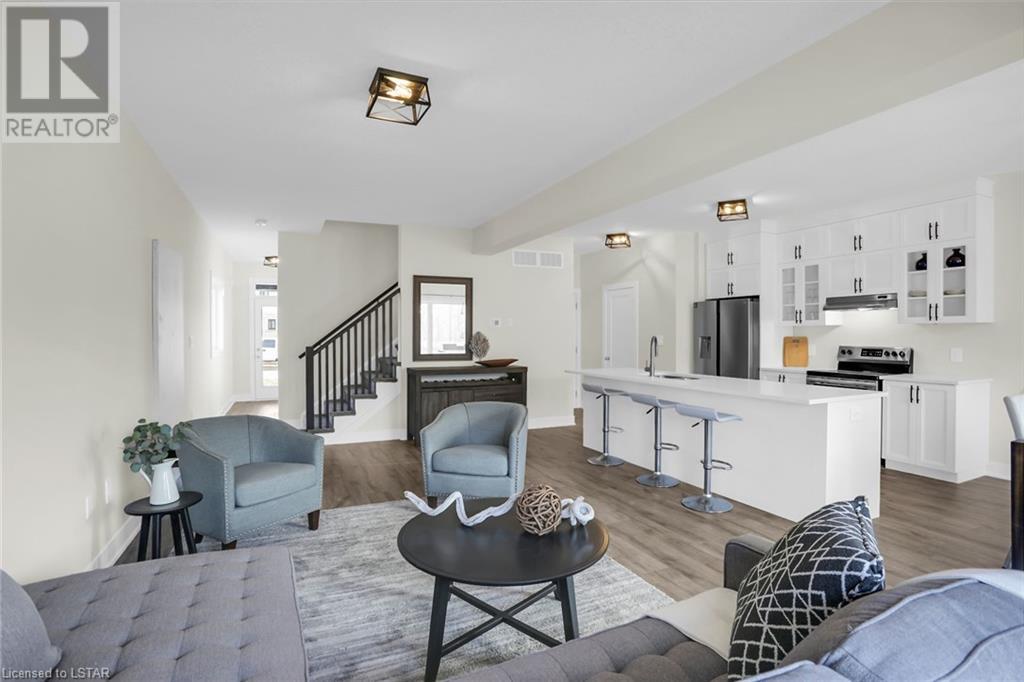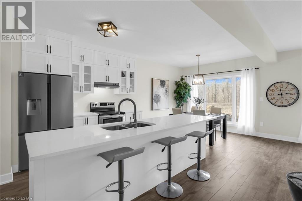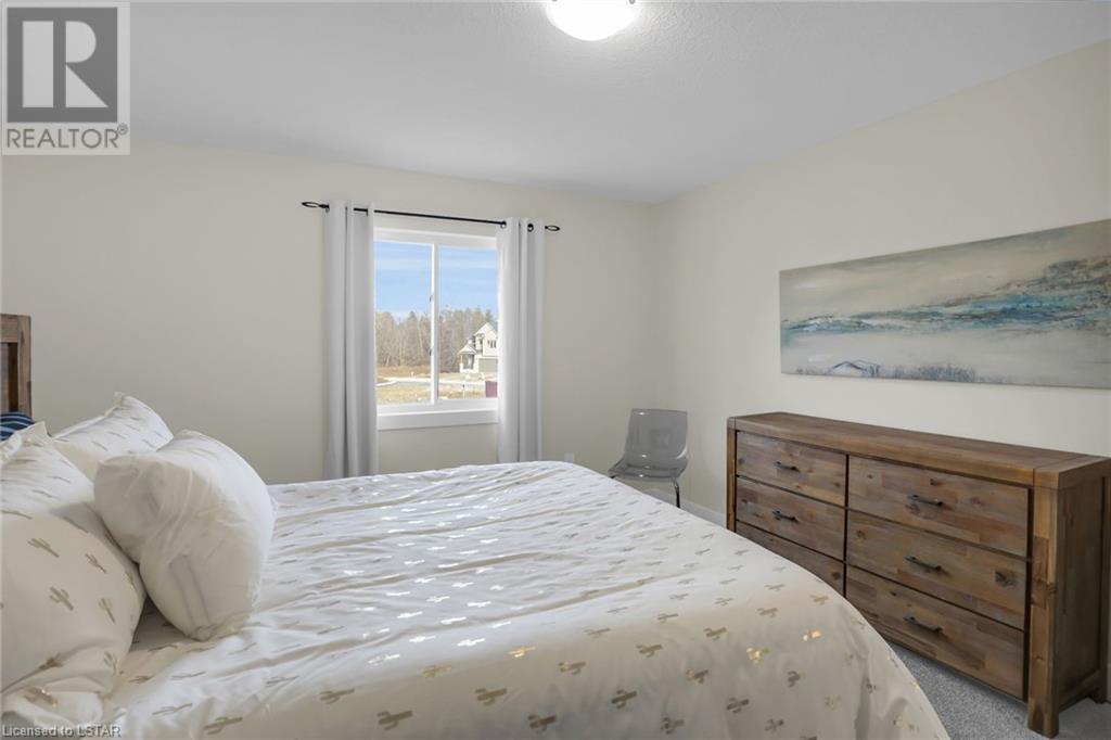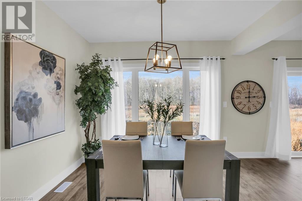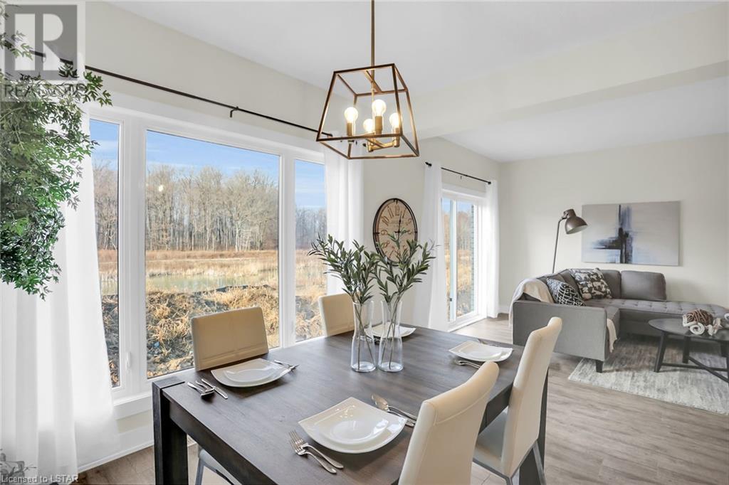 BACKING ONTO POND! To be built: Sunlight Heritage Homes presents The Warren. 1957 sq ft of expertly designed living space located in desirable Old Victoria on the Thames, backing onto green space and pond. Enter into the generous open concept main level featuring kitchen with quartz countertops, 36 upper cabinets with valance and crown moulding, microwave shelf and island with breakfast bar; great room with 9' ceilings and large bright window, dinette with sliding door access to the backyard and convenient main floor 2-piece bathroom. The upper level includes 4 spacious bedrooms including primary suite with walk in closet and 5- piece ensuite with double sinks; laundry room and main bathroom that has cheater ensuite access to second bedroom. Bright walk-out basement with access to backyard and pond. Other standard inclusions: Laminate flooring throughout main level (except bathroom), 5' patio slider, 9' ceilings on main level, bathroom rough-in in basement, central vac R/I, drywalled garage, 2 pot lights above island and more! Other lots and plan to choose from. Contact listing agent for details on to be built homes. Photos are from model home and may show upgraded items. ONE YEAR CLOSING AVAILABLE! (id:22211)