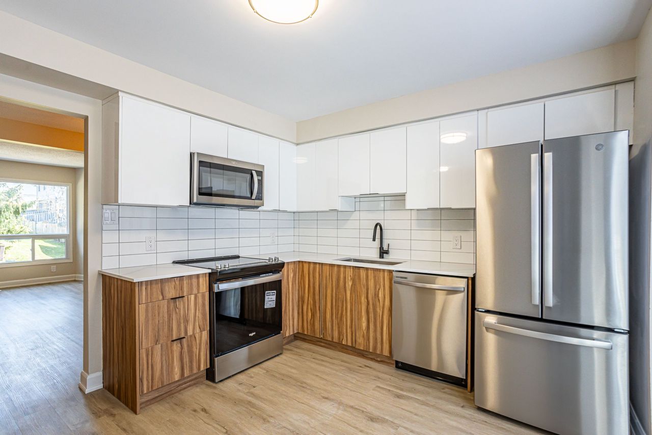 Limited-Time Offer for this Townhome. A low 3.99% 1-Year Fixed Rate Mortgage for qualified purchasers. Welcome to this renovated 3 storey townhome with garage and driveway parking space. This property offers the opportunity to purchase an updated townhome in South London. You will be impressed by the modern kitchen cabinetry with all new appliances and tiled backsplash. Dining and living room areas, along with convenient bathroom and laundry (with new washer and dryer) are all on one level. The third level hosts 3 bedrooms and a renovated 4 piece bathroom with new tiled surround. Private patio out back. The condo fees take care of your outdoor maintenance and there is additional parking on site for guests. Gas furnace and air-conditioning unit offer economical heating and cooling. Located near the Bus Rapid Transit system which will provide easy access to downtown or walk to work at the hospital. Great opportunity to own a 3 storey townhome and have your own parking! Note: Pictures are from unit 75 which is almost identical to this unit.