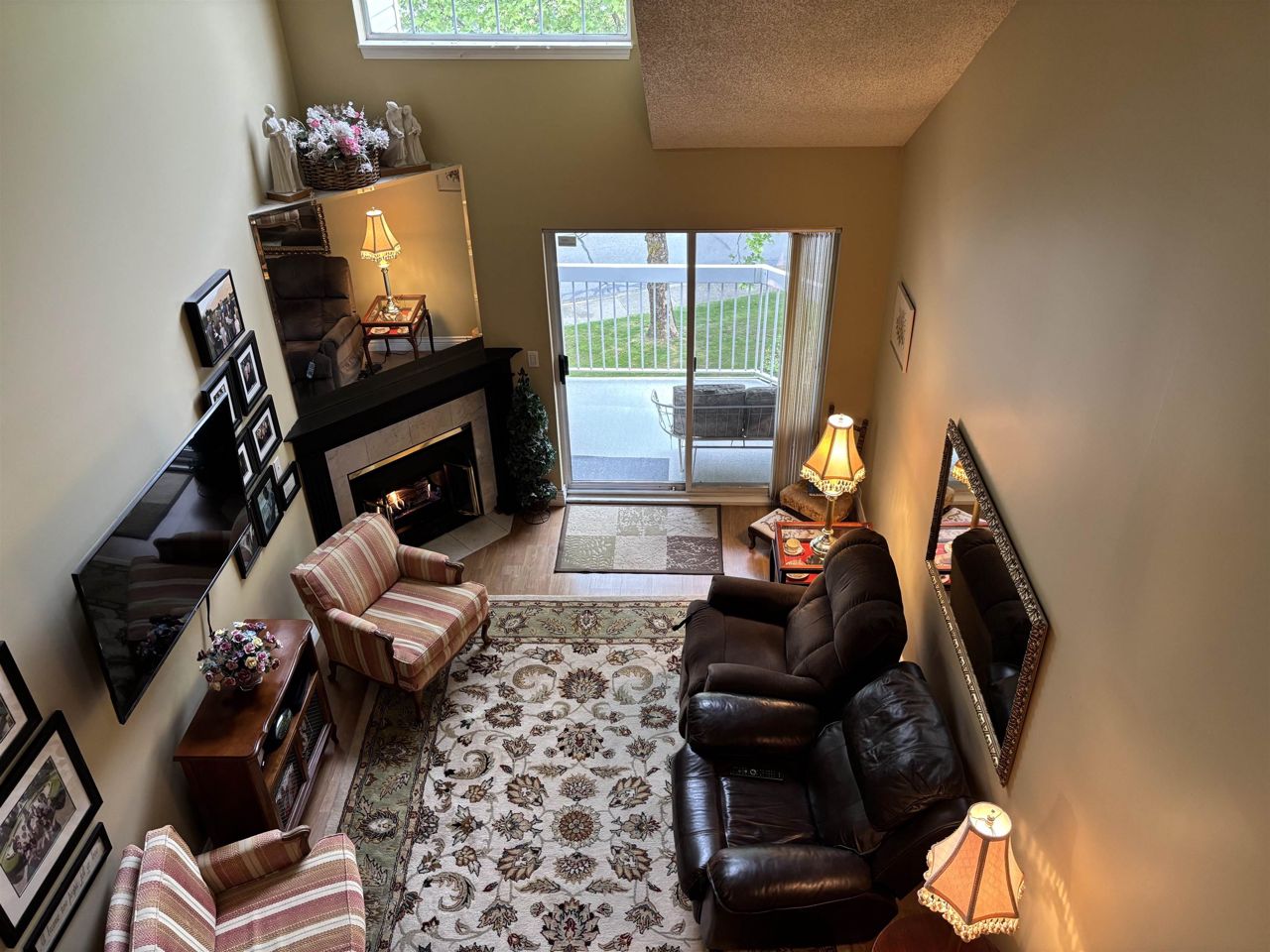 JUST REDUCED !! FRASER COURT located in Fraserview Village offers apartment living at its best! Lovely top floor feels like a townhome instead of an apartment - FEATURES 2 bedrooms & 2 baths on the main, spacious open floor plan with vaulted ceilings in the living room, gas fireplace, patio door to a bright south facing deck, lots of kitchen cabinets & counter space PLUS a 2nd floor LOFT for office, hobbies or an extra area for guests. Close to all transit & shopping & within walking distance of the downtown area. This adult oriented village is age 55 plus & has access to the amenities building which includes an indoor pool area. Priced to sell!