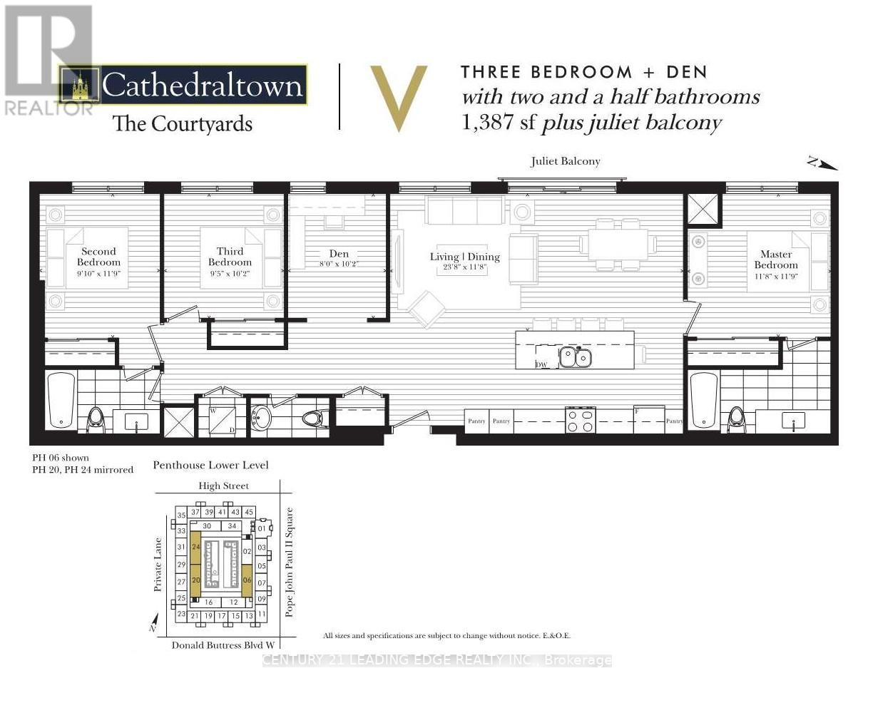 Move in this Year! Live In Elegant Architecture Of The Courtyards In Cathedraltown! European Inspired Boutique Style Condo 5-Storey Bldg. Unique Distinctive Designs Surrounded By Landscaped Courtyrd/Piazza W/Patio Spaces. Ph Is 1387Sf Of Gracious Living W/3 Bdrms+Den & 2.5 Baths + Juliette Balcony. Close To A Cathedral, Shopping, Public Transit & Great Schools In A Very Unique One-Of-A-Kind Community. Amenities Incl:Concierge, Visitor Pkg, Exercise Rm Party/Meeting Rm.**** EXTRAS **** S/S Package Incl: Fridge; Stove; B/I Dishwasher; Stacked (White) Washer/Dryer, Standard Finishes - Imported Italian Cabinets, Granite/Marble/Ceramics/Porcelain Flrs/Laminate Flooring, 9Ft Ceilings, One Underground Parking Space, One Locker. (id:22211)