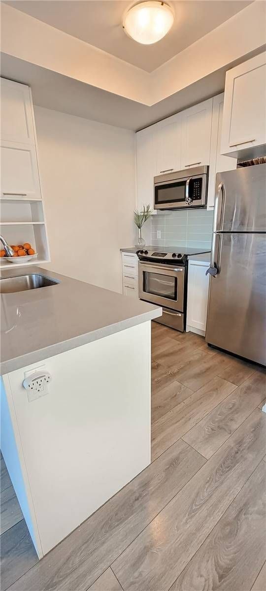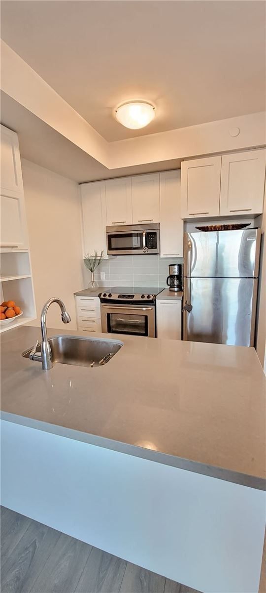 6-Year Old Luxury Condo In High-Demand Berczy Village. Close To Prominent Schools - Pierre Trudeau High & Stonebridge Public, Shopping Mall, Public Transit, Etc,. Approx 588 Sq Ft + Quality Finishes Includes Smooth Ceilings, Laminate Flooring, Caesarstone Countertops & Breakfast Bar, Extended Upper Cabinets, Ceramic Back Splash, Upgraded Shaker Doors, Upgraded Paint And Kitchen Hardware, Good Condo Facilities, 24-Hour Concierge Security.Stainless Steel (Fridge, Stove, Microwave, Dishwasher), Electric Light Fixtures, Stacked Front Load Washer & Dryer. 1 Parking & 1 Locker