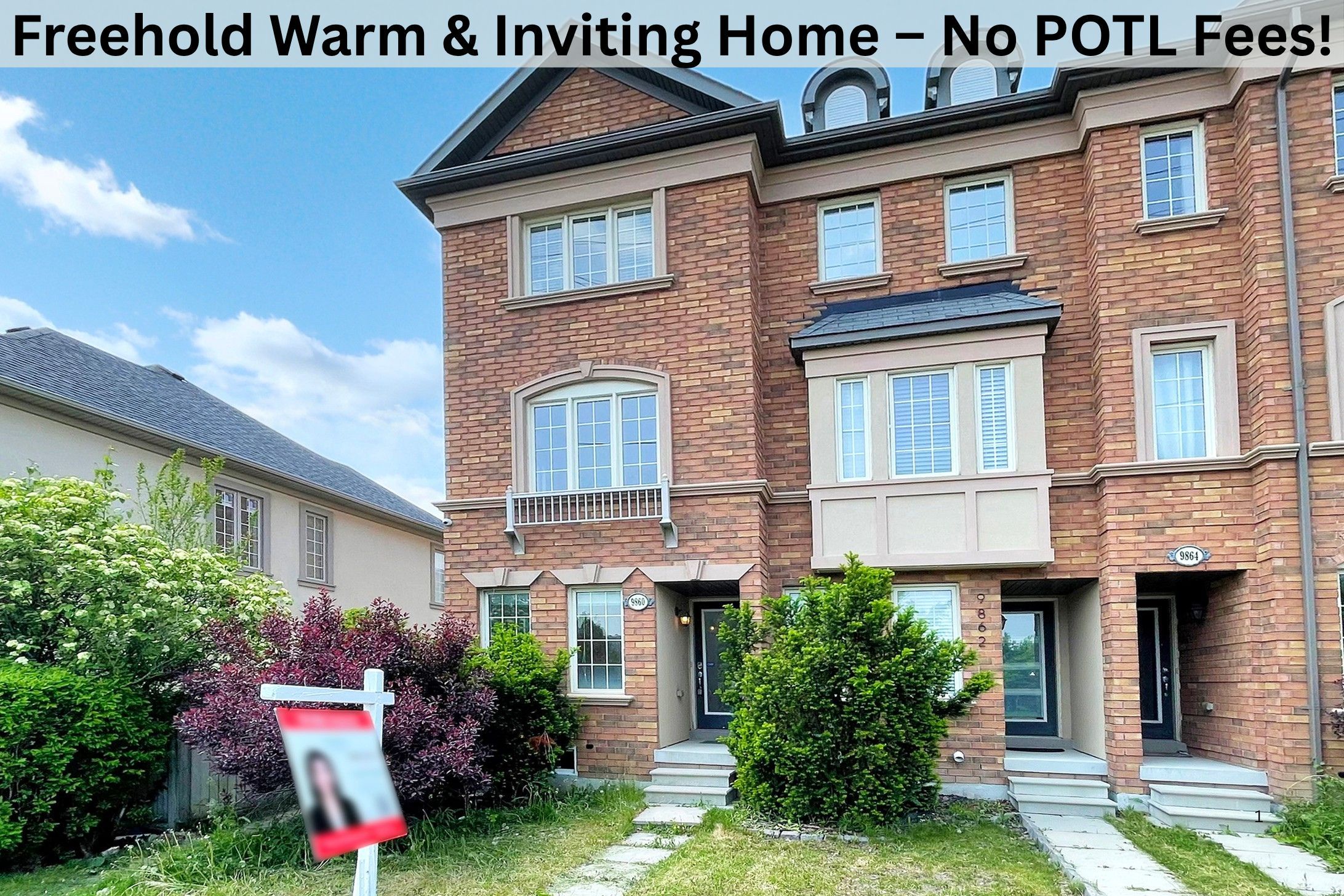 Warm & Inviting Home in the Highly Desirable Berczy Community. No POTL Fee!!! Like a semi, this stunning end-unit freehold townhome offers a bright, spacious open-concept layout with direct garage access. The gourmet kitchen features granite countertops, stainless steel appliances, a breakfast area, and walk-out to a large second-floor balcony, perfect for entertaining. Each bedroom is well-proportioned with excellent natural light and flow. Two bedrooms on the third floor have private ensuite bathrooms, including a primary suite with a 4-piece ensuite and large closet. Conveniently located near supermarkets, top-ranking schools, police station, and hospital. Public transit just steps away. Zoned for highly ranked Stonebridge PS & Pierre Elliott Trudeau HS. Buy into one of the best school zones at a best price! Dont miss this opportunity!