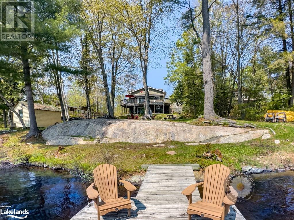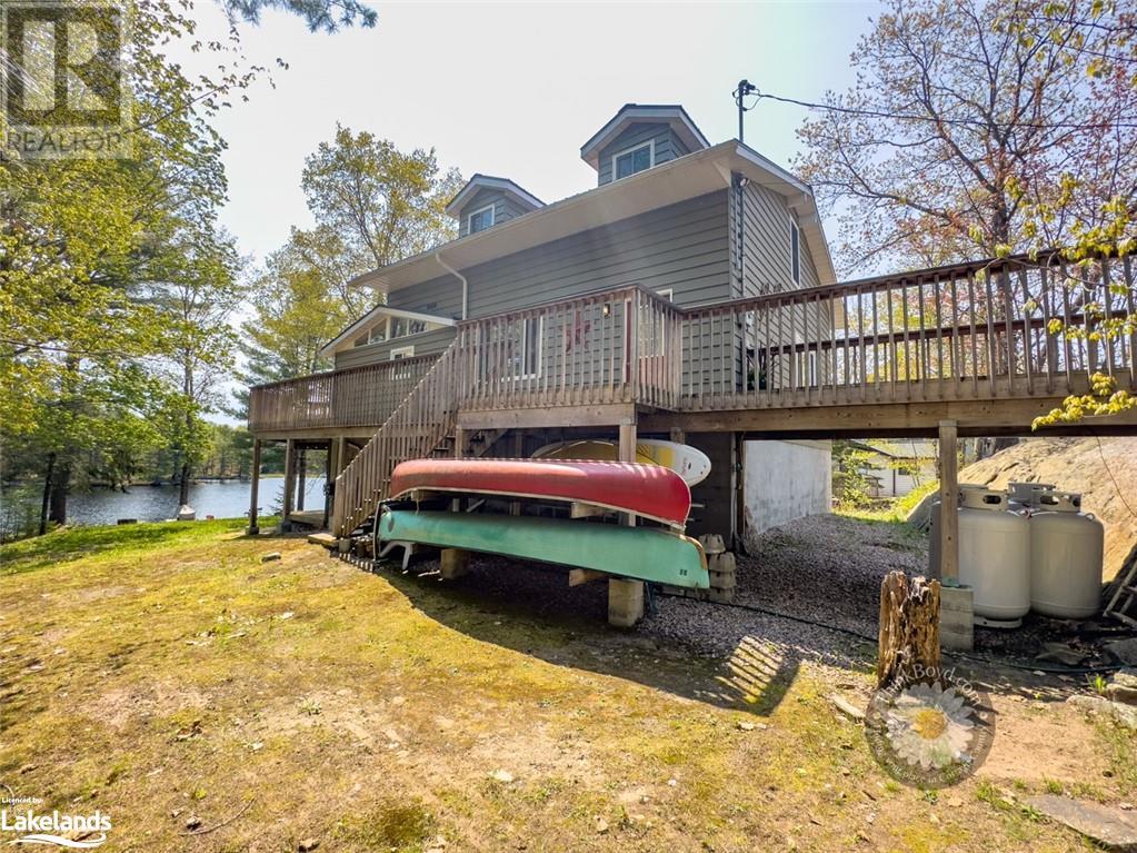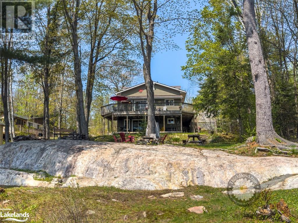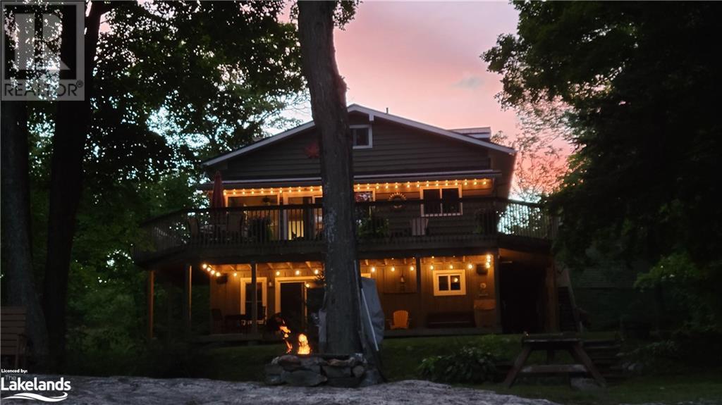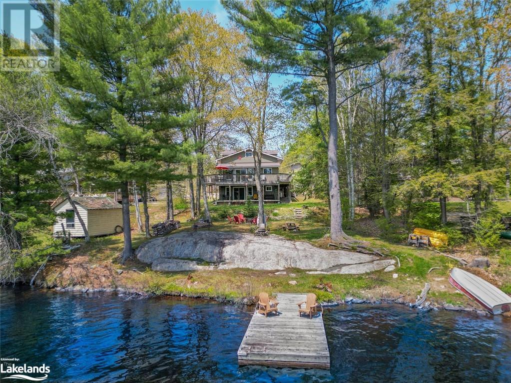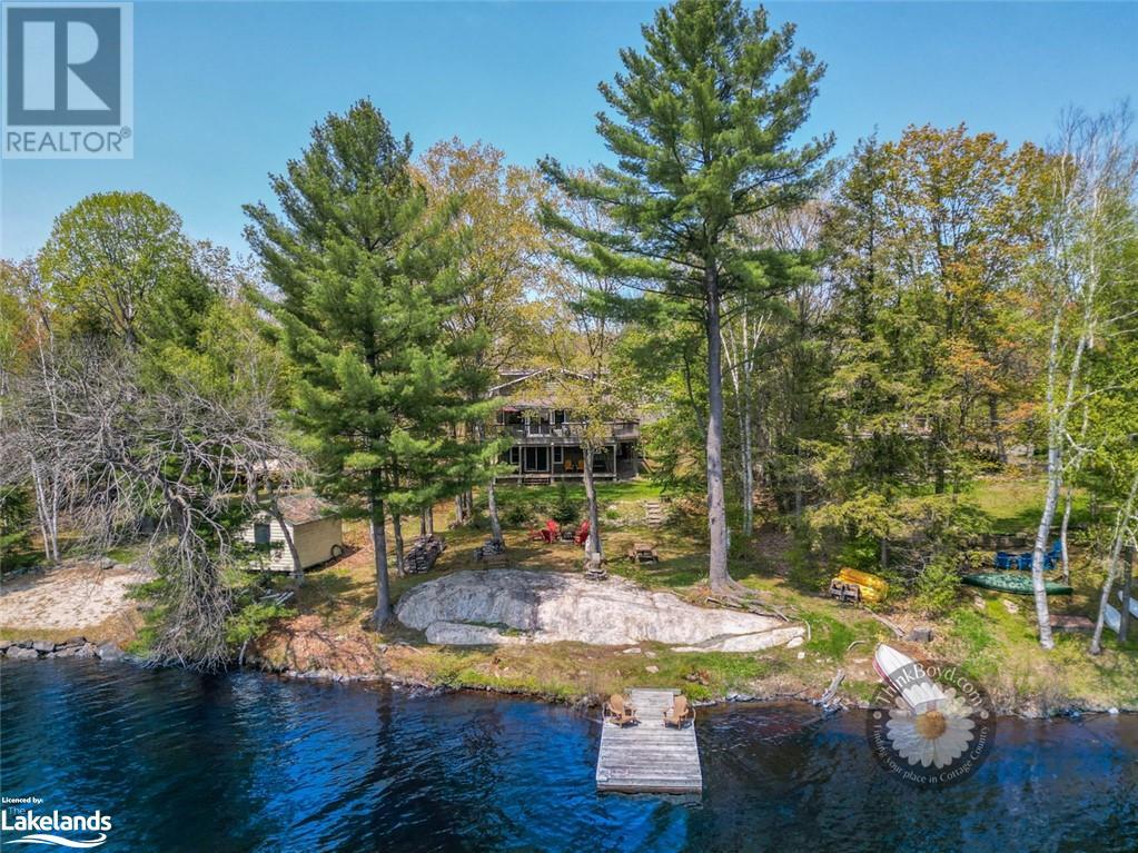 Welcome to 13 Peninsula Shores Rd East, located on the beautiful shores of Harris Lake. Easy access on a paved, year round road. Spacious and updated with room for the whole family on 3 levels with a total of 4+ bedrooms and 2 bathrooms. This property is situated on approx. ½ acre with natural rock outcrops, level areas for a fire pit and family gatherings. The Main level boasts a foyer with a closet, living room, updated kitchen, dining area with walk out to the wrap around deck. The primary bedroom, laundry room, office and 3 piece bathroom completes the main level. On the 2nd level you’ll find 3 bedrooms a bonus or playroom, a sitting area and a linen closet. The lower level with high ceiling has an entertaining rec room with propane fireplace, 3 piece bathroom and a walk out to the lower deck leading to the dock sitting on 100ft of shoreline. There is also a work room, utility room and a wall of closets for extra storage. Not just one but 2 garages for boats, car and all the toys and plenty of parking space for you and your guests. Conveniently located 10 mins from Parry Sound to all amenities also close to the snowmobile trail. Immaculate and well kept, this cottage country property is truly a little slice of paradise! (id:22211)