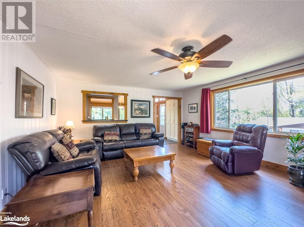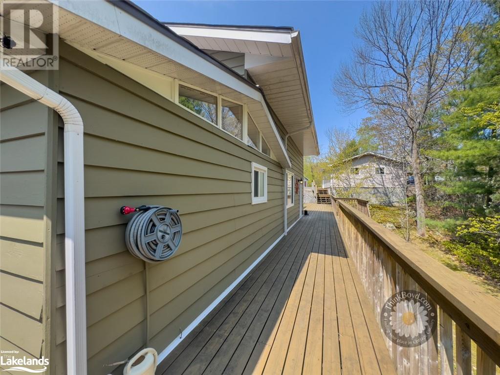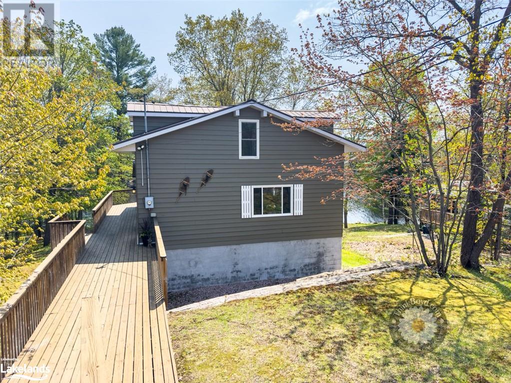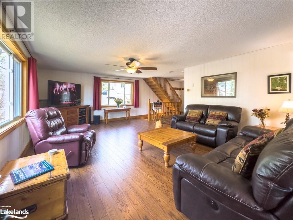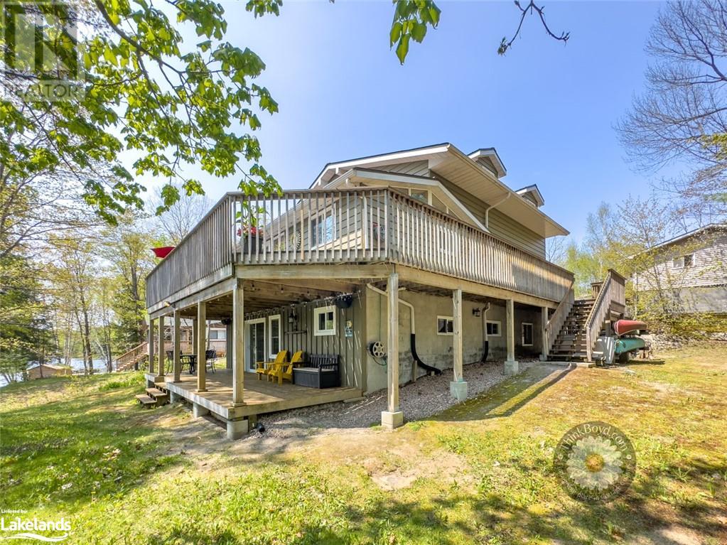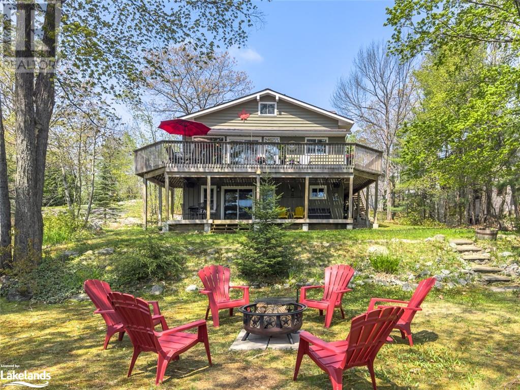 Welcome to 13 Peninsula Shores Rd East, located on the beautiful shores of Harris Lake. Easy access on a paved, year round road. Spacious and updated with room for the whole family on 3 levels with a total of 4+ bedrooms and 2 bathrooms. This property is situated on approx. ½ acre with natural rock outcrops, level areas for a fire pit and family gatherings. The Main level boasts a foyer with a closet, living room, updated kitchen, dining area with walk out to the wrap around deck. The primary bedroom, laundry room, office and 3 piece bathroom completes the main level. On the 2nd level you’ll find 3 bedrooms a bonus or playroom, a sitting area and a linen closet. The lower level with high ceiling has an entertaining rec room with propane fireplace, 3 piece bathroom and a walk out to the lower deck leading to the dock sitting on 100ft of shoreline. There is also a work room, utility room and a wall of closets for extra storage. Not just one but 2 garages for boats, car and all the toys and plenty of parking space for you and your guests. Conveniently located 10 mins from Parry Sound to all amenities also close to the snowmobile trail. Immaculate and well kept, this cottage country property is truly a little slice of paradise! (id:22211)