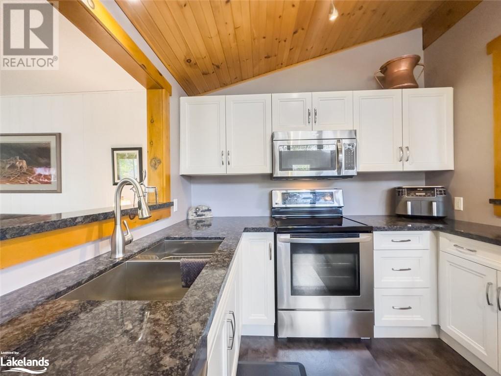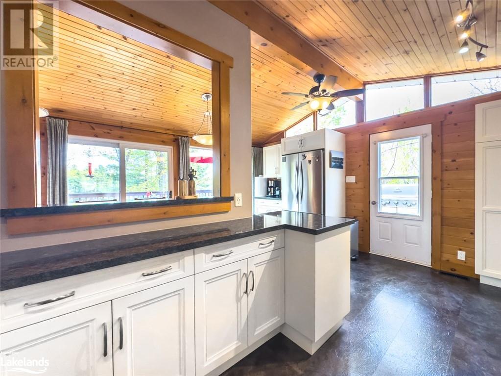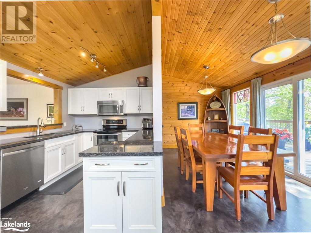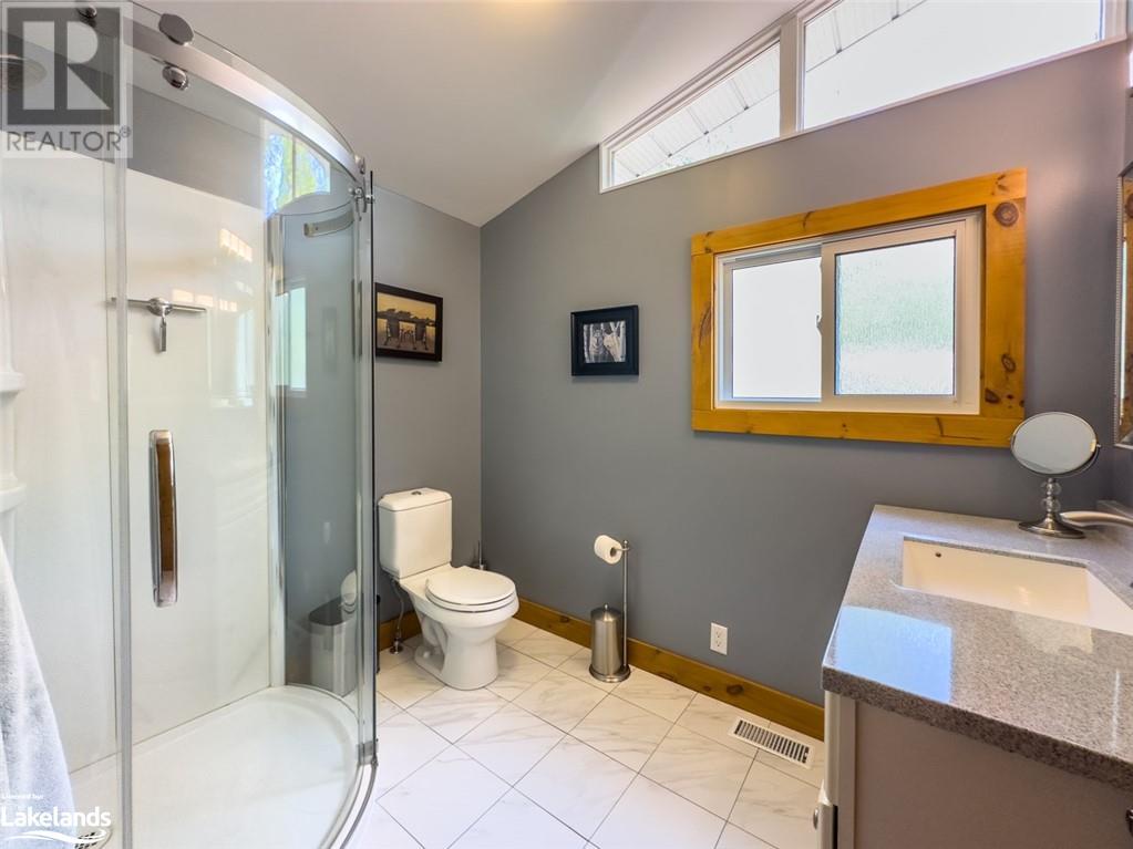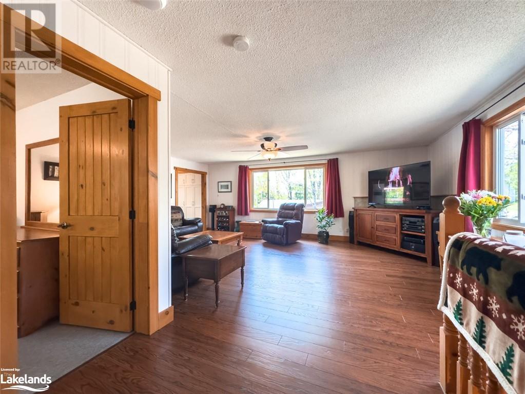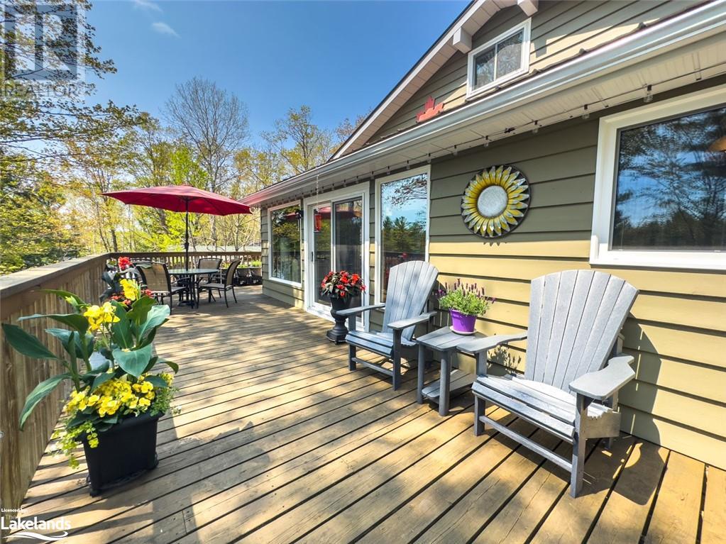 Welcome to 13 Peninsula Shores Rd East, located on the beautiful shores of Harris Lake. Easy access on a paved, year round road. Spacious and updated with room for the whole family on 3 levels with a total of 4+ bedrooms and 2 bathrooms. This property is situated on approx. ½ acre with natural rock outcrops, level areas for a fire pit and family gatherings. The Main level boasts a foyer with a closet, living room, updated kitchen, dining area with walk out to the wrap around deck. The primary bedroom, laundry room, office and 3 piece bathroom completes the main level. On the 2nd level you’ll find 3 bedrooms a bonus or playroom, a sitting area and a linen closet. The lower level with high ceiling has an entertaining rec room with propane fireplace, 3 piece bathroom and a walk out to the lower deck leading to the dock sitting on 100ft of shoreline. There is also a work room, utility room and a wall of closets for extra storage. Not just one but 2 garages for boats, car and all the toys and plenty of parking space for you and your guests. Conveniently located 10 mins from Parry Sound to all amenities also close to the snowmobile trail. Immaculate and well kept, this cottage country property is truly a little slice of paradise! (id:22211)