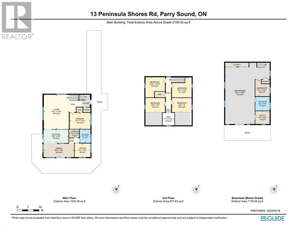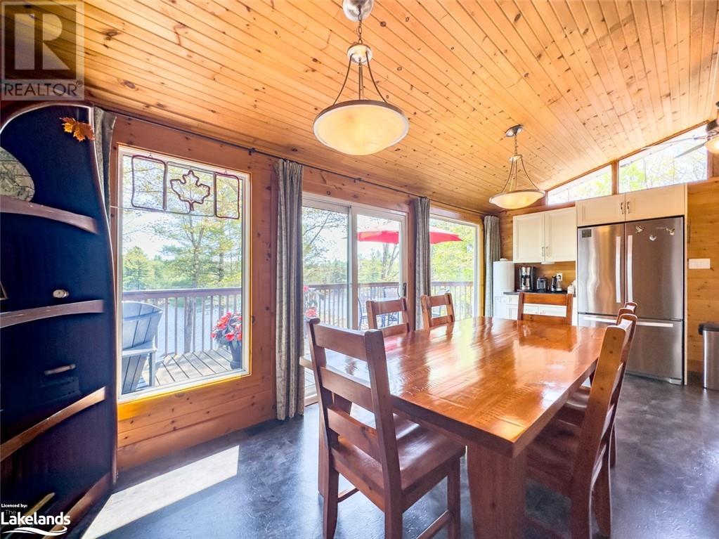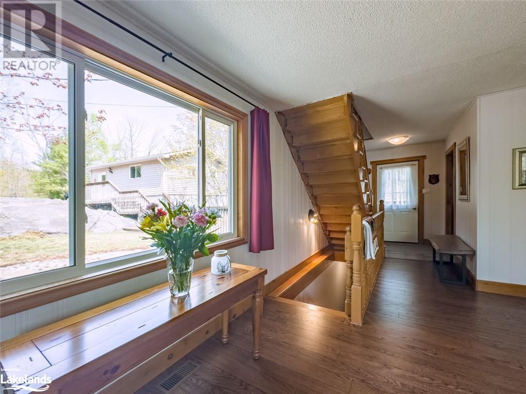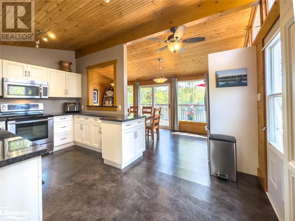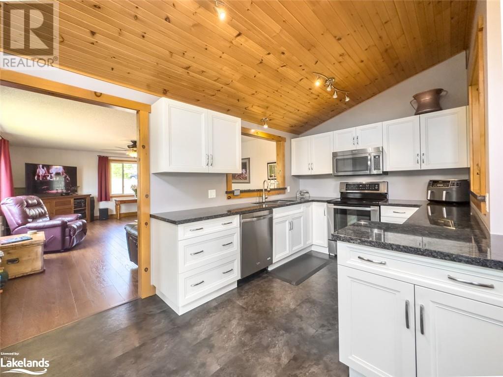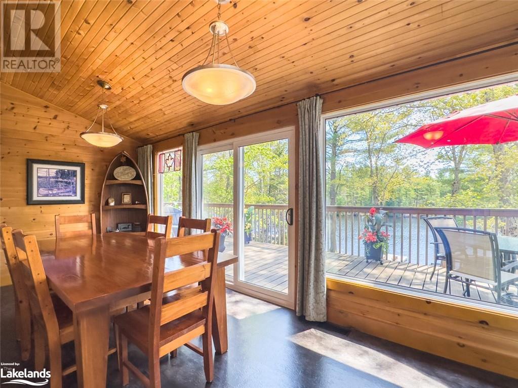 Welcome to 13 Peninsula Shores Rd East, located on the beautiful shores of Harris Lake. Easy access on a paved, year round road. Spacious and updated with room for the whole family on 3 levels with a total of 4+ bedrooms and 2 bathrooms. This property is situated on approx. ½ acre with natural rock outcrops, level areas for a fire pit and family gatherings. The Main level boasts a foyer with a closet, living room, updated kitchen, dining area with walk out to the wrap around deck. The primary bedroom, laundry room, office and 3 piece bathroom completes the main level. On the 2nd level you’ll find 3 bedrooms a bonus or playroom, a sitting area and a linen closet. The lower level with high ceiling has an entertaining rec room with propane fireplace, 3 piece bathroom and a walk out to the lower deck leading to the dock sitting on 100ft of shoreline. There is also a work room, utility room and a wall of closets for extra storage. Not just one but 2 garages for boats, car and all the toys and plenty of parking space for you and your guests. Conveniently located 10 mins from Parry Sound to all amenities also close to the snowmobile trail. Immaculate and well kept, this cottage country property is truly a little slice of paradise! (id:22211)
