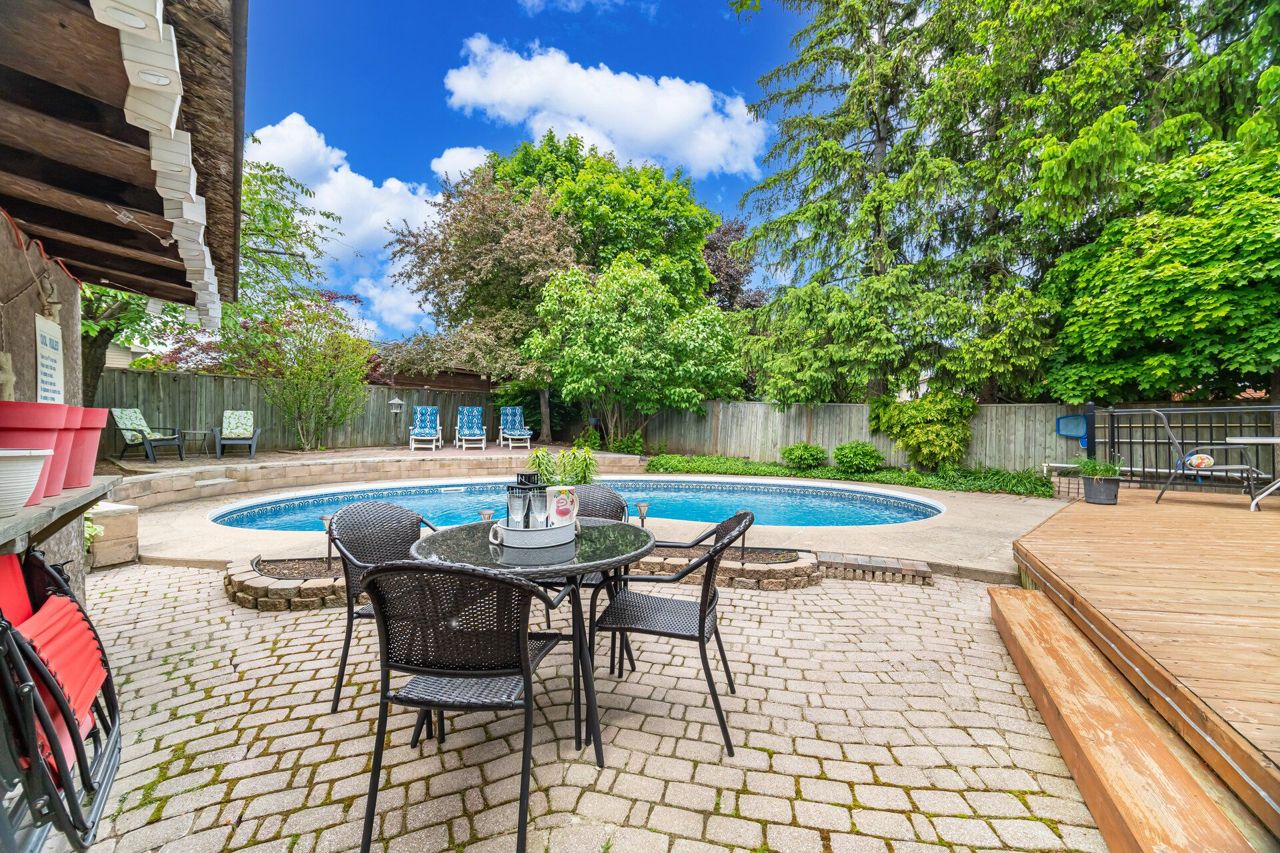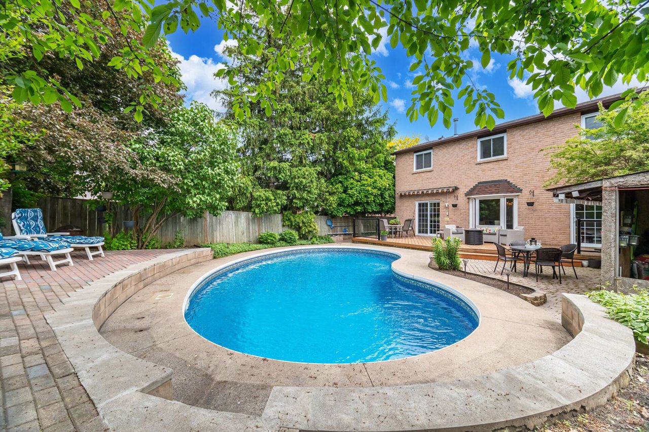 This beautifully maintained 4-bedroom detached home offers the perfect blend of family comfort and outdoor luxury in one of Miltons most sought-after neighborhoods. Nestled on a quiet, tree-lined street in Timberlea, this spacious residence features a stunning resort-style backyard complete with a large in-ground pool, professionally landscaped gardens, and a generous patio area ideal for summer entertaining and family fun. Inside, you'll find a warm and inviting layout with a bright formal living room, a separate dining area, and a modern kitchen with walk-out access to the backyard. The upper level boasts four spacious bedrooms, including a primary suite with ample closet space and a private ensuite. Additional highlights include a finished basement, double garage, updated windows, and a long driveway. Just steps from schools, parks, trails, and all the amenities Timberlea has to offer, this home is the total package. Pool Liner and equipment have all been replaced within the last 5 Years. Dont miss your chance to live in your very own backyard resort right in the heart of Milton!