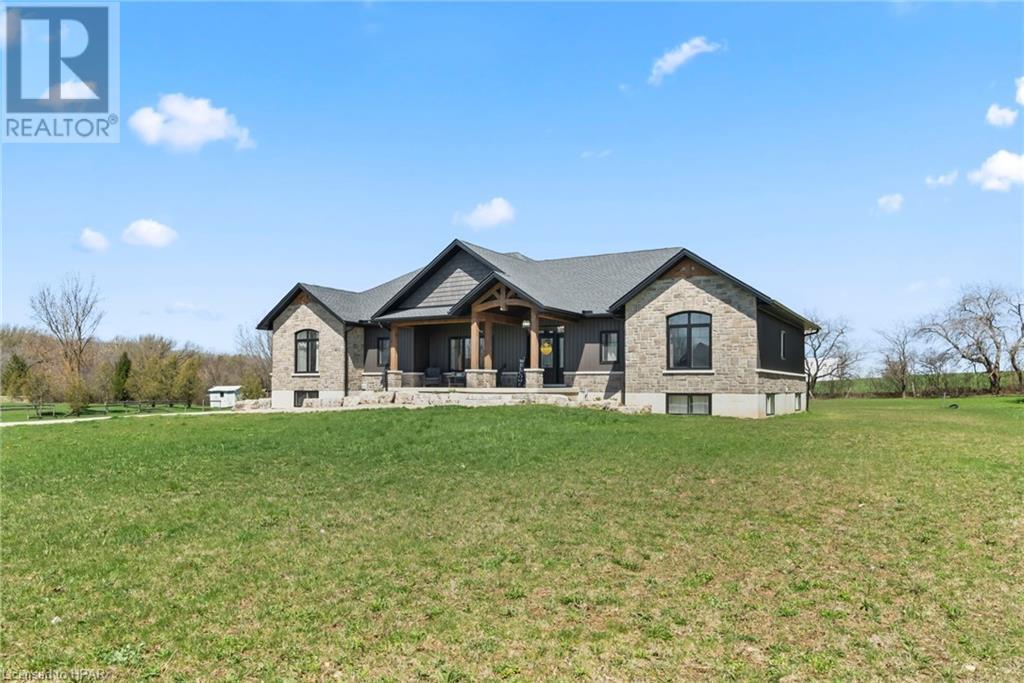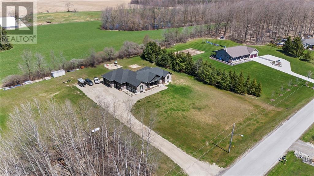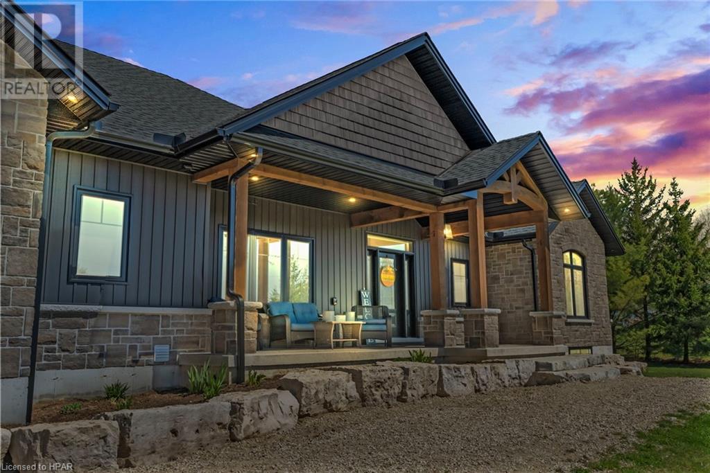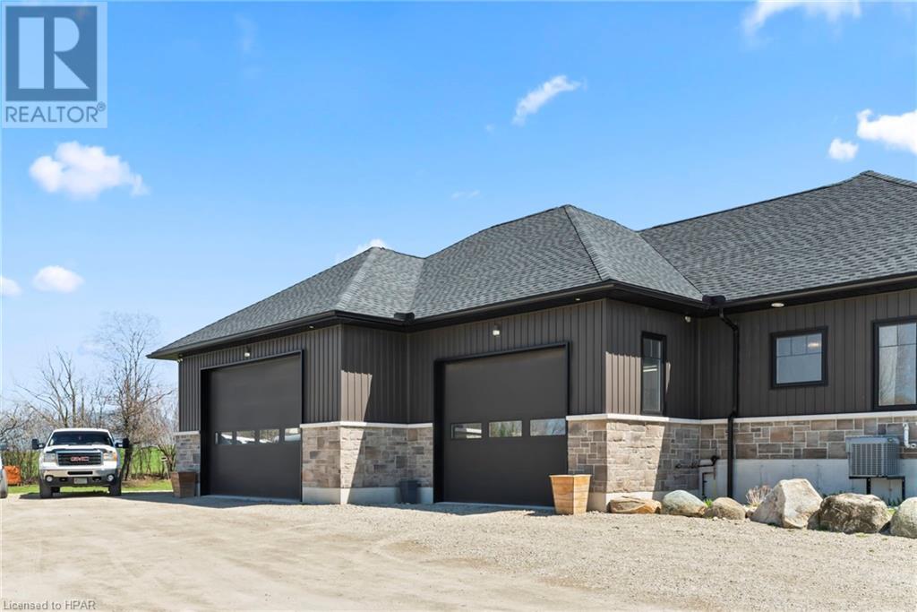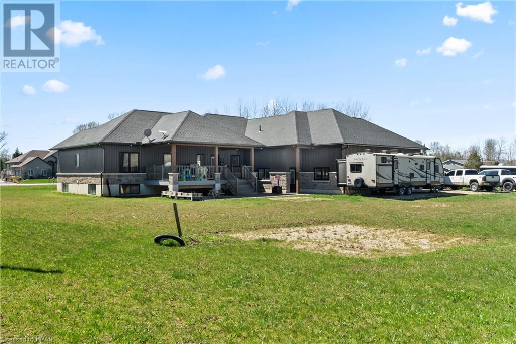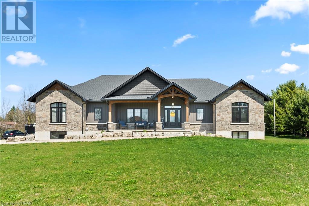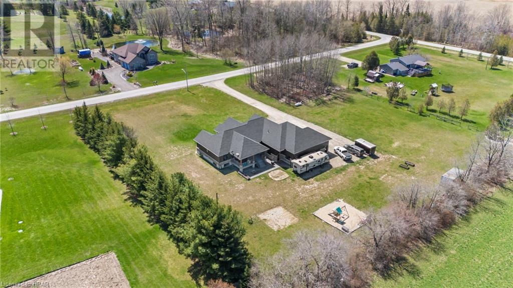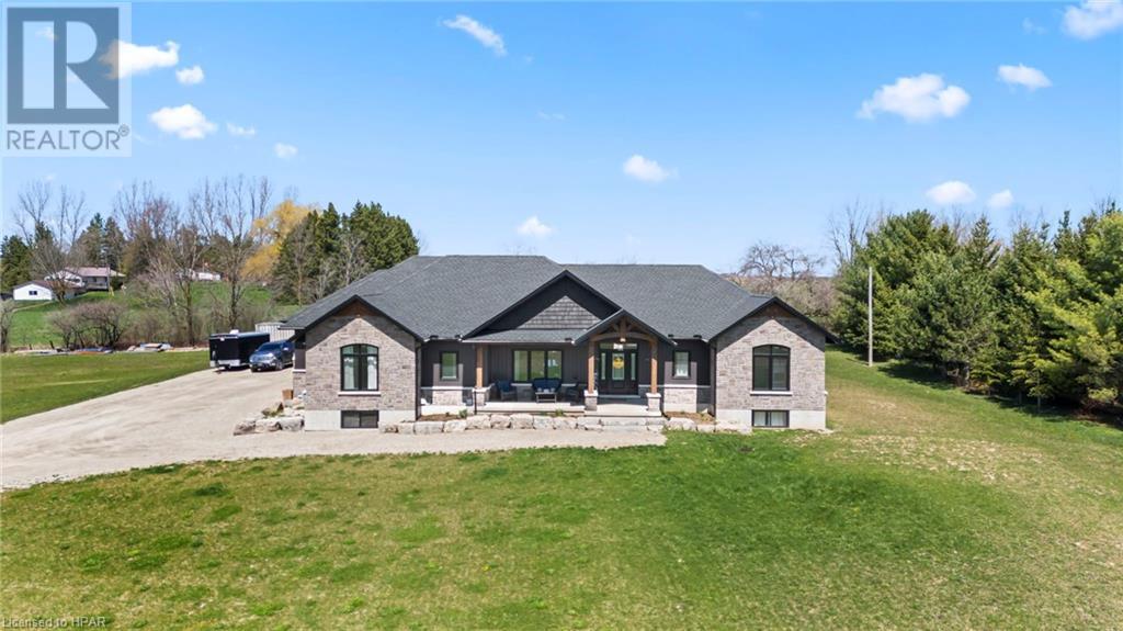 Welcome to 51 Highland Road in the Executive Country Estates minutes from the community of Clifford, Harriston & Mount Forest. This 2 Year New Bungalow is nestled amongst one of the most desirable country neighbourhoods in Minto where you can enjoy peaceful country living while having the security of neighbours nearby for social engagements and peace of mind. The timber frames, porch and stunning stone accentuate the true and charming beauty of this 3+2 bedroom, 2+ bath home. Vaulted ceilings, luxury flooring, stunning stone fireplace, massive island, quartz countertops and custom kitchen cabinetry all flooded with natural light are just a few of the finishes that will be sure to impress you from the moment you step inside. The remainder of the main floor of this open concept home is finished with a large primary bedroom featuring walk-in closet and luxurious ensuite with double sinks, walk in shower & soaker tub; laundry, 2 additional bedrooms, 5 pc bath and endless storage. Add in some flooring and trim to the basement and double your living space. With access and mud rooms from your MASSIVE attached garage to the lower level and main level of the home you can easily use this home for multigenerational living. Let's not forget about the sprawling almost 2 acres of land including a secluded wooded section, covered back trex deck & concrete patio and the handy-person or toy collectors dream: The Garage - with 12' ceilings, trusscore interior, in-floor heat, bathroom, wiring for your welder AND travel trailers and 11'x16' & 10'10 OverHead Doors, what more could you ask for?! A Home Like This Doesn't Come Along Often, Call Your REALTOR® Today To View What Could Be Your New Country Estate Home, 51 Highland Road, Minto. (id:22211)