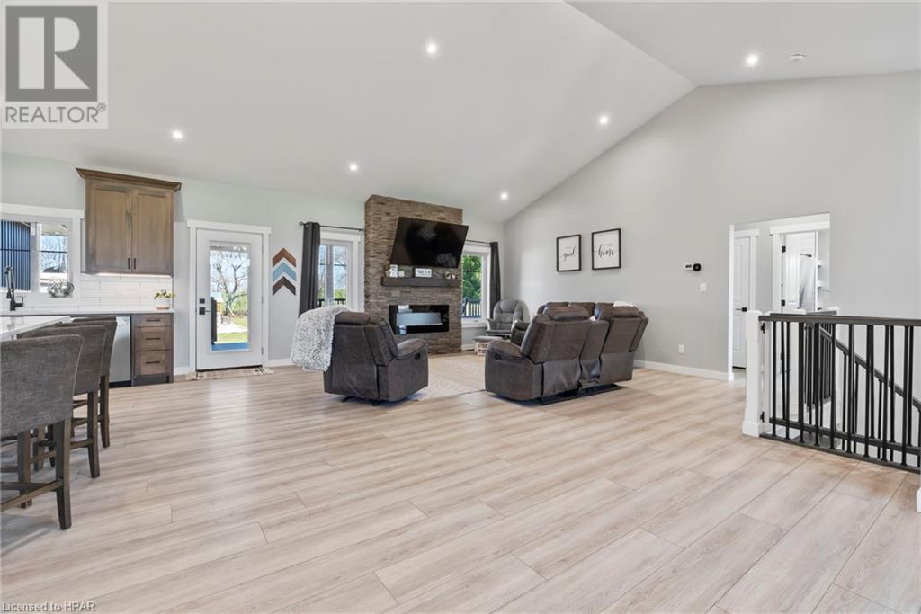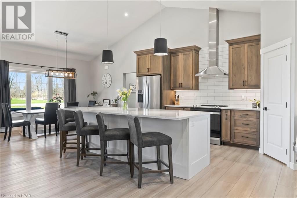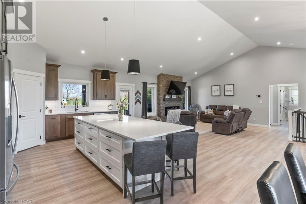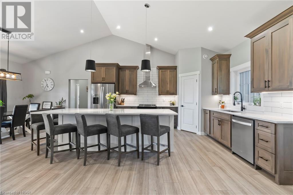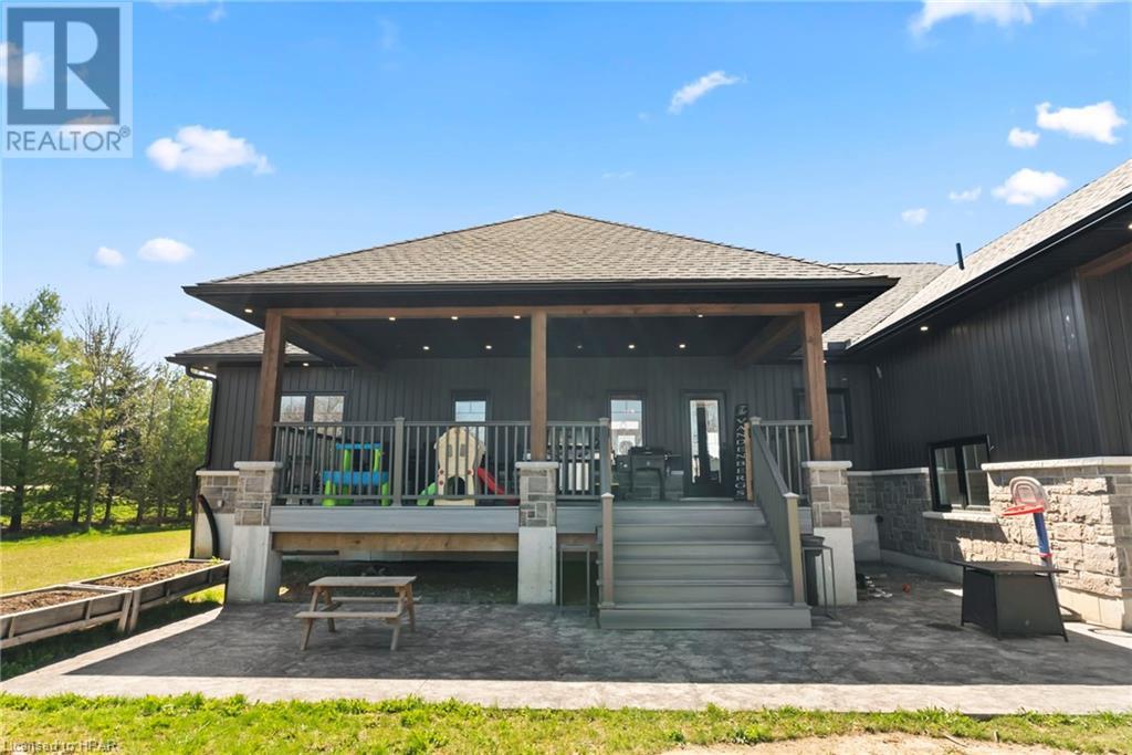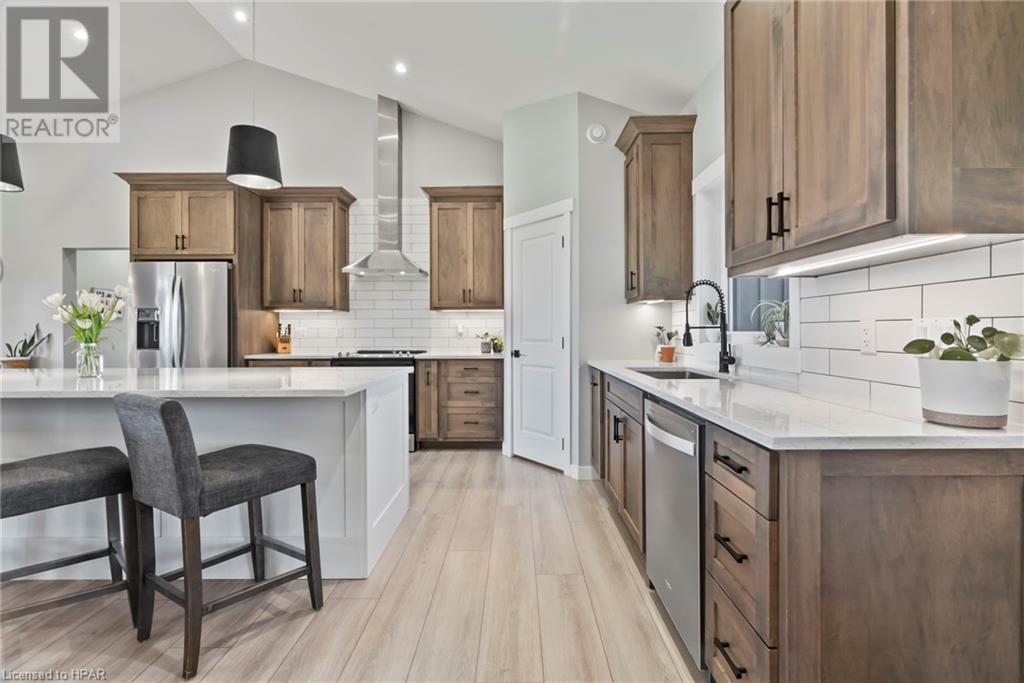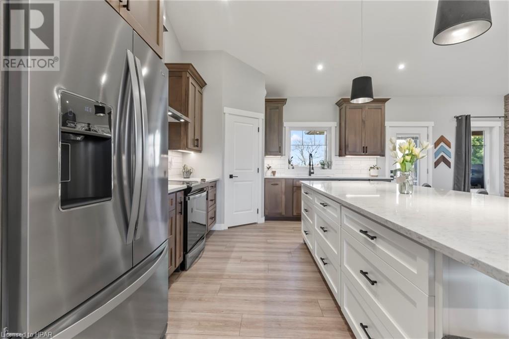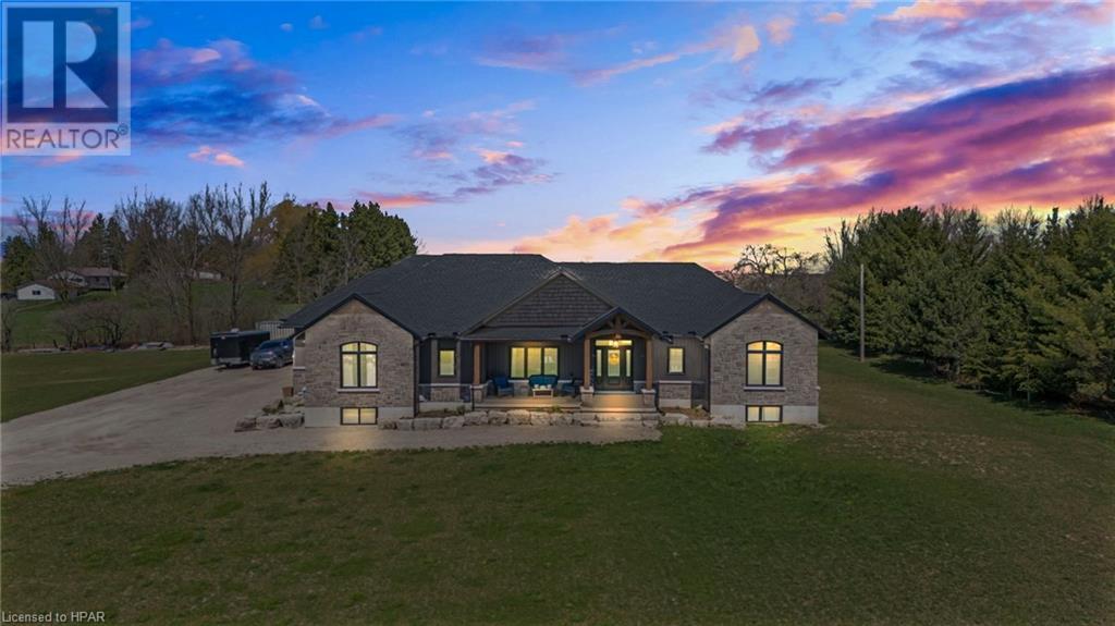 Welcome to 51 Highland Road in the Executive Country Estates minutes from the community of Clifford, Harriston & Mount Forest. This 2 Year New Bungalow is nestled amongst one of the most desirable country neighbourhoods in Minto where you can enjoy peaceful country living while having the security of neighbours nearby for social engagements and peace of mind. The timber frames, porch and stunning stone accentuate the true and charming beauty of this 3+2 bedroom, 2+ bath home. Vaulted ceilings, luxury flooring, stunning stone fireplace, massive island, quartz countertops and custom kitchen cabinetry all flooded with natural light are just a few of the finishes that will be sure to impress you from the moment you step inside. The remainder of the main floor of this open concept home is finished with a large primary bedroom featuring walk-in closet and luxurious ensuite with double sinks, walk in shower & soaker tub; laundry, 2 additional bedrooms, 5 pc bath and endless storage. Add in some flooring and trim to the basement and double your living space. With access and mud rooms from your MASSIVE attached garage to the lower level and main level of the home you can easily use this home for multigenerational living. Let's not forget about the sprawling almost 2 acres of land including a secluded wooded section, covered back trex deck & concrete patio and the handy-person or toy collectors dream: The Garage - with 12' ceilings, trusscore interior, in-floor heat, bathroom, wiring for your welder AND travel trailers and 11'x16' & 10'10 OverHead Doors, what more could you ask for?! A Home Like This Doesn't Come Along Often, Call Your REALTOR® Today To View What Could Be Your New Country Estate Home, 51 Highland Road, Minto. (id:22211)