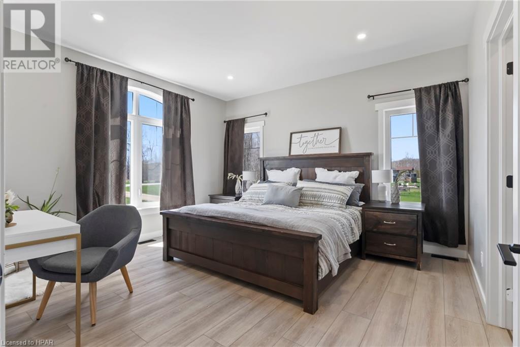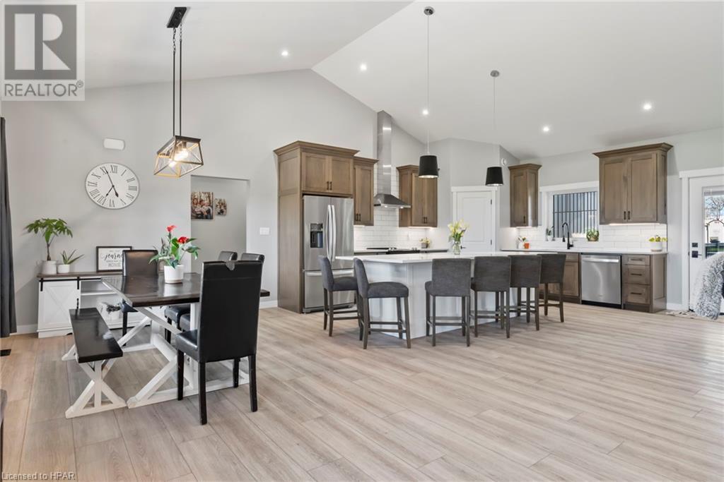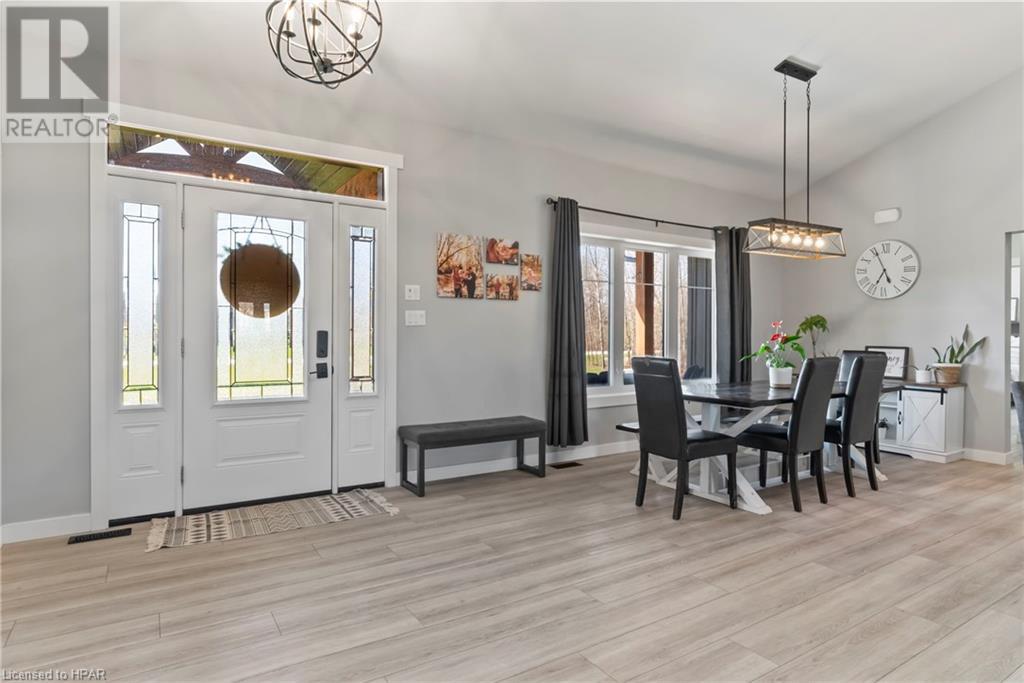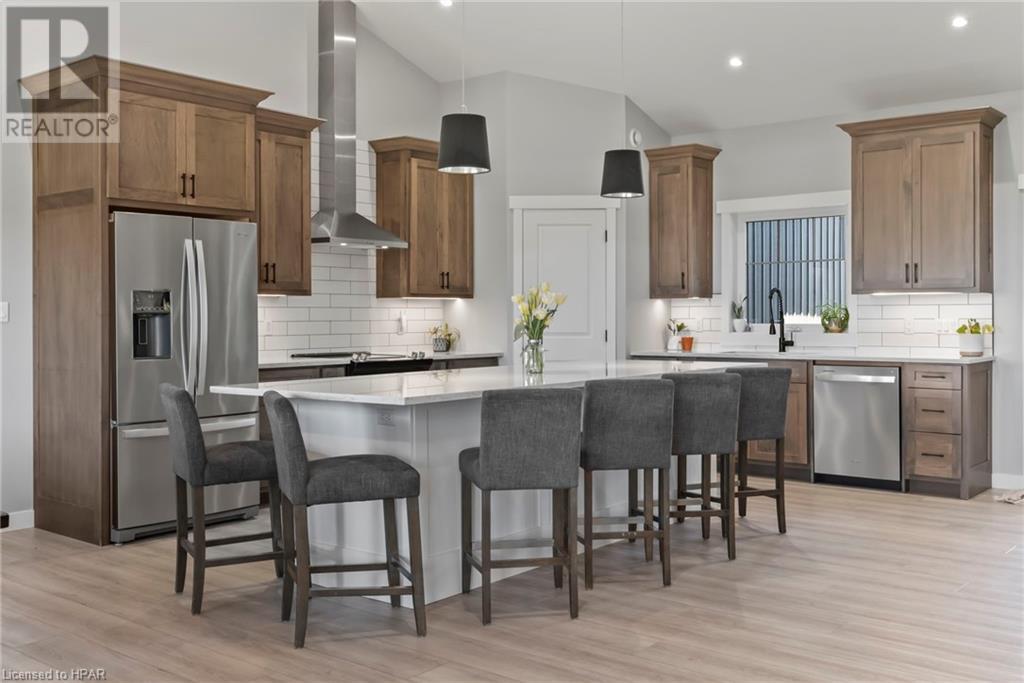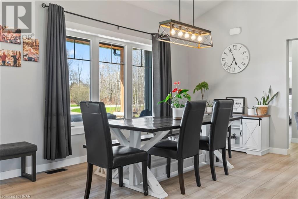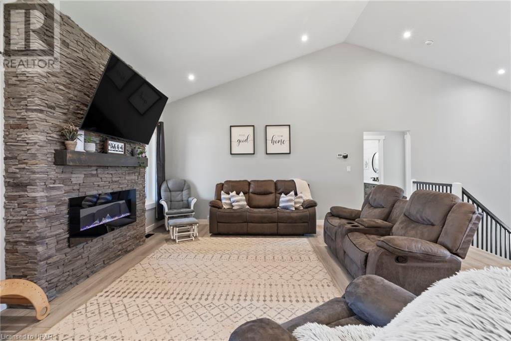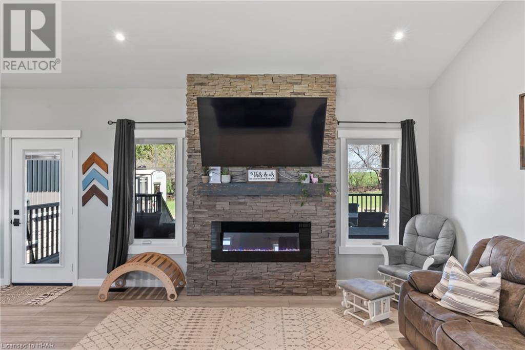 Welcome to 51 Highland Road in the Executive Country Estates minutes from the community of Clifford, Harriston & Mount Forest. This 2 Year New Bungalow is nestled amongst one of the most desirable country neighbourhoods in Minto where you can enjoy peaceful country living while having the security of neighbours nearby for social engagements and peace of mind. The timber frames, porch and stunning stone accentuate the true and charming beauty of this 3+2 bedroom, 2+ bath home. Vaulted ceilings, luxury flooring, stunning stone fireplace, massive island, quartz countertops and custom kitchen cabinetry all flooded with natural light are just a few of the finishes that will be sure to impress you from the moment you step inside. The remainder of the main floor of this open concept home is finished with a large primary bedroom featuring walk-in closet and luxurious ensuite with double sinks, walk in shower & soaker tub; laundry, 2 additional bedrooms, 5 pc bath and endless storage. Add in some flooring and trim to the basement and double your living space. With access and mud rooms from your MASSIVE attached garage to the lower level and main level of the home you can easily use this home for multigenerational living. Let's not forget about the sprawling almost 2 acres of land including a secluded wooded section, covered back trex deck & concrete patio and the handy-person or toy collectors dream: The Garage - with 12' ceilings, trusscore interior, in-floor heat, bathroom, wiring for your welder AND travel trailers and 11'x16' & 10'10 OverHead Doors, what more could you ask for?! A Home Like This Doesn't Come Along Often, Call Your REALTOR® Today To View What Could Be Your New Country Estate Home, 51 Highland Road, Minto. (id:22211)