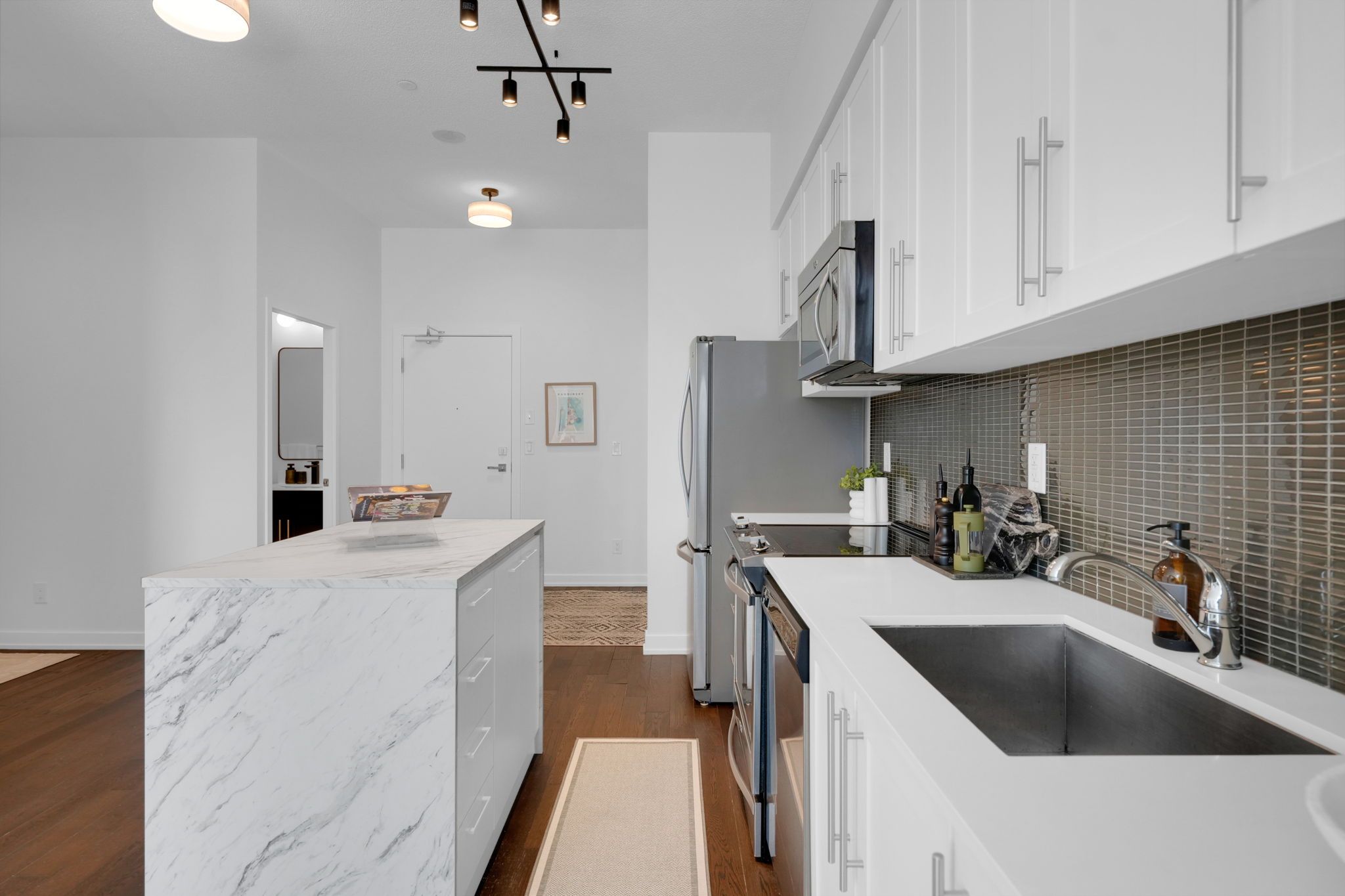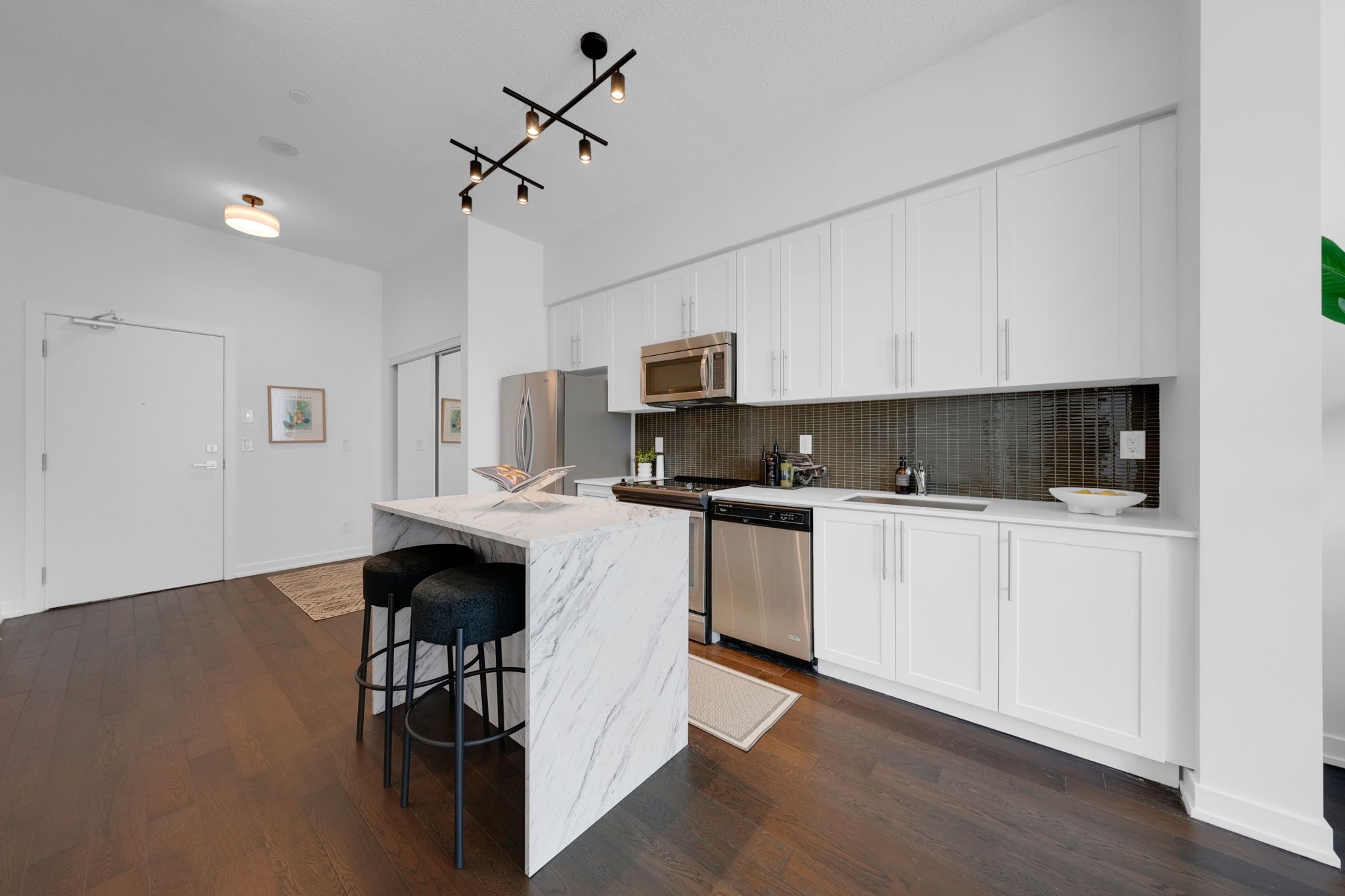歡迎來到4011 Brickstone Mews 312單元,這是一套位於密西沙加市中心核心地帶的精美一居室加書房公寓。這套明亮寬敞的公寓采用開放式布局,擁有9英尺5英寸挑高天花板、工程實木地板以及落地窗。現代廚房配備石英石台面、時尚防濺板、不鏽鋼電器和現代櫥櫃,是烹飪與款待賓客的理想之選。多功能書房可作為居家辦公空間或潛在客房,而水療風格的四件套浴室則以精美裝修為您提供放鬆身心的休憩之所。步入私人陽台,盡覽城市景觀或在忙碌一天後放鬆身心。