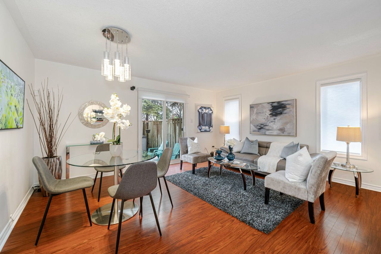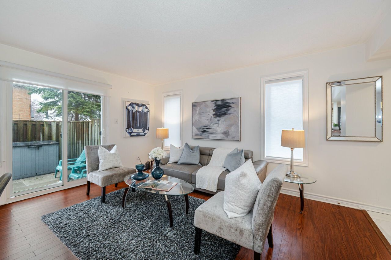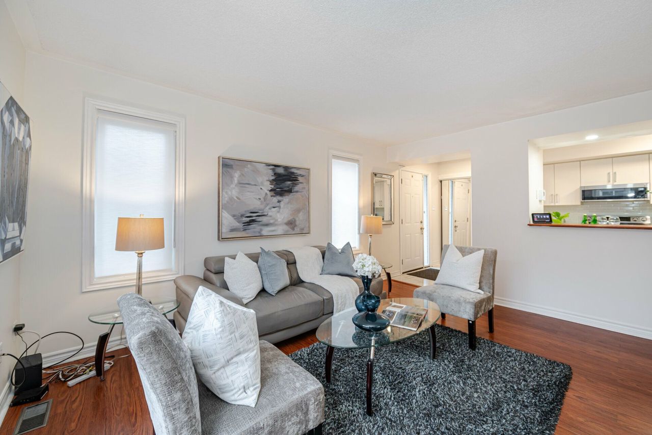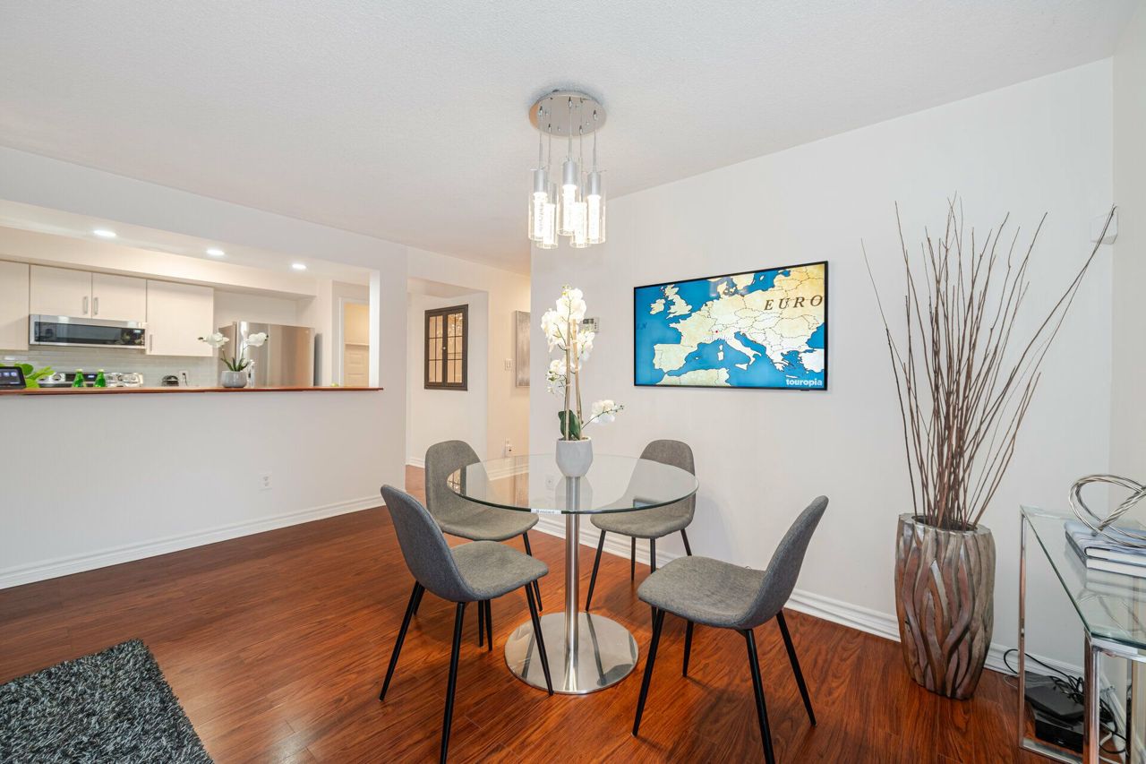 Beautiful upgraded bungalow style 2+1 condo townhome end/corner unit ( stacked townhome) approx 1500 sqft living space ( main level plus bsm w/ office) w/ modern kitchen, quartz countertop, 2 yr old S/S Appliances ( Fridge, Stove, B/I Microwave w/Exhaust & Dishwasher) newer Washer , Dryer ; 2 fully renovated washrooms , This condo townhome is nestled in the Hurontario and Bristol Rd Community, next to future LRT line and features laminate flooring, open concept layout,living room walk out to patio, finished bsmt w/ renovated 3 pc shower ,2 car parking & separate entrance from garage; Great Location! Steps to transit, walk to one of the very good schools (St Francis Xavier Secondary , Elementary Catholic w/ extended french school & public schools; Steps away from Sandalwood Plaza w/ Mcdo, Banks, Salons, etc, Close to Frank McKechnie Community Centre, Square One Mall, place of worship, 403 & 401 Hiways & Highland Farms & Oceans Asian Food Store;S/S Appliances ( 2 yr old fridge, stove, B/I dishwasher, B/I microwave), washer,dryer; reno modern kitchen, quartz countertop, reno washrooms, separate entrance from garage to main & bsmt; All electrical fixtures, window coverings ;