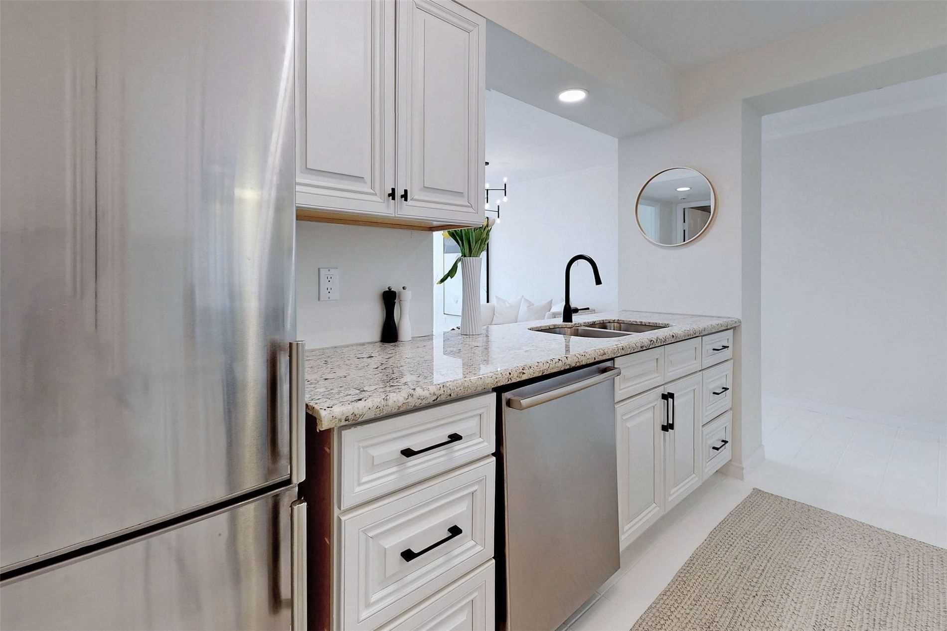 Discover elevated living in this beautifully renovated 690 sq. ft. condo, perfectly positioned in one of Mississaugas most desirable communities. Featuring a stylish open-concept layout, this sun-filled suite is designed for both comfort and sophistication, with floor-to-ceiling windows framing breathtaking, unobstructed views of the city skyline.The custom contemporary kitchen is a chefs dream, equipped with sleek granite countertops, modern stainless steel appliances, pot lights, upgraded light fixture, and a large passthrough window that keeps the space bright and connected to the living area. Freshly painted in timeless neutrals with smooth ceilings (no popcorn!), this home is move-in ready and effortlessly elegant. The spacious bedroom offers a double-door closet and stunning floor-to-ceiling windows, providing peaceful views and abundant natural light. The spa-like bathroom has been fully upgraded with elegant porcelain tiles, a modern vanity, hand-selected designer wallpaper, and gold hardware for a refined touch.More than just a condo, this residence offers a lifestyle, enjoy your morning coffee or evening wine while soaking in panoramic views from your living room.Residents enjoy premium amenities including a 24-hour concierge, indoor pool, fully-equipped gym, squash court, landscaped gardens, and more. Walk to shops, dining, parks, and plazas, with easy access to major highways, transit routes, and the upcoming Hurontario LRT just minutes away.This is your opportunity to own a truly special space in a prime location.