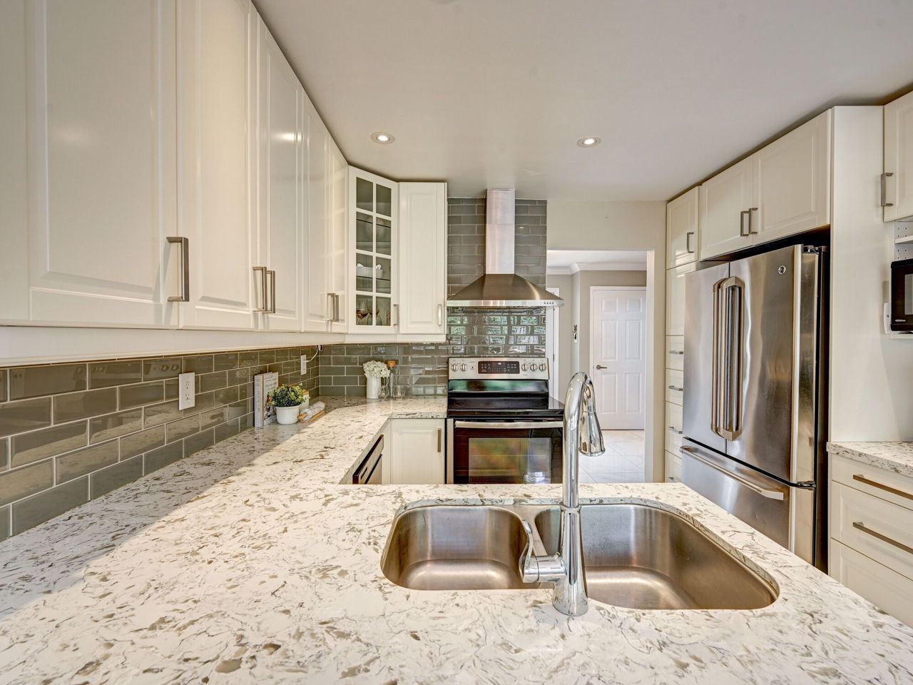 Porcelain Floor Quartz Counter Eat-In Kitchen