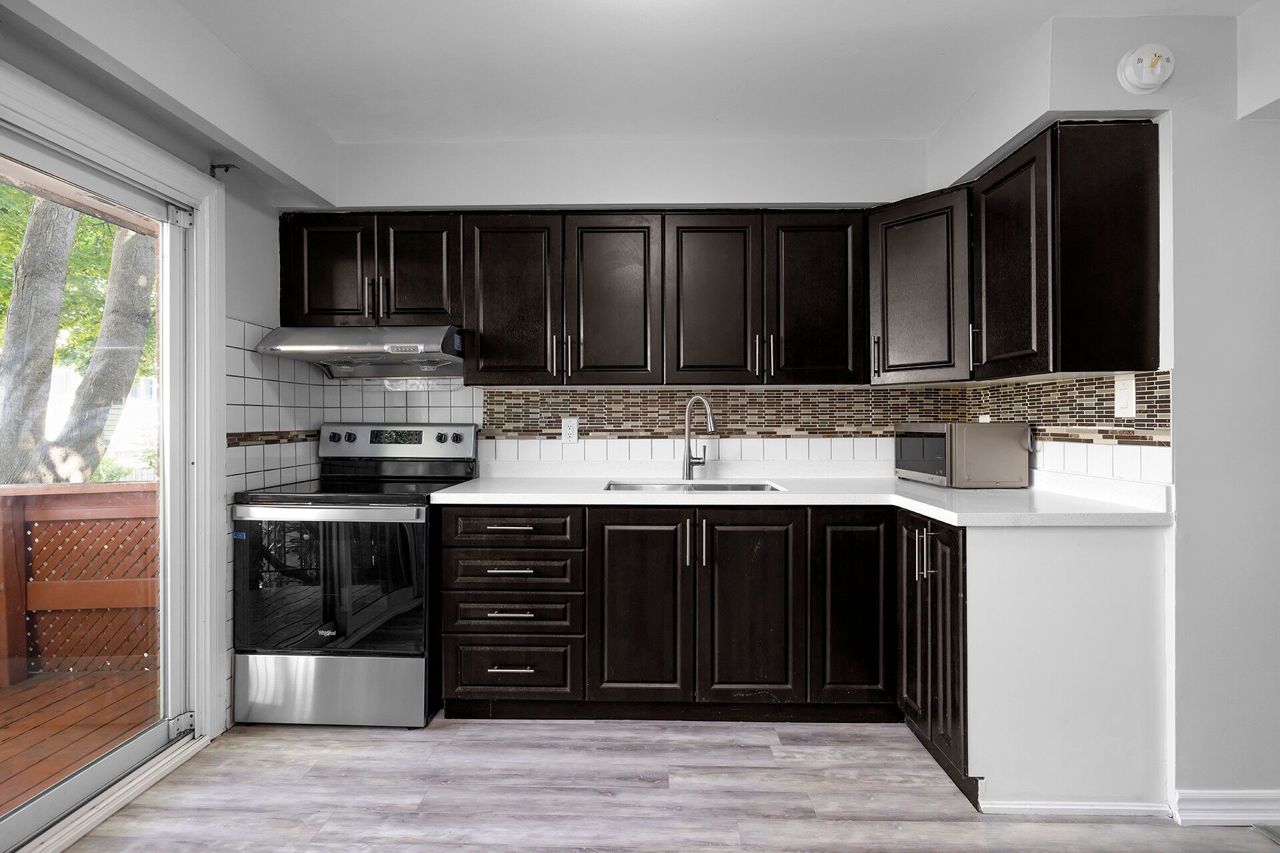 Welcome To This Fully Renovated 3 Bedroom Townhouse with 1 Bedroom Finished Basement Apartment with separate entrance. Perfect for first time Home buyers.$40,000 spent In Recent Renovations And Upgrades. Nice Layout Features Separate Living And Dining Rooms. Brand New Stainless Steel Appliances & upgraded Quartz countertop In Kitchen With Walkout To Deck And Backyard. Freshly Painted, Newly Upgraded Vinyl Floor throughout the house. New Vanities and Toilets are installed in all the Washrooms. Hot Water Tank(2020) & Furnace Is Owned . Basement is currently rented for $950. Walking Distance To Westwood mall, Close to All Major Highways,427, Toronto Downtown, And Bus Terminal.