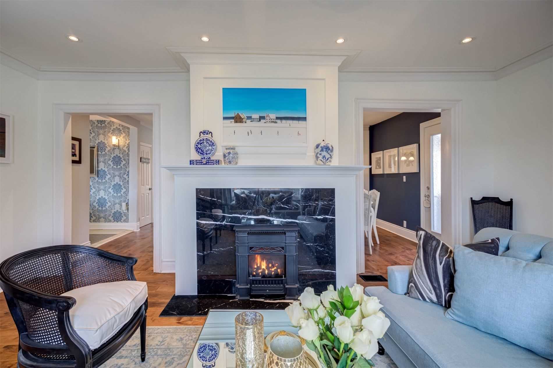 Gas Fireplace Large Window Hardwood Floor