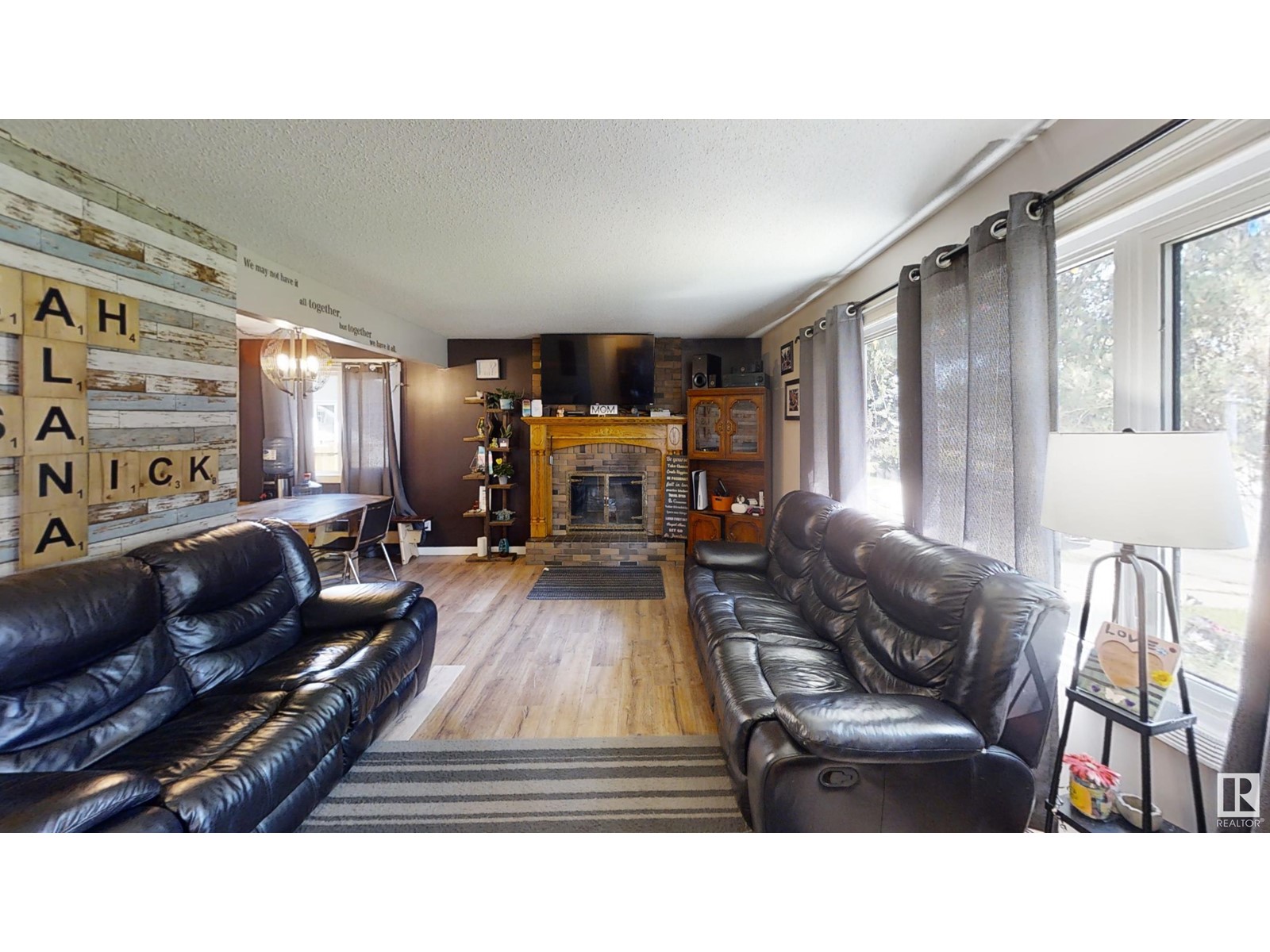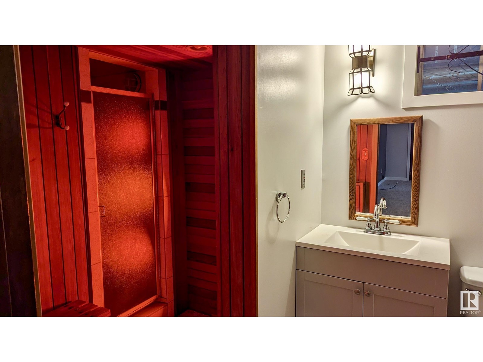 Marvelously made in Morinville! You'll fall in love with this super spacious well laid out 1760 sq.ft. 3+1 bedroom bungalow located on a quiet cul-de-sac. You'll notice it is a larger lot with a west facing backyard. It has a nice upgrades like the kitchen, vinyl windows, carpet, high efficiency furnace and much more. Besides a 4 piece main bath and 3 pce basement bath, the home offers an ensuite off the master bedroom. Come enjoy the fully finished basement with sauna and then cool of with some A/C! It features an oversized 24x24 Garage plus a 26x19 solarium with heated tile floor. Great value at incredibly affordable prices!! (id:22211)