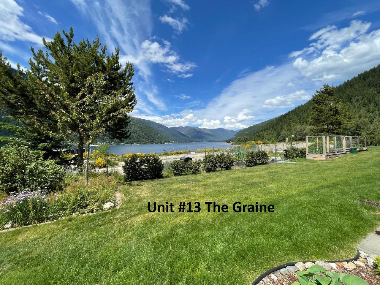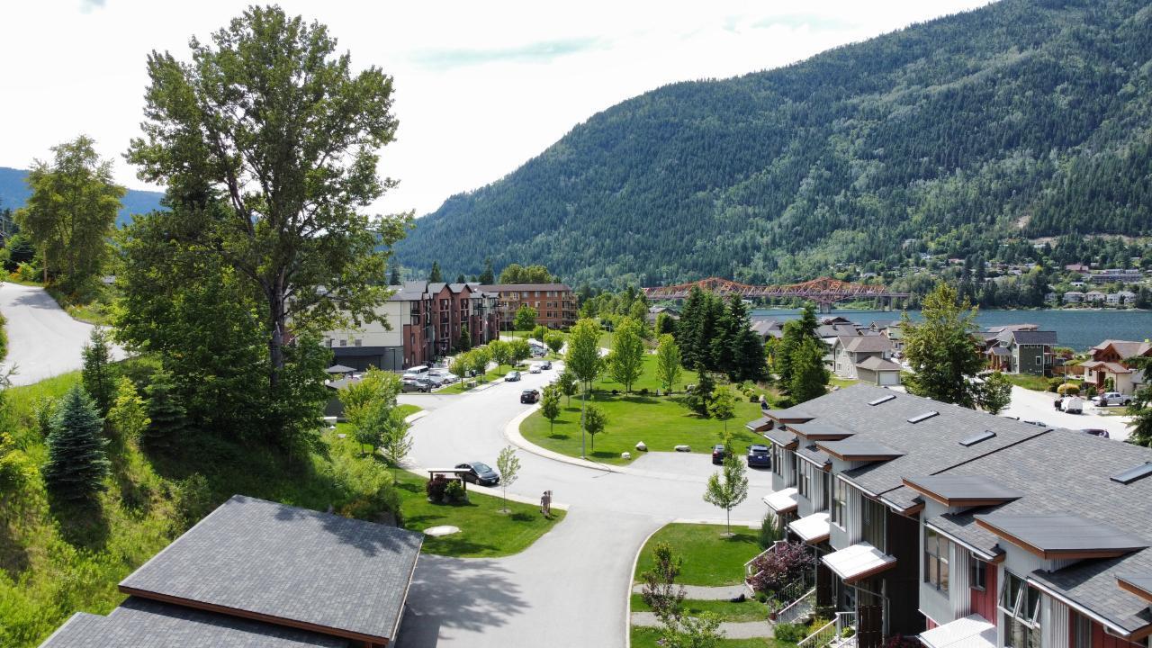Enjoy beautiful Kootenay lake views from this 3-bedroom, 3-bathroom townhome located in The Graine. This thoughtfully designed home was constructed in 2010. The homes in this complex are highly coveted. They are conveniently located close to Walking Trails, Lakeside Park, and Coffee Shops. In the front, there is a single carport with a storage unit for your exclusive use. Out back is a private deck with BBQ hookup that is the perfect place to relax or entertain in the summertime. The grounds are well maintained and if you like, there is also an area for you to plant a vegetable garden. Inside the home, the main floor features 9-foot-high ceilings, bamboo flooring, a gas fireplace, and a natural gas stove in the kitchen. The bamboo floors continue throughout the upper level where you will wake up each morning to those incredible lake views. (id:22211)