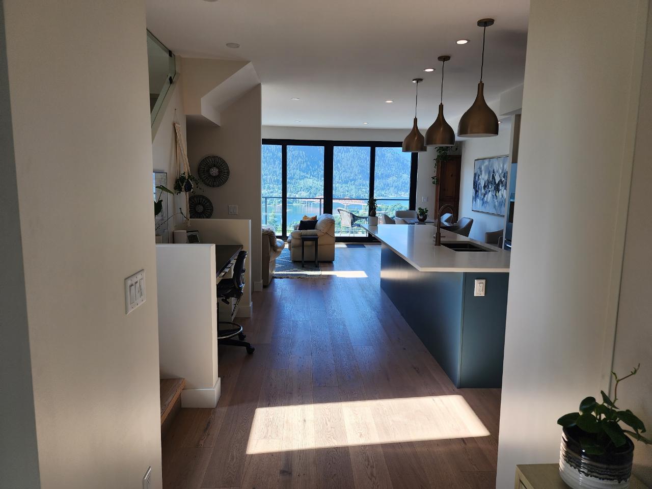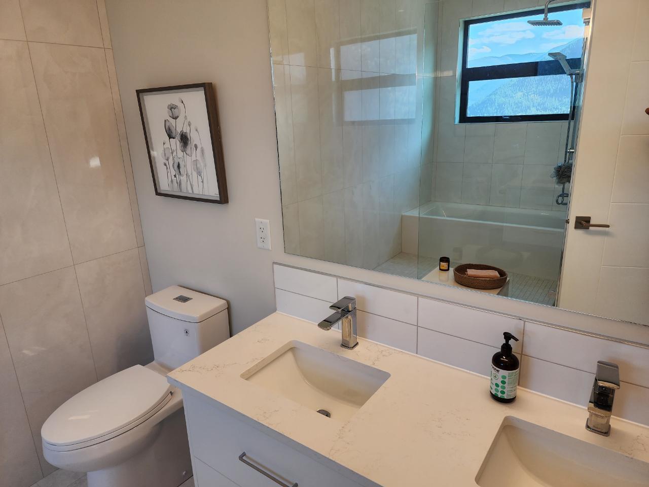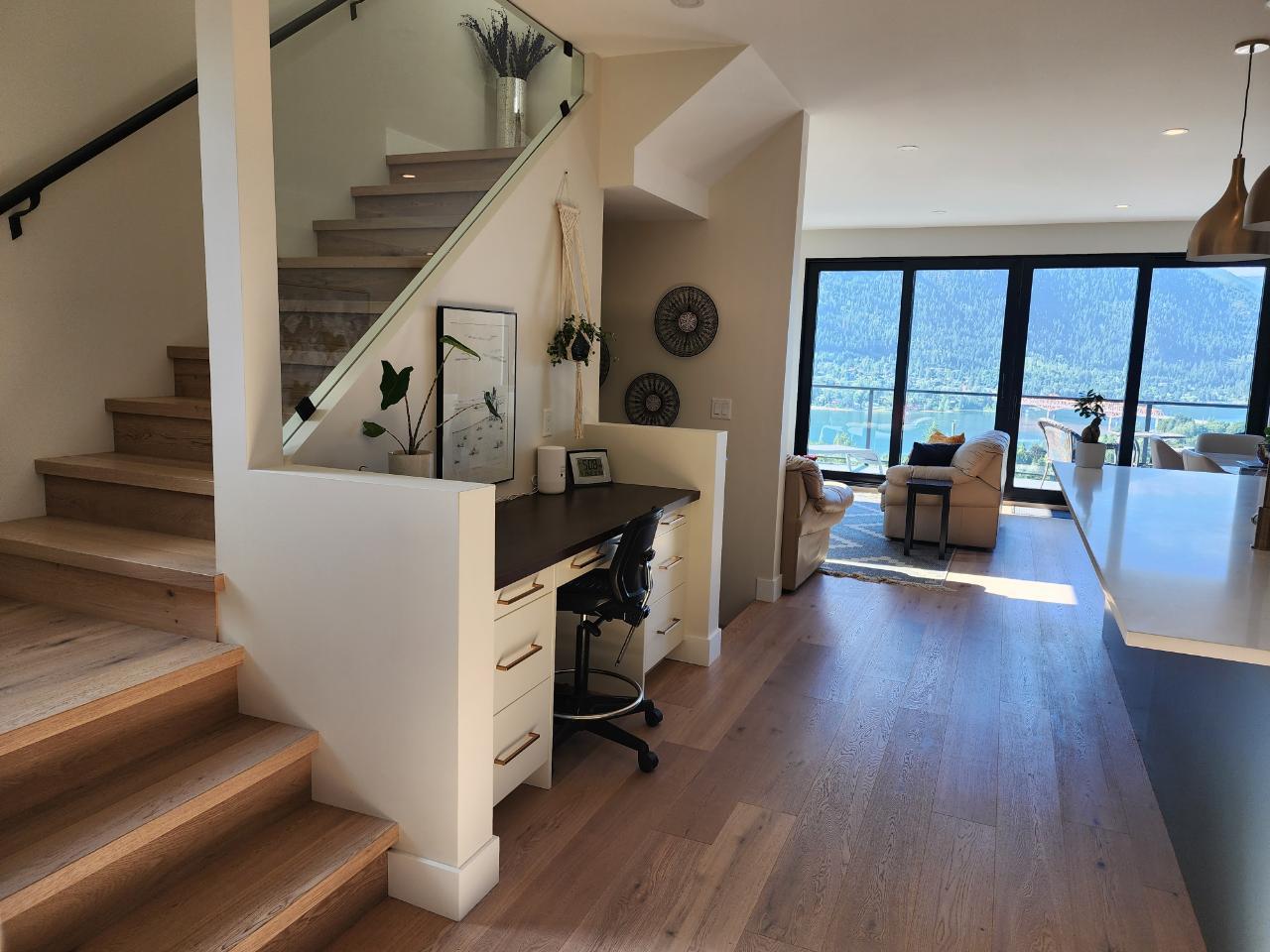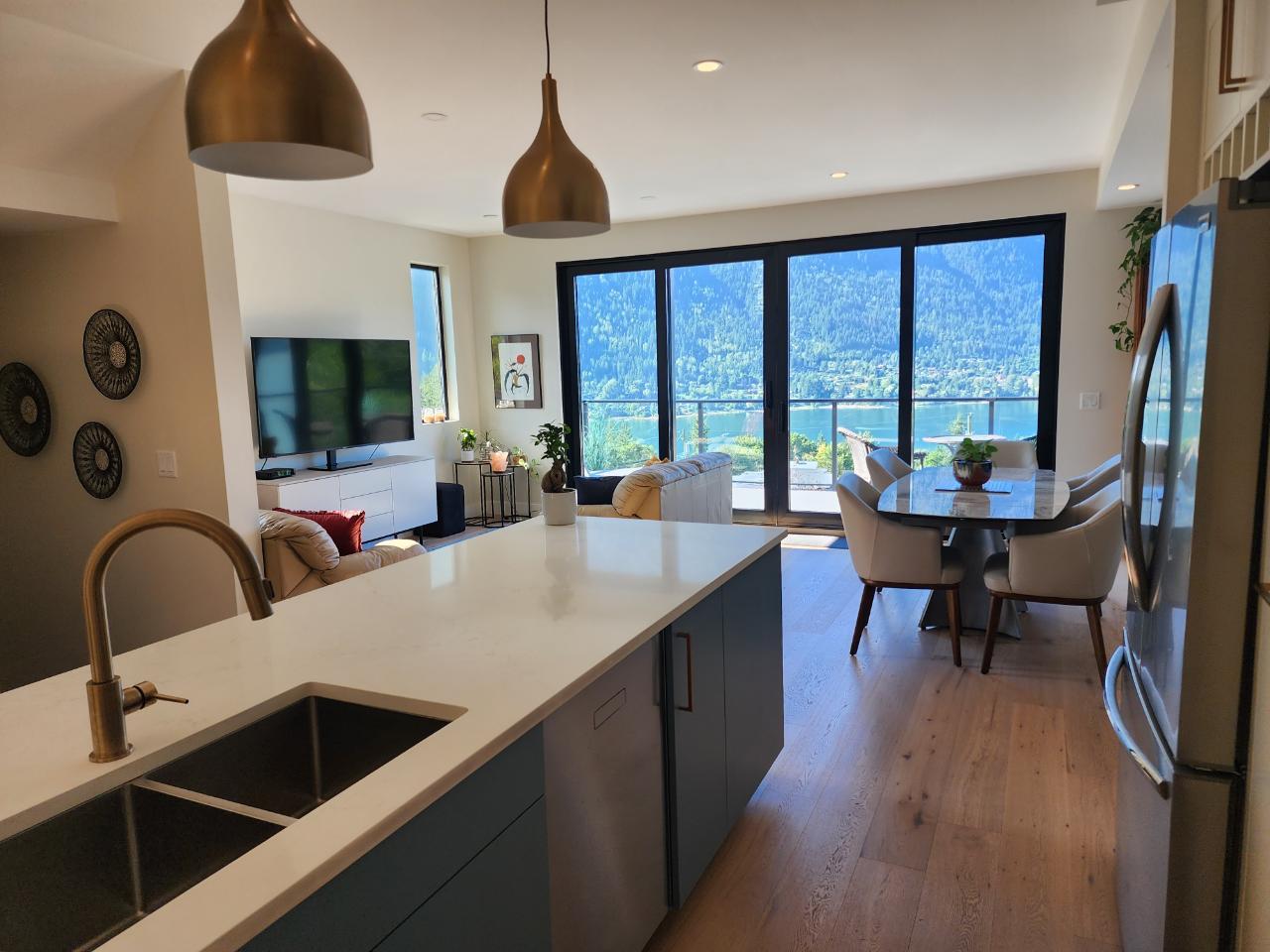 This exquisite home, built in 2022, offers awe inspiring panoramic views! The large windows provide lots of natural light and deliver those spectacular, unobstructed views throughout this thoughtfully designed home. Open the large glass doors and create a seamless transition from indoor and outdoor living. The kitchen is a chef's delight, featuring sleek quartz countertops, stainless steel appliances and a natural gas stove. This home provides a serene environment with ample privacy and tranquility. From the moment you step inside this 3-bedroom, 3-bathroom gem you'll be greeted by luxury. The living space boasts stunning engineered hardwood floors, and a heated tile entry. But its not just elegance that this home offers. The quality construction extends beyond aesthetics and is continuous throughout this Step 4 building, providing you with an energy efficient home that is prepared for tomorrow. The mechanical systems include both an NTI Cambi gas furnace and a Bosch heat pump that runs as the primary heat source in the cooler months and provides A/C to keep you cool in the Summer. The NTI Cambi provide domestic hot water and in-floor heating throughout the basement and double car garage. Speaking of heated floors, you can forget about shoveling snow as your driveway and walkway are also heated. And don't forget Location, Location, Location! Imagine living within easy walking distance to downtown, where you can explore charming shops, dine at fabulous restaurants, and immerse yourself in the vibrant community of Nelson. (id:22211)