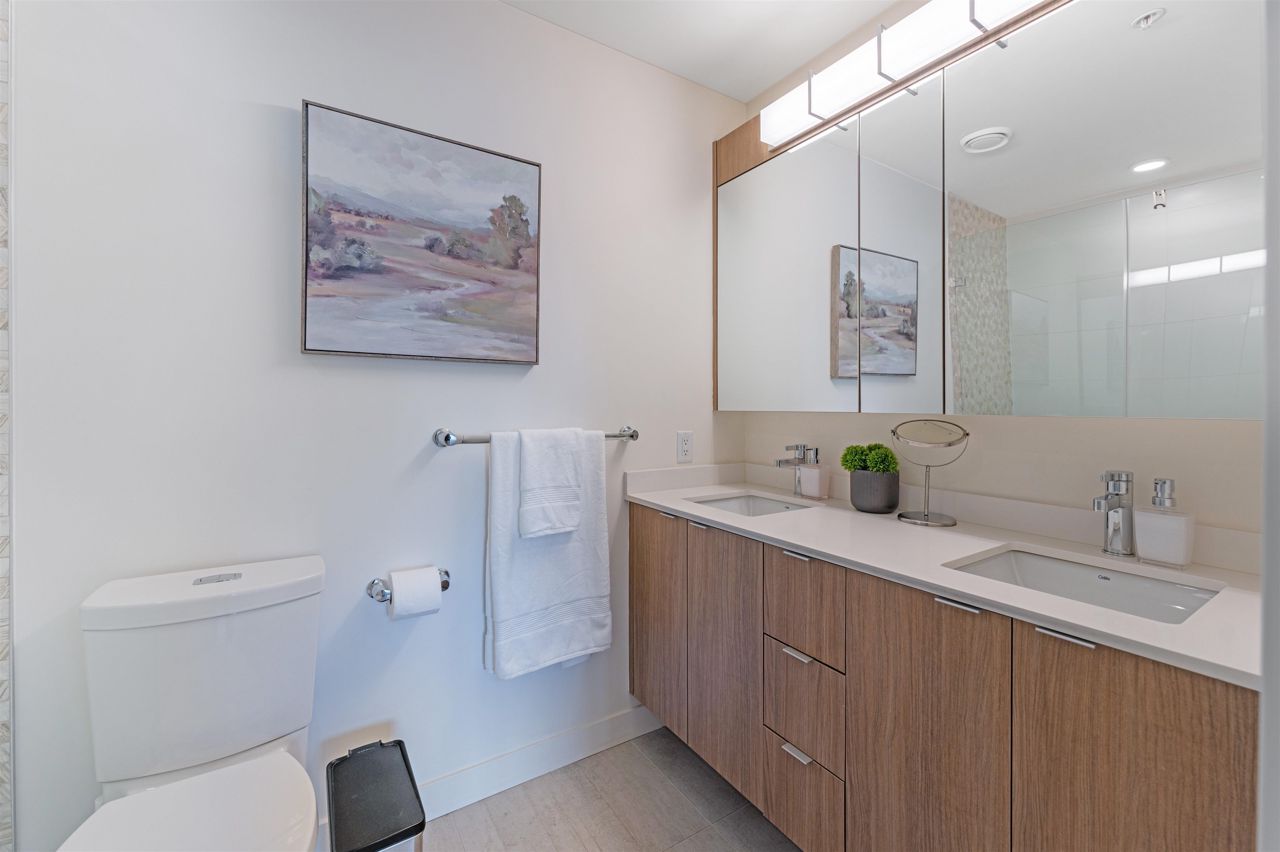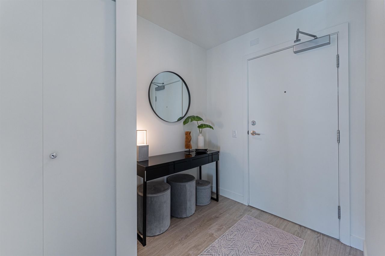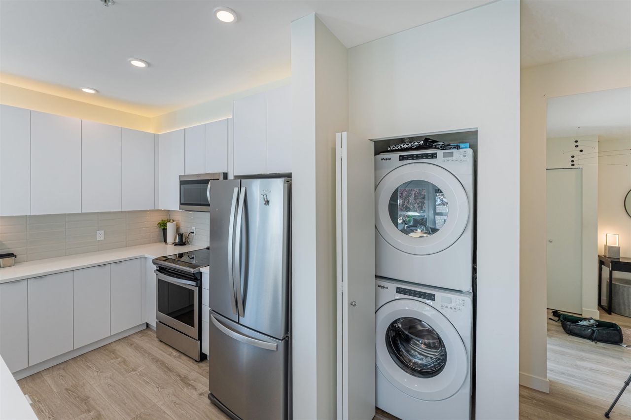 Welcome to Amira in Vibrant Uptown New Westminster! This Modern 2 bed, 2 bath 939 sq ft CORNER UNIT Feels Like Home & Boasts an Open Layout with Bdrms on Opposing Sides. This Home is Flooded w/Natural Light, Has a Large Balcony, & Fuses Design & Comfort to Create the Perfect Living Space. Highlights Include Quartz Counters, Whirlpool Appliances, Polished Chrome Finishes, Premium Laminate Floors, & Spacious Closets w/Built-in Shelving. Take in the 360 Degree Views While Relaxing on the Communal Rooftop Terrace that Spans the Footprint of the Building! Features Include Landscaped Gardens, Lounge, BBQ & Children's Play Areas. Enjoy Walking to Moody Park, Shopping, Dining & Transit with a 84 Walk Score. Balance of 2-5-10 Warranty. Book Your Showing Appointment Today! OPEN HOUSE SAT & SUN 1-3