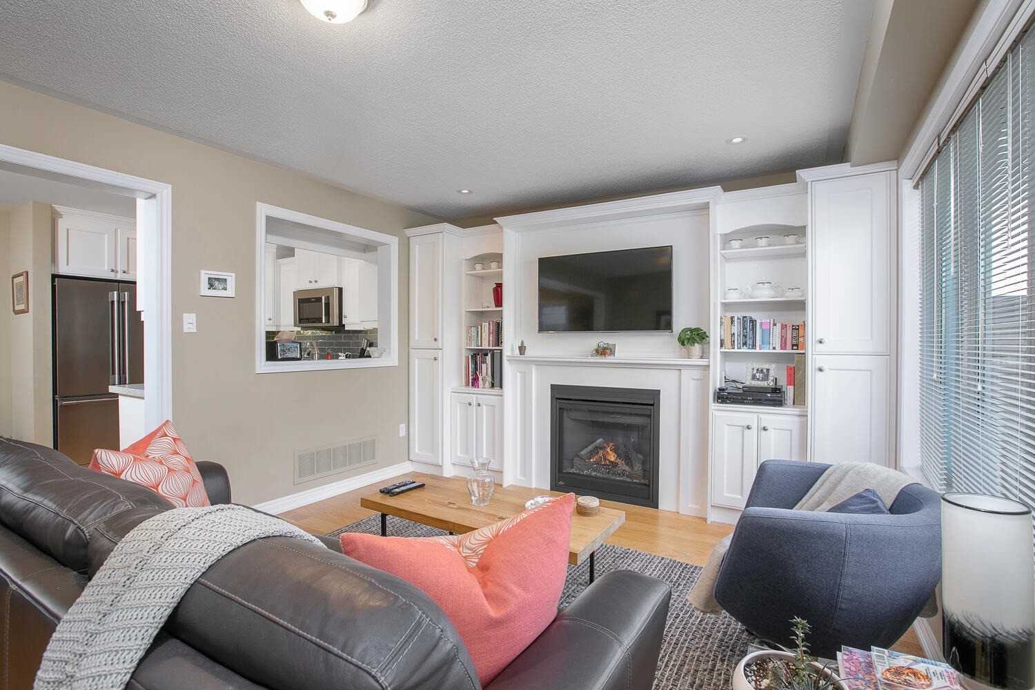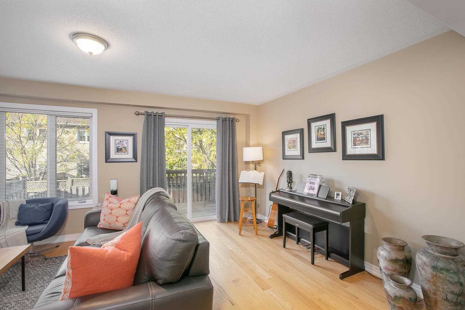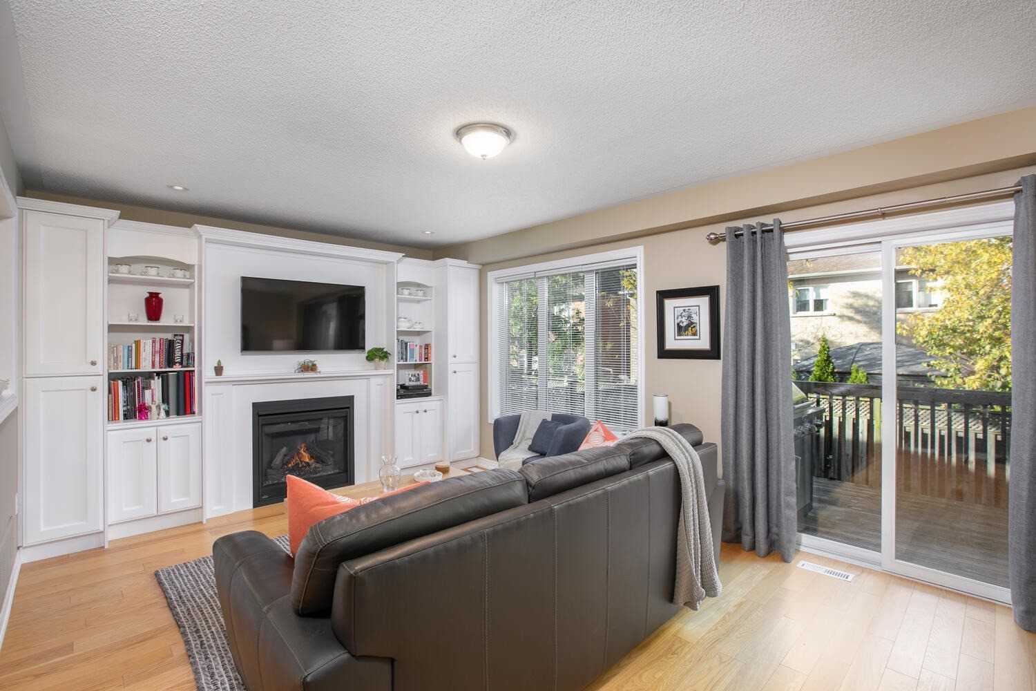 Gas Fireplace W/O To Deck Hardwood Floor