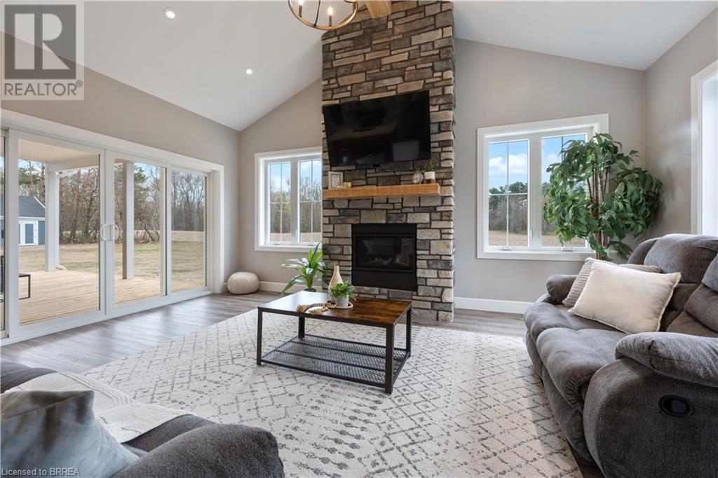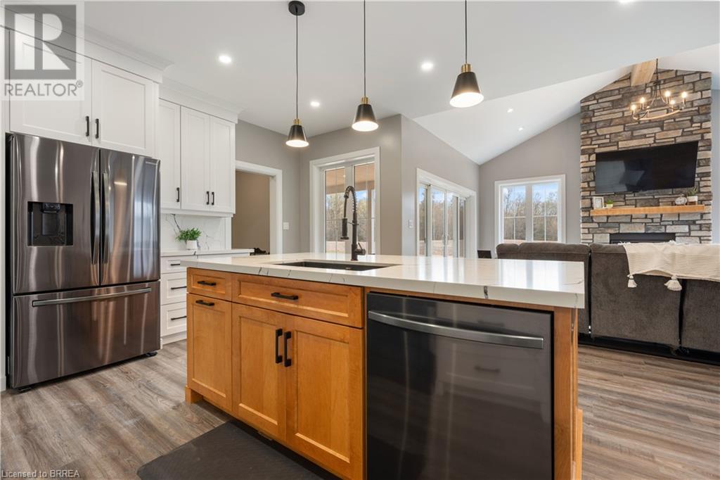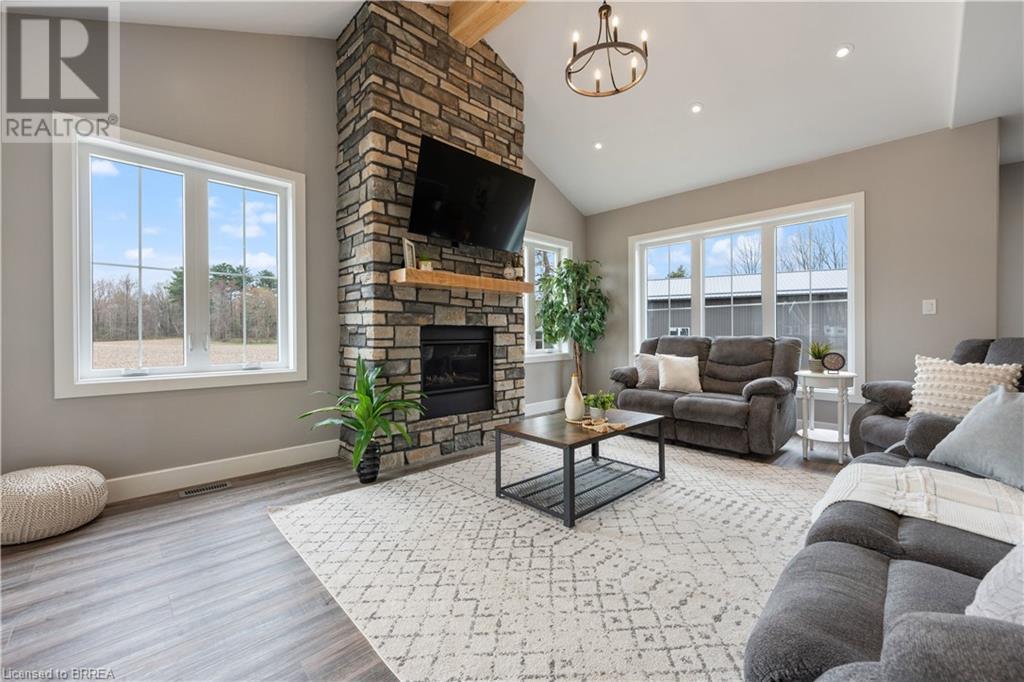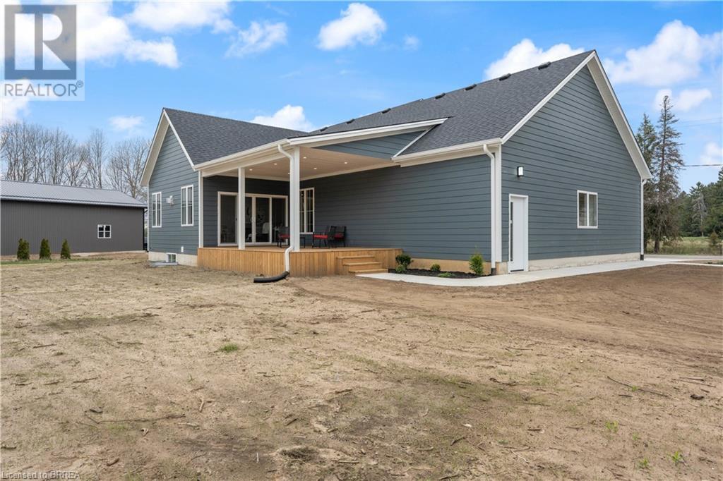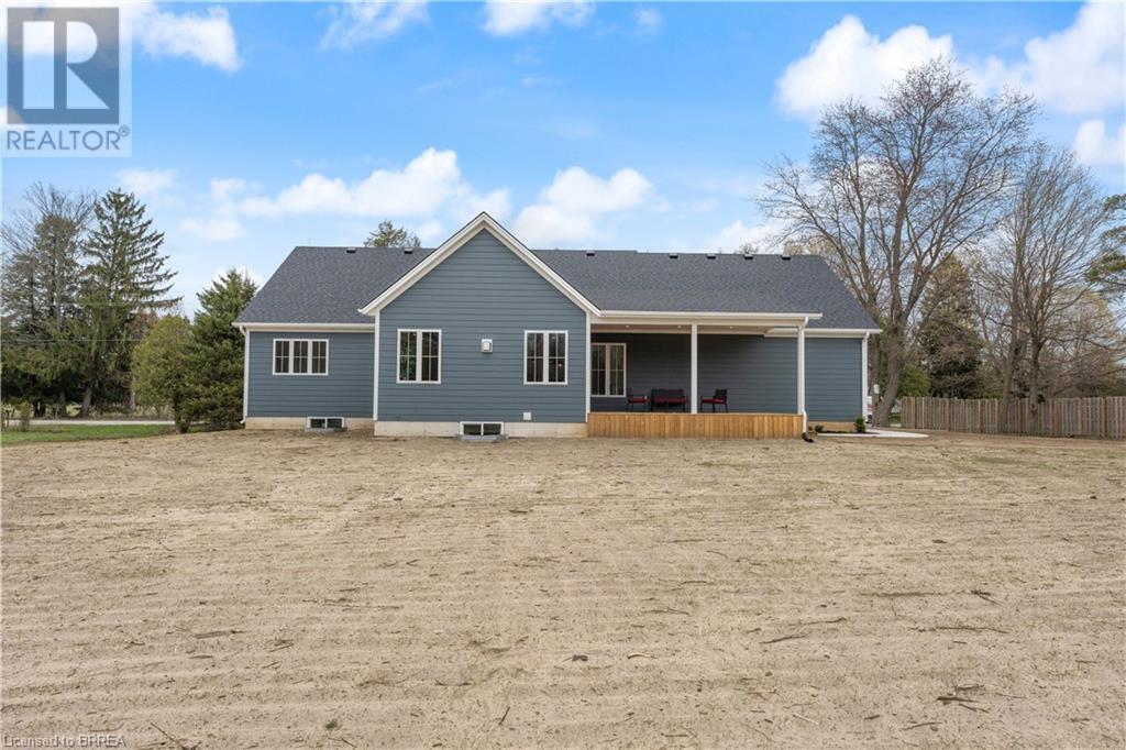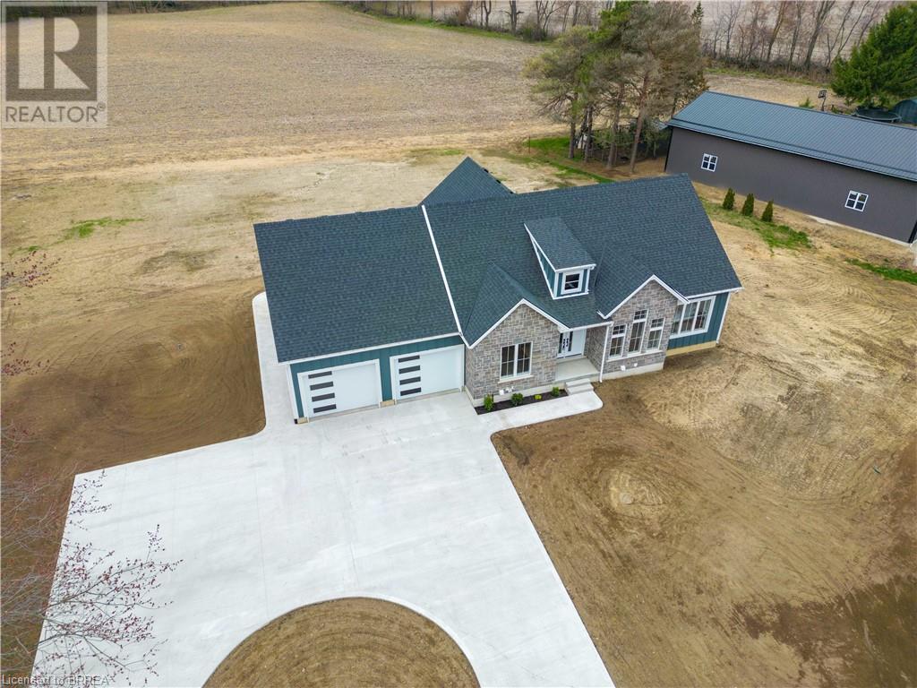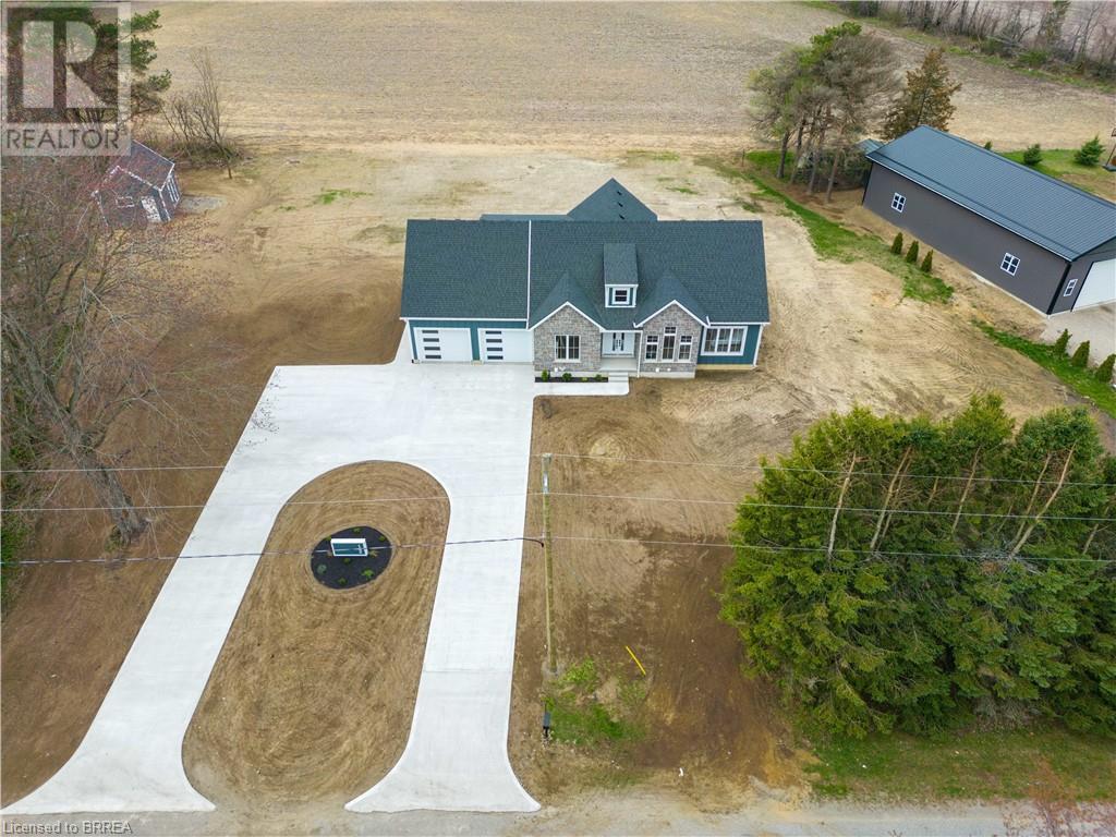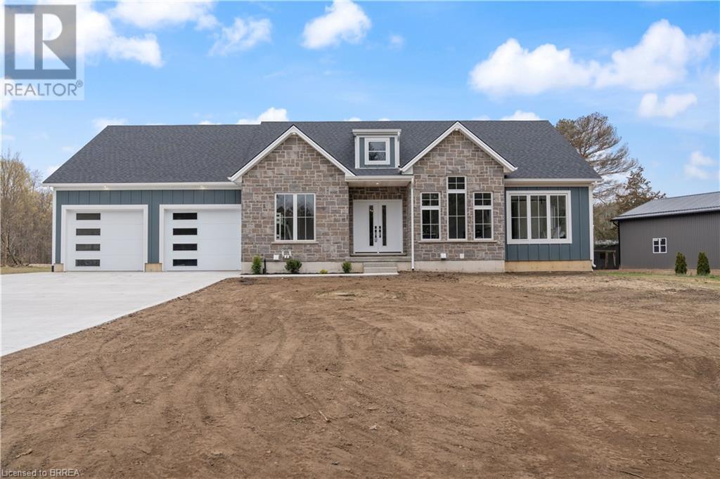 This eye-catching property will immediately capture your attention, situated on 0.83 acres and boasting a serene rural setting that should not be missed. Leading you to the entrance of this home is a brand new semicircular concrete driveway completed in April 2023. Inside, a spacious foyer welcomes you, showcasing modern design and high-quality upgrades throughout. The family room features a vaulted ceiling and a stylish floor-to-ceiling gas fireplace that serves as the focal point of the room, surrounded by windows and a sliding door, natural light floods this space. An open-concept layout with hand-scraped vinyl plank flooring connects the family room to the dining area and kitchen, where extended cabinets reach up to beautiful crown mouldings while the stone countertops continue up the backsplash, creating a luxurious and polished look. The kitchen also features a large walk-in pantry and an elegantly designed island with breakfast bar, completing the kitchen to perfection. Moving further into the home, the primary bedroom is bathed in light and guides you into the spa-like ensuite with exquisite modern tile, double closets, an enclosed glass shower, and a freestanding tub. The unfinished basement with rough-in is ready for your creative ideas to come to life. Other upgrades include an insulated main floor laundry room for quiet laundering and garage in-floor heating and re-line. Outside, you can relax and enjoy the peacefulness of this exceptional property and kick back on the 20x14 covered back porch, featuring tongue and groove construction. This home will be hard to beat, so don't miss your chance to call it home. (id:22211)