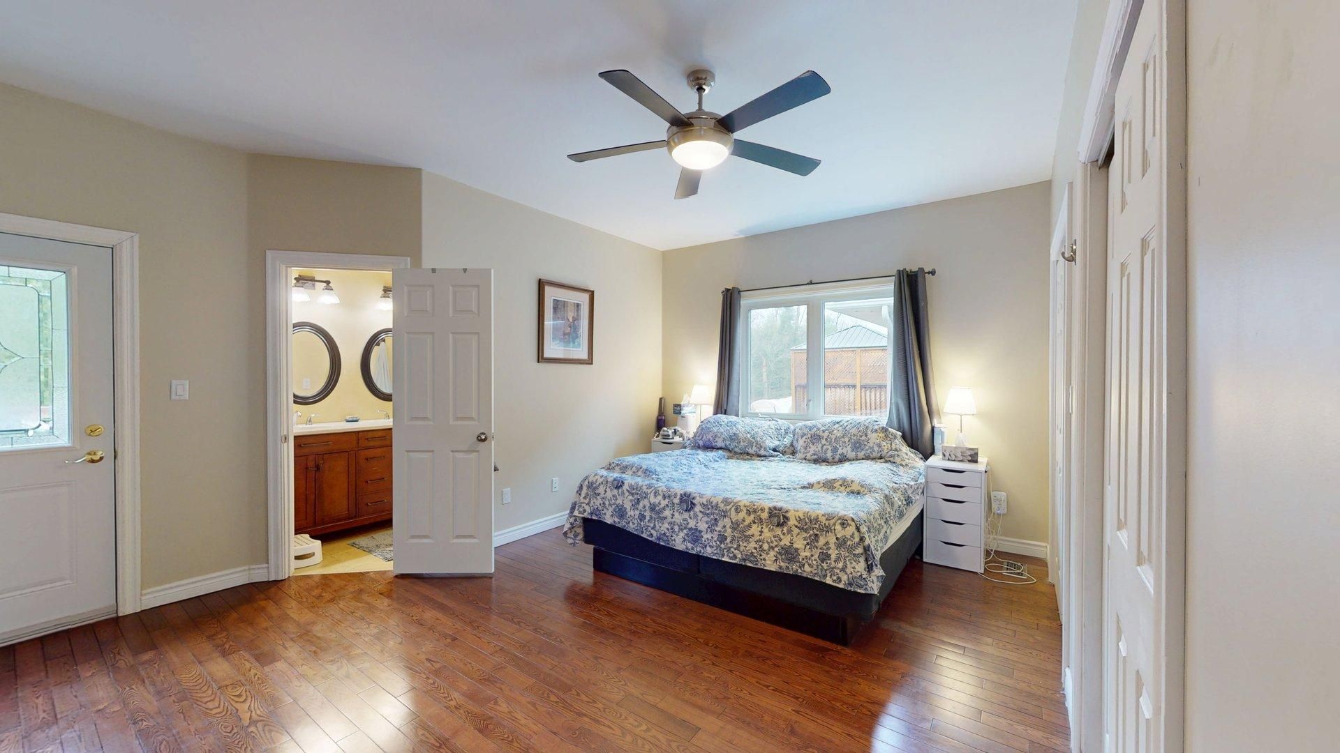 Welcome to this beautifully maintained detached bungalow nestled in a peaceful North Bay neighborhood with no rear neighbors, offering the perfect blend of comfort and privacy. This spacious home features 2 bedrooms on the main floor, including a large primary bedroom complete with a luxurious 5-piece ensuite. An additional 4-piece bathroom serves the main level, which also boasts a bright and inviting living room, dining area, and a well-appointed kitchen with a convenient walk-out to the back deck ideal for outdoor entertaining. Enjoy the warmth and elegance of hardwood floors throughout the main floor living spaces. The finished basement expands your living area with 3 more generously bedrooms, a full bathroom, and a spacious recreation room perfect for family gatherings or a home theatre setup. Additional highlights include a large backyard that backs onto a serene treed area, providing privacy and a natural retreat. This home is move-in ready! Don't miss this incredible opportunity to own a versatile and beautifully finished home in a sought-after North Bay location! natural gas hookup for BBQ, Driveway/Front Walkway done 2021, Built in Microwave 2021, Stove 2021, stainless steel fridge 2021, Additional Insulation (attic) and Raised roof Vents 2021, Gutters & Guards 2021,Custom Blinds 2023 and 3 Exterior Doors 2023
