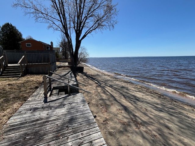 93 Campbell Ave - located on beautiful lakefront property on Campbell Ave. Lot 66x314 with sandy beach, fenced in tennis court at road side on extra large sized lot with lots of possibilities. Beautiful sunsets throughout the year. Double detached carport with garden shed, fenced yard. Good parking. Paved drive and lane. Home is a 1.5 storey lakefront home with spacious livingroom on lakeside with fireplace, to dining area. Hardwood floors. Galley style kitchen leads to sunken family room with hardwood floors and fieldstone fireplace. Den with built in bookcases. Main floor laundry room and 1-3pc bath with roll in shower. Separate entrance with sitting area. 2nd floor has 2 bedrooms with master bedroom plus 1-5pc bath and walk in closet, doors to balcony. Basement has storage, large open space and F/A gas furnace. Home requires updating and renovations. Don't miss out on this hidden gem. Listed $749,900.