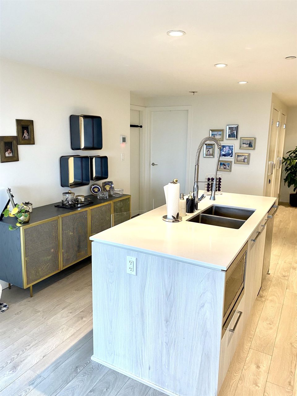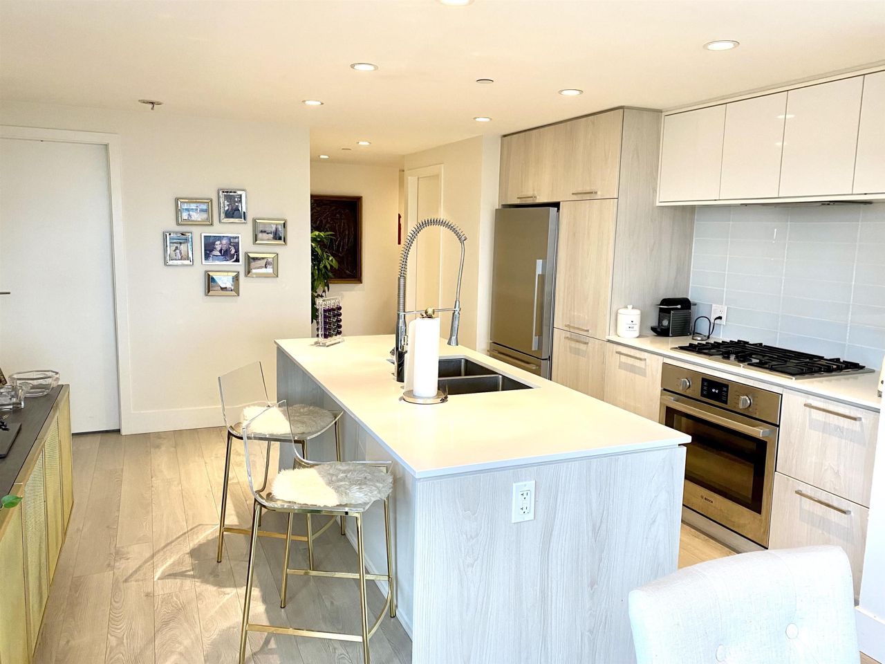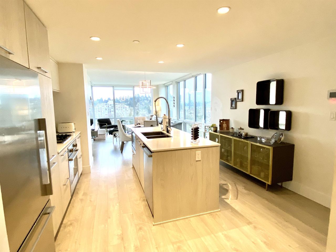Step into luxury living at Compass Tower, North Vancouver’s most versatile location. This unique modern 3 bedroom and a den with full length floor to ceiling triple glazed windows and fully air conditioned (Master bedroom area extra separate A/C unit), viewing beautiful grouse mountain and down town Vancouver. This beautifully designed unit has an open concept floor plan leaving no wasted space. Gourmet Open kitchen with Bosch stainless steel appliances, triple glazed windows and spacious balcony with natural gas BBQ. The unit has two parking spaces and two storages. 14,000 sq ft. Facility at Deanna Club with a large gym, Pool, hot tub, dry sauna, steam room, meeting, office and party room. Live close to schools, major shops, parks, trails and lots of comfort and luxury.