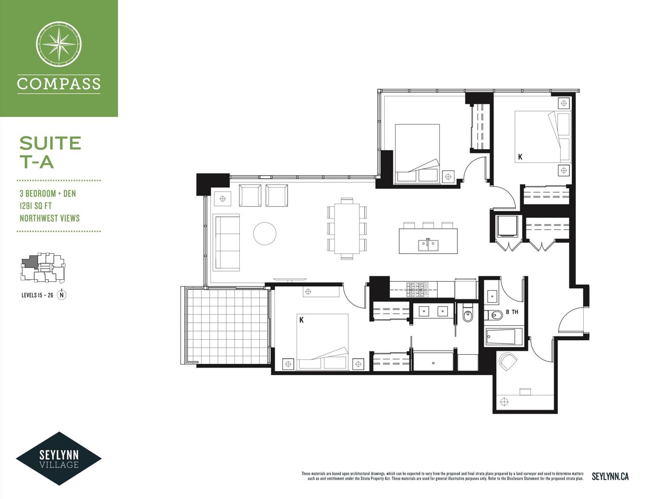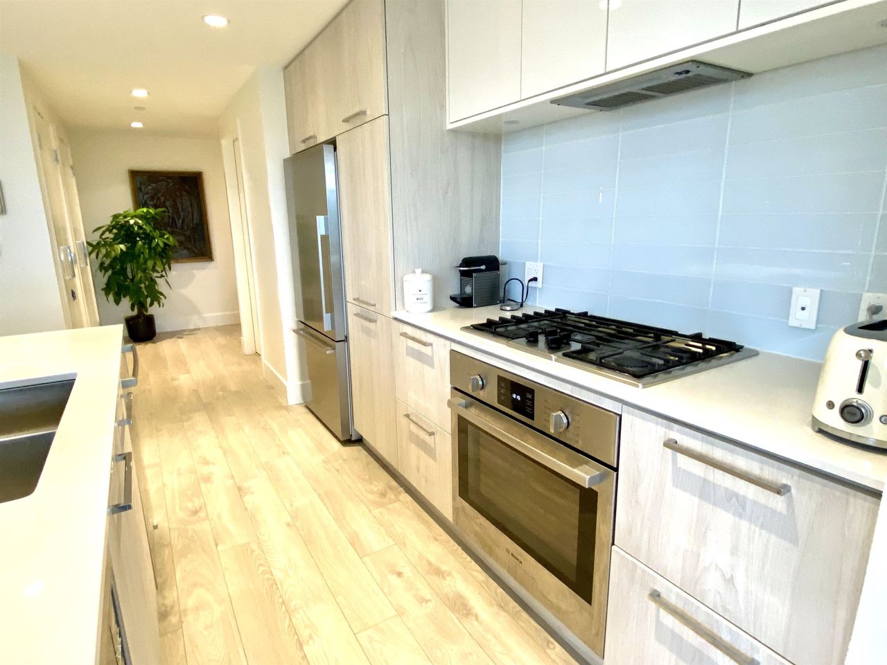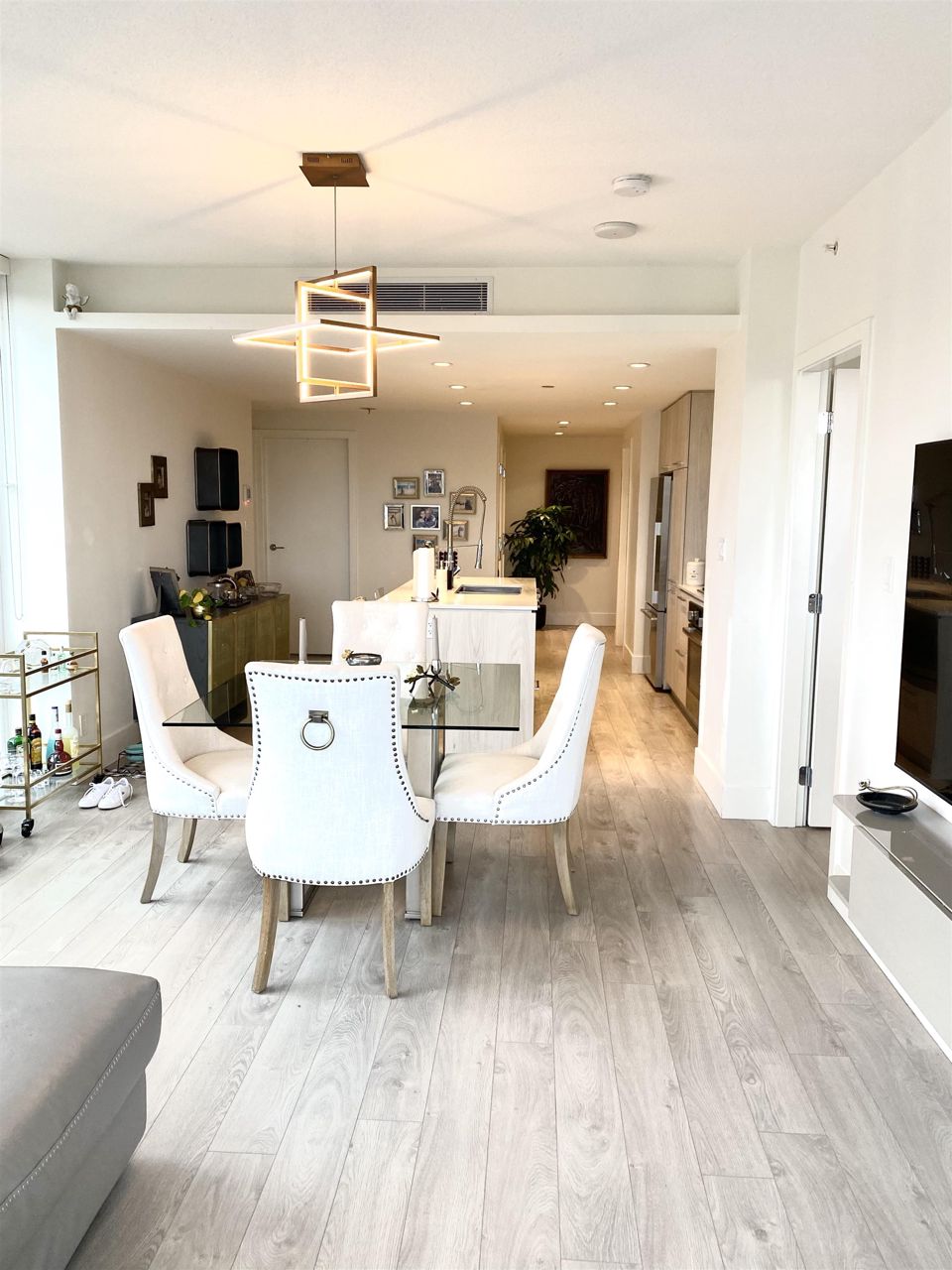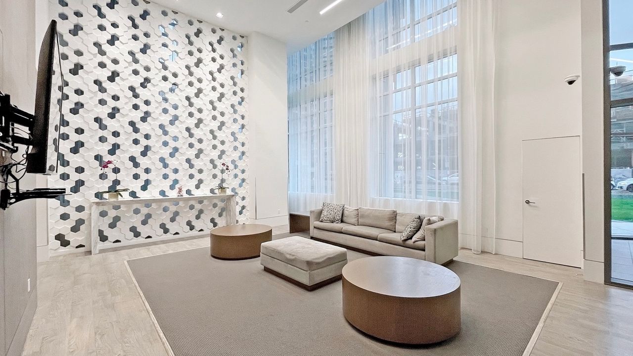 Step into luxury living at Compass Tower, North Vancouver’s most versatile location. This unique modern 3 bedroom and a den with full length floor to ceiling triple glazed windows and fully air conditioned (Master bedroom area extra separate A/C unit), viewing beautiful grouse mountain and down town Vancouver. This beautifully designed unit has an open concept floor plan leaving no wasted space. Gourmet Open kitchen with Bosch stainless steel appliances, triple glazed windows and spacious balcony with natural gas BBQ. The unit has two parking spaces and two storages. 14,000 sq ft. Facility at Deanna Club with a large gym, Pool, hot tub, dry sauna, steam room, meeting, office and party room. Live close to schools, major shops, parks, trails and lots of comfort and luxury.