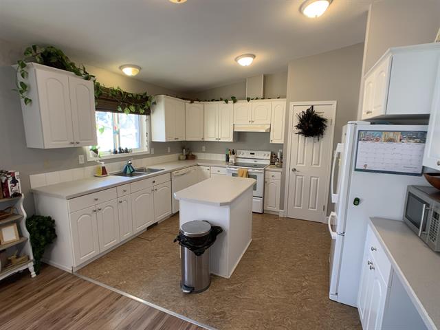 ROOMY RANCHER!! This fantastic 2003 modular home located in Southridge Mobile Home Park offers an abundance of space...all on one floor! The kitchen boasts bright white cabinets, a center island and a large pantry for added storage. Just off the kitchen is a dining room with sliding patio doors leading onto a two tiered deck - perfect for BBQ season! An added bonus in this home is not one but two family living spaces. You'll love the master bedroom with its his and hers closets and ensuite with soaker tub, shower and extra linen storage. At the other end of the home are the two big additional bedrooms. The flooring was updated and walls are a subtle grey tone. Outside, the yard is fully fenced, there is a detached workshop and a separate garden shed. There is even room to park your RV!