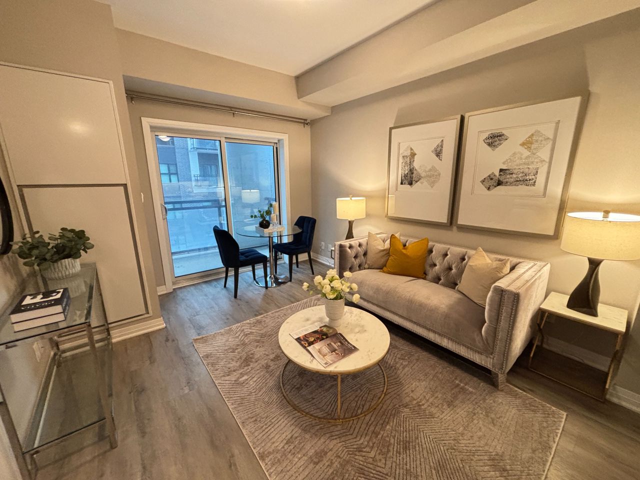 Spectacular Bright, Spacious Mattamy Boutique Condo. This Stunning 3rd Floor 1+1 Suite Features Thru-Out Laminate Flooring, Stainless Steel Appliances, Quartz Kitchen Countertops, Floor To Ceiling Windows, 9Foot Ceilings, Large Bathroom With Glass Shower Enclosed.Generous Closet Space, Spacius Den/Office,Large West Facing Balcony. Unit Comes With Parking & Locker. Best Layout In The Building. Ready ToMoveIn! Great Location,Close To Shopping, Hwys, Schools, Parks, Hospital. Pictures from previous listing.