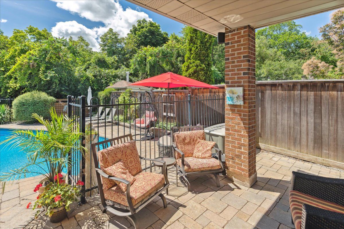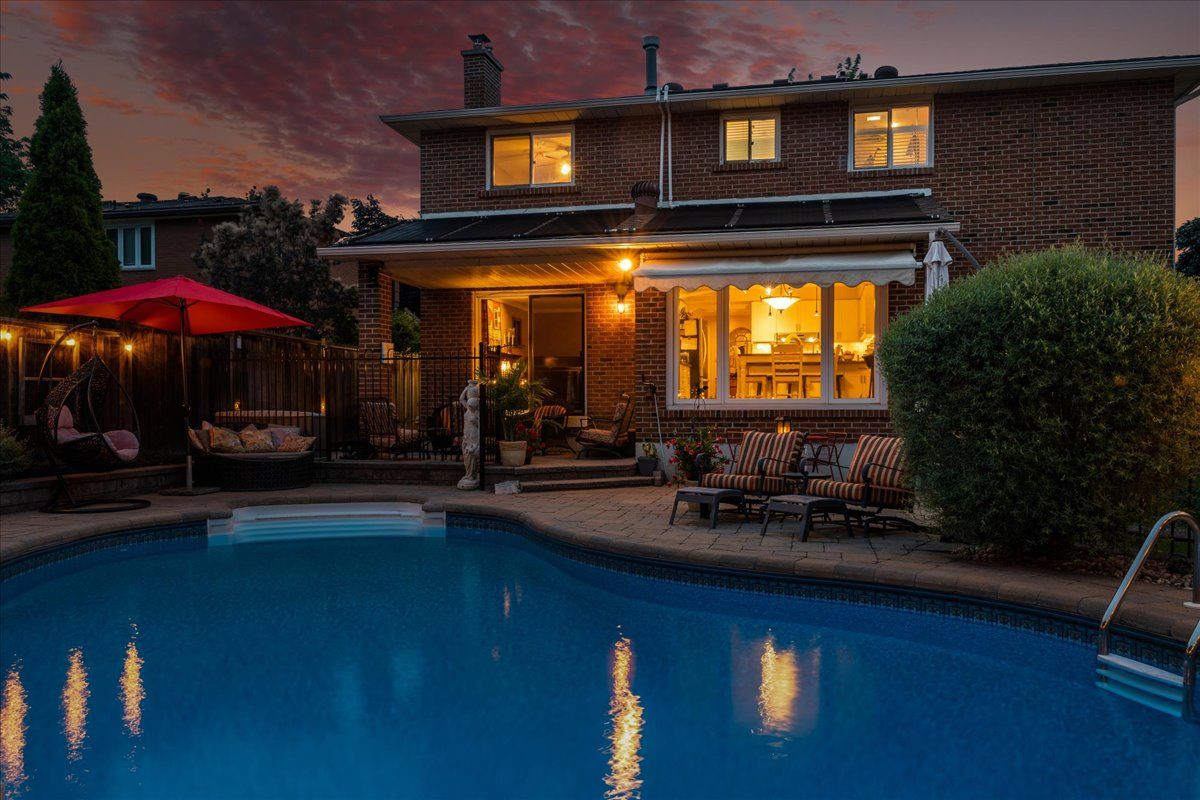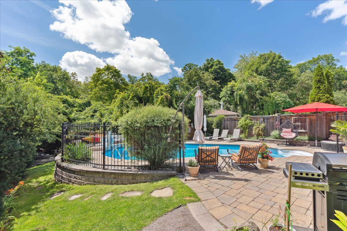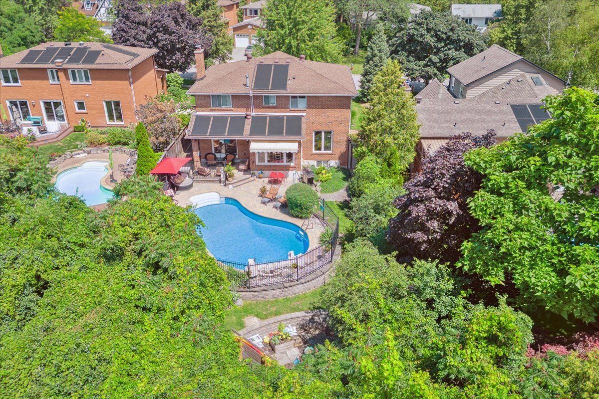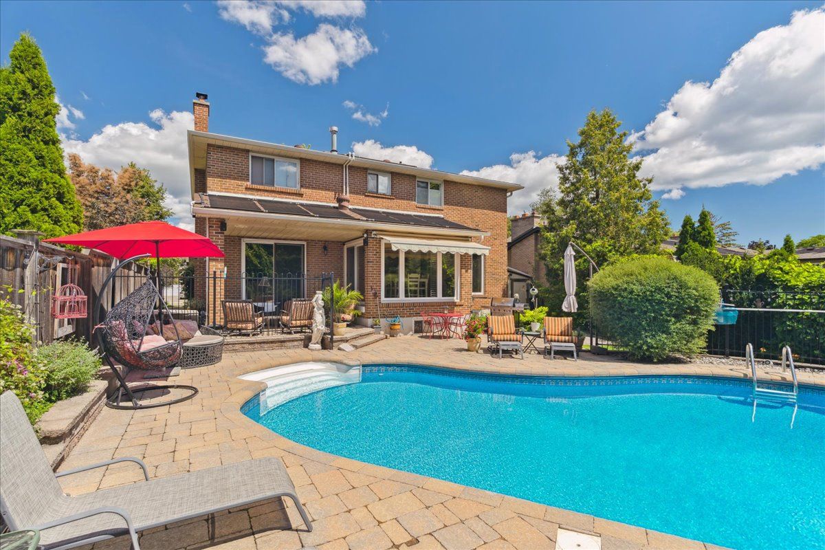 Located in the sought after community of Falgarwood, this renovated family home backs onto a lush ravine & sits on a large irregular lot, offering complete privacy. Backyard is a private, serene retreat w/ an ionized pool, covered porch & fire pit, great for relaxing & entertaining. As you enter, you are greeted w/ the perfect family layout, w/ large principle rooms & expansive windows creating a warm & inviting ambiance throughout. The updated kitchen features brand new appliances, granite countertops, breakfast bar & additional eat-in breakfast area surrounded by floor to ceiling windows. Upstairs you’ll find a stunning primary bedroom w/ a private ensuite, a glass enclosed shower & walk-in closet. 3 large additional bedrooms w/ oversized windows making each room feel bright & airy. Finished basement features a large entertainment space, fitness room & extra bedroom w/ a 3-piece bath. Located mins to shopping, major highways, GO station, parks, & excellent schools (Iroquois Ridge HS)