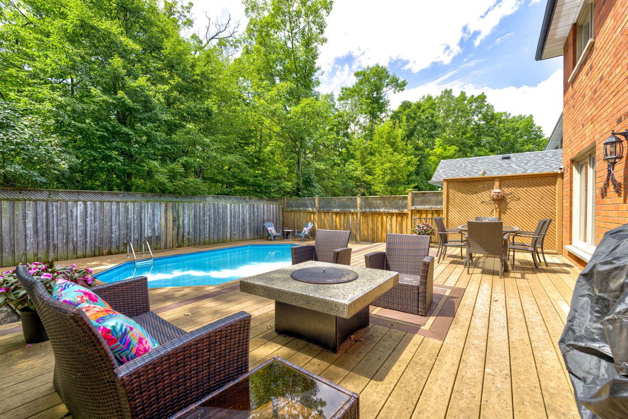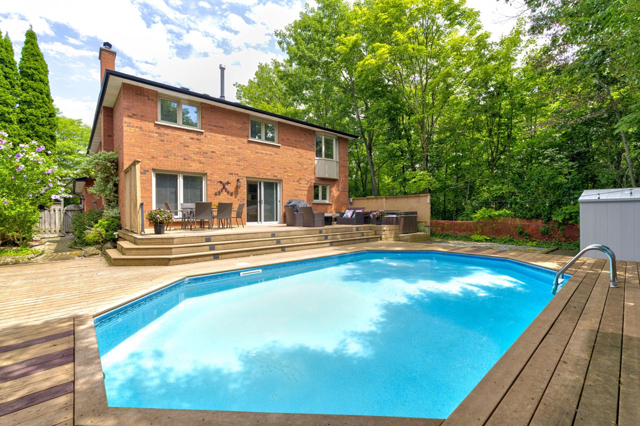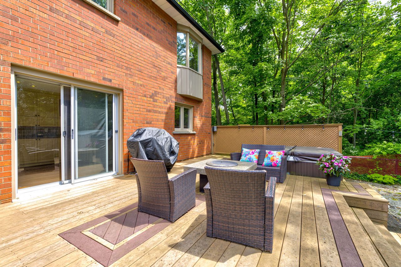 Private Ravine Oasis! No neighbours to the left or rear of this luxury 4 + 2 Bed, 4 +1 bath home. Outside you are surrounded by beautiful forested Oakridge Park. You will love staying home and swimming in the pool, relaxing in the hot tub or on the beautiful low maintenance composite deck. Inside you will enjoy the chef's dream kitchen with solid wood cabinets, some sparkinging glass door cabinets, high-end appliances, granite counters, built-in wall ovens and a massive island. Main floor has hardwood throughout, cozy living room with wood burning fireplace, large dining room, convenient main floor office, 2 piece powder room and mud/ laundry room with side door and garage access. Second floor also has hardwood throughout, huge primary bedroom with double closets, beautifully updated 5 piece bathroom with stand alone soaker tub. There are 3 other good sized bedrooms. One bedroom has updated 3 piece ensuite bathroom and there is a gorgeous updated main bathroom with double sinks and glass shower. The basement is completely finished with spacious family room with gas fireplace. There are 2 more very large bedrooms and a 3 piece bathroom.Step outside and you're right next to a forest walk, running, biking trail. Located in desirable River Oaks neighourhood with top ranked public/ private schools, easy highway access and close to shopping.