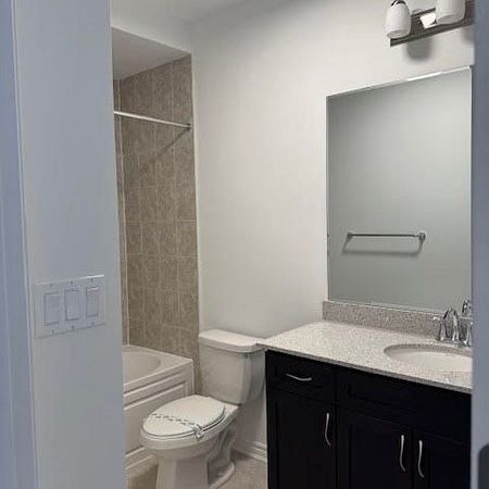 Brand new luxurious 2-level townhouse in Upper Joshua Creek, with 1, 682 square feet of living space. It offers 3+1 bedrooms and 2.5 bathrooms. The main floor includes a functional den, an open-concept living and dining area with a fireplace, and an upgraded kitchen featuring stainless steel appliances and quartz countertops. Hardwood flooring is present throughout the home, and the primary bedroom boasts a 4-piece ensuite with his and her closets. Additional features include large windows for natural lighting, an oak staircase, and walk-in closets in the primary bedroom and non-primary bedrooms. Geothermal system all over the house triple glazed window and 9'high ceilings on Ground and Second floors The property provides easy access to major highways (403, 407, and QEW) and is within walking distance to a shopping plaza and public transit.