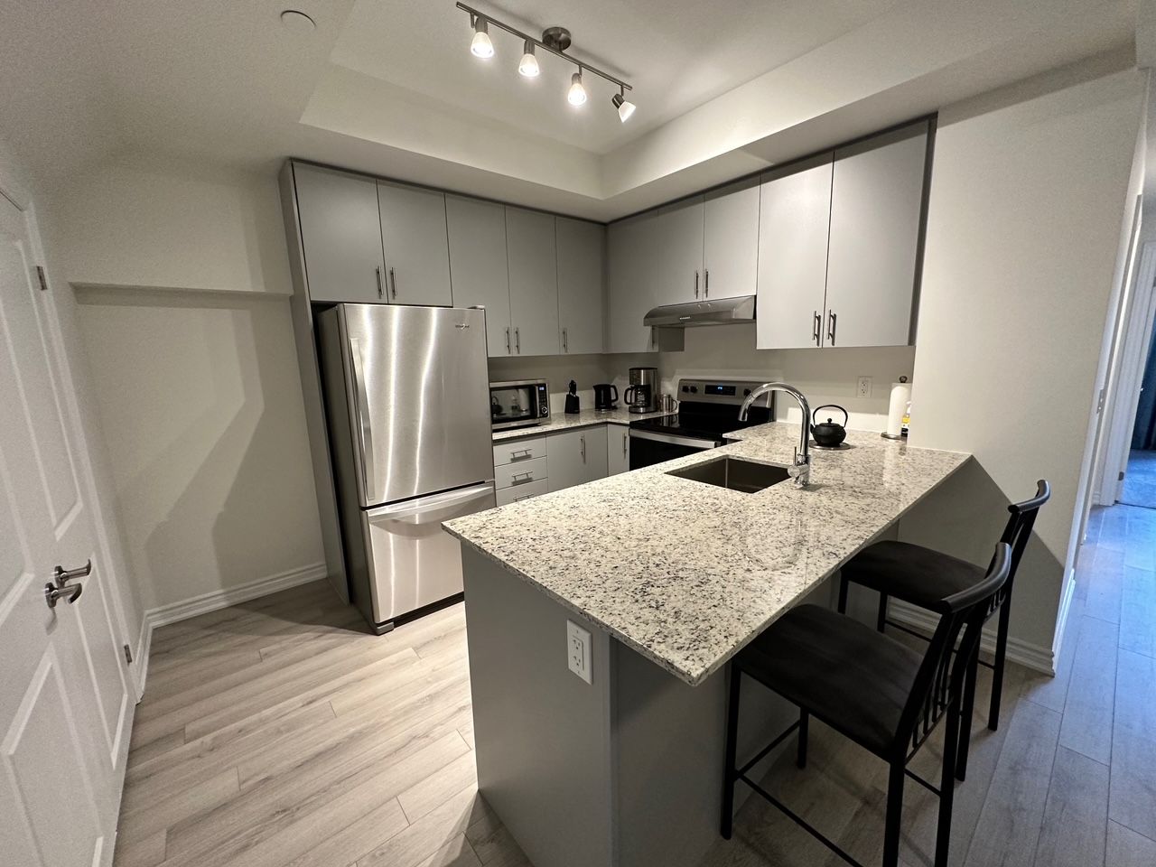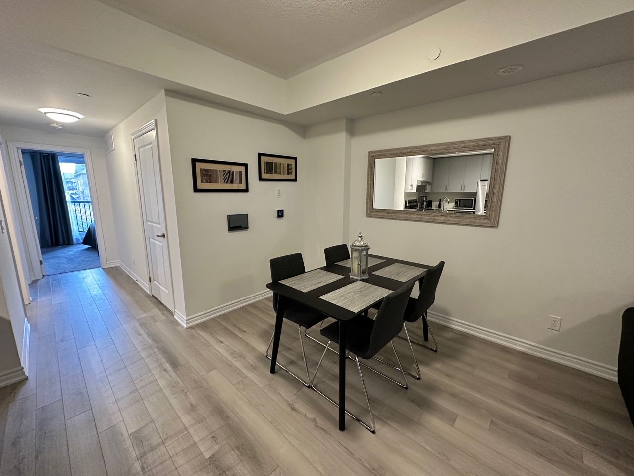 Stunning 2BR Townhouse Condo with Large Balcony in Oakvillage! This unique end unit overlooksgreenspace and features a balcony off the Bedroom. Enjoy the many upgrades, including engineeredlaminate flooring and granite countertops. The main floor has a ceiling height of 9 feet with floorto ceiling windows that bring warmth, light, and beauty into the unit. Spacious closets on the mainfloor and in the primary bedroom, as well as a generous linen closet with shelving. The parking isbelow the unit for your convenience. This property also comes with ENERGY STAR appliances, smarthome technology, and fast internet. Don't miss this opportunity to own in Oakvillage, a communitywith access to amenities and many retail and commercial spaces within walking distance. A must-see!S/S Fridge, S/S Stove, S/S Dishwasher, Stackable Washer & Dryer